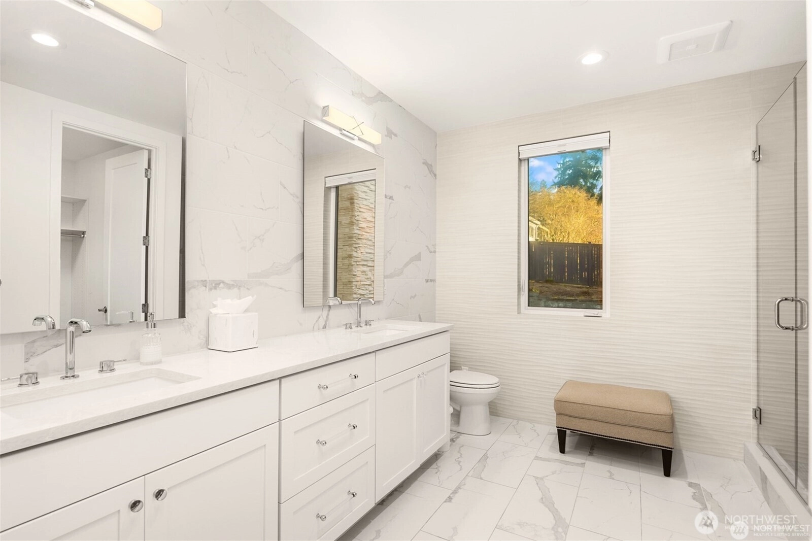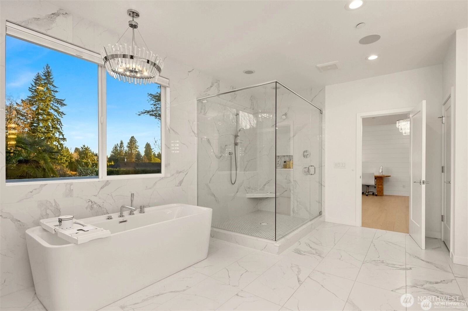 Nestled on a private driveway in a peaceful, tucked-away setting, this home offers exceptional privacy and surprising tranquility—shielded from nearby roadways for a truly serene living experience. This elegant 2019 Clyde Hill Northwest Contemporary by MN Custom Homes is where light, design, and livability converge. Sun-filled great room flows effortlessly to a chef’s kitchen, creating an inviting backdrop for both everyday moments and entertaining. Main-floor guest suite offers flexibility, while an expansive upstairs bonus room adapts to your lifestyle. The serene primary suite features a spa-inspired bath, complemented by three additional bedrooms. Over $300K in upgrades enhance every detail, including custom glass stair railings, an upgraded Ortal fireplace, Hunter Douglas automated shades, and full-home window treatments. Smart home with Green features, hardwood floors upstairs, and professionally landscaped grounds with turf and retaining wall. Located in coveted West Bellevue schools with easy access to SR-520 and downtown Bellevue.