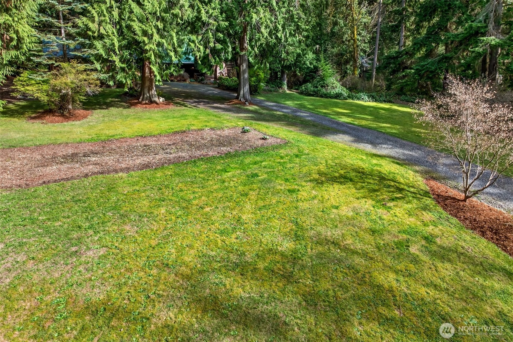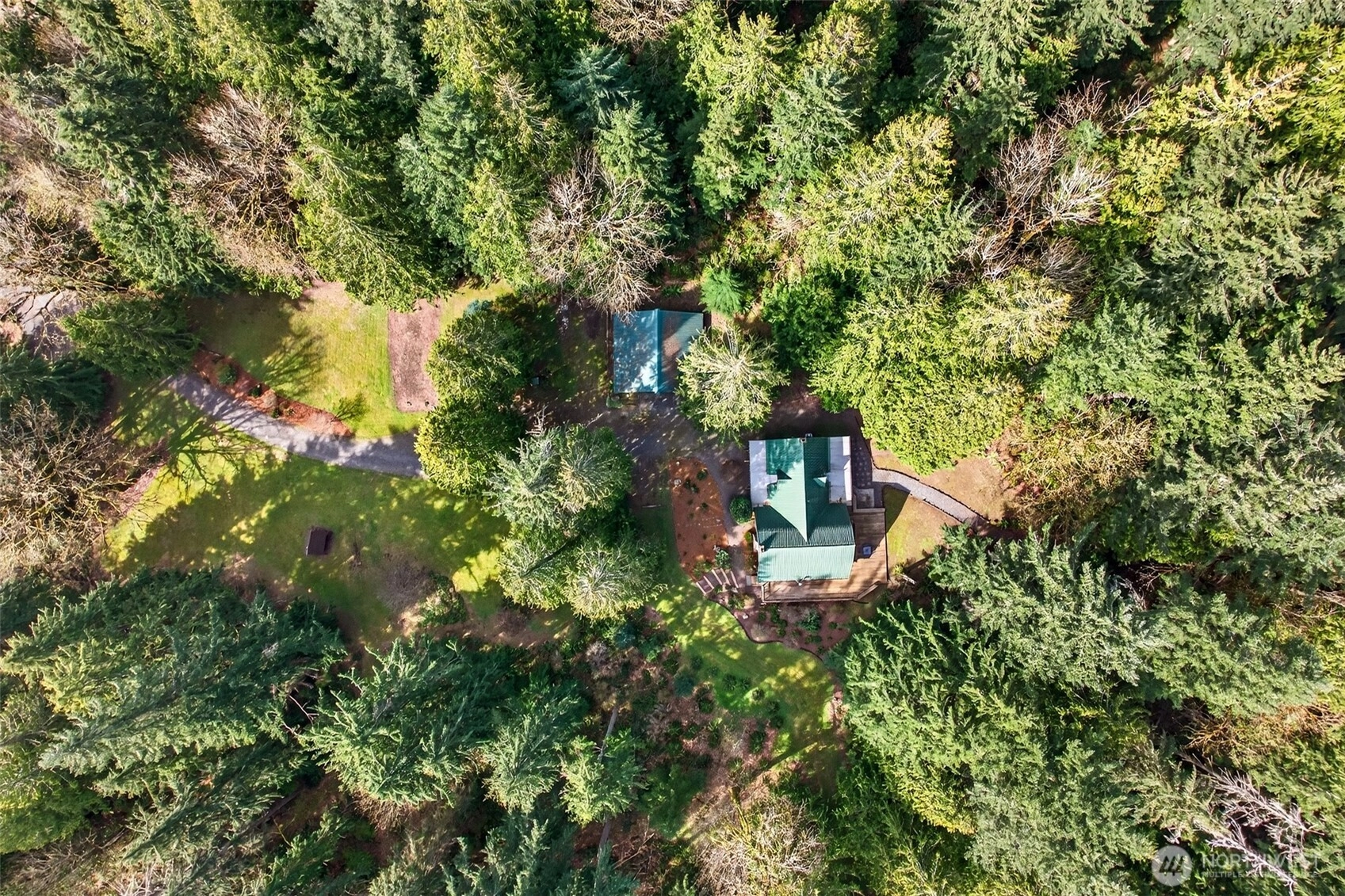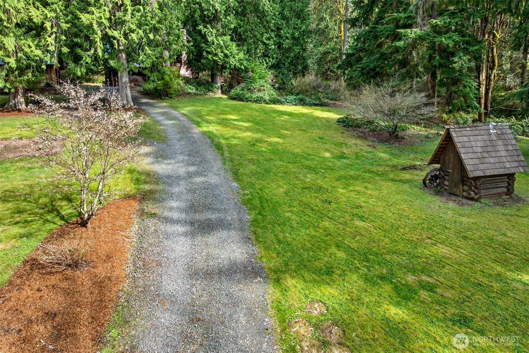 Handcrafted from the ground up and nestled within a cathedral of Pacific Northwest old-growth evergreens, this iconic two-story log home on 3.71 private acres delivers a living experience that simply cannot be replicated. Soaring A-frame gable windows, vaulted ceilings, hand-scribed log walls, and a dramatic brick fireplace create a great room that is as architecturally stunning as it is warm and inviting. The open kitchen features quartz counters, stainless appliances, knotty pine cabinetry with leaded glass accents, and a peninsula with bar seating. A main-level family room with second brick fireplace and an upper-level study loft add exceptional flexibility. The primary suite offers forest-facing gable windows and a private ensuite bath with glass-enclosed shower. Two secondary bedrooms each provide private deck access and forested views. Dedicated laundry room, newer heat pump, and portable generator deliver everyday reliability. Outside, multi-level decks open to sweeping private grounds with open lawn, mature plantings, a detached two-car garage with shop area, and a secondary outbuilding. No HOA. Northshore School District. Minutes from Woodinville wine country, dining, and shopping. A storybook property where craftsmanship, privacy, and natural beauty converge.
