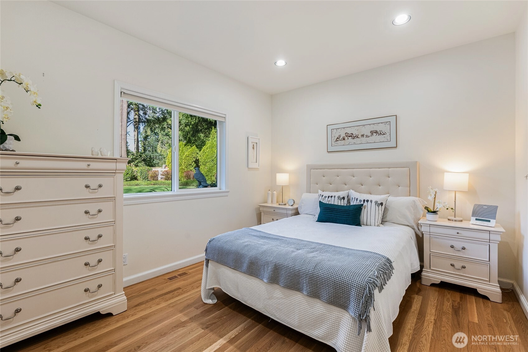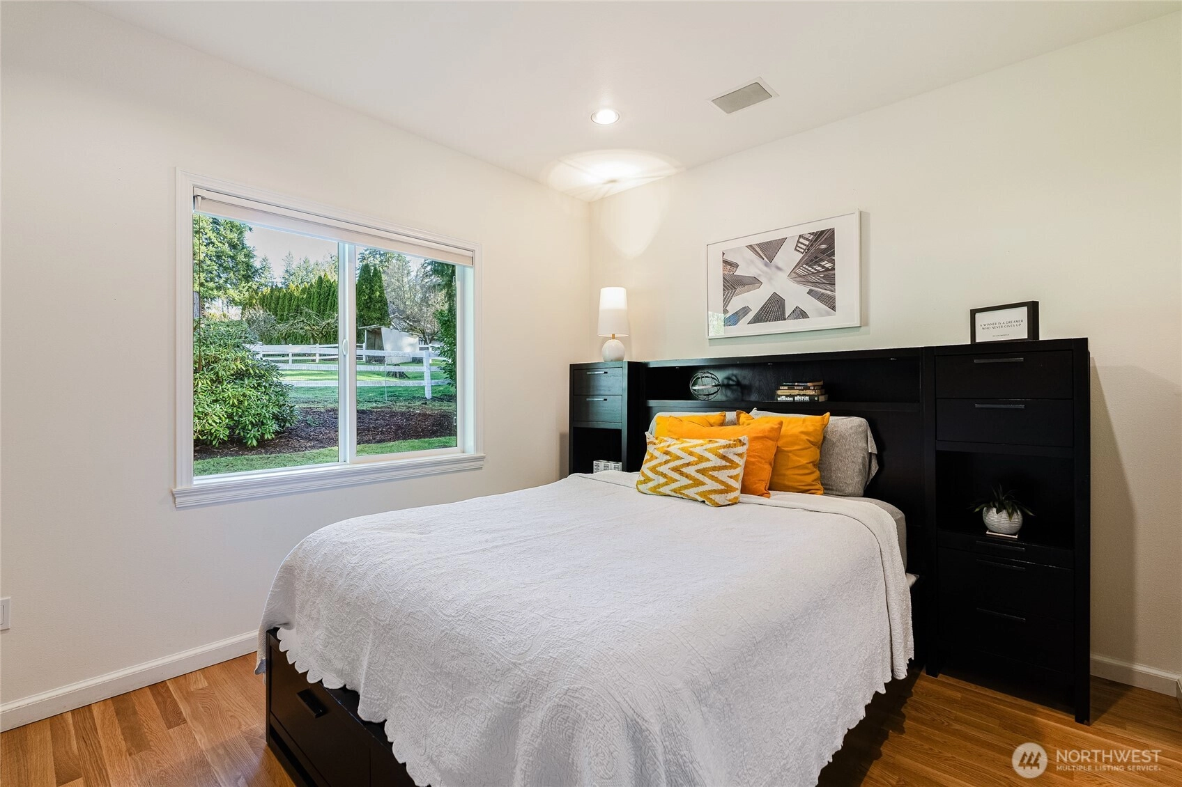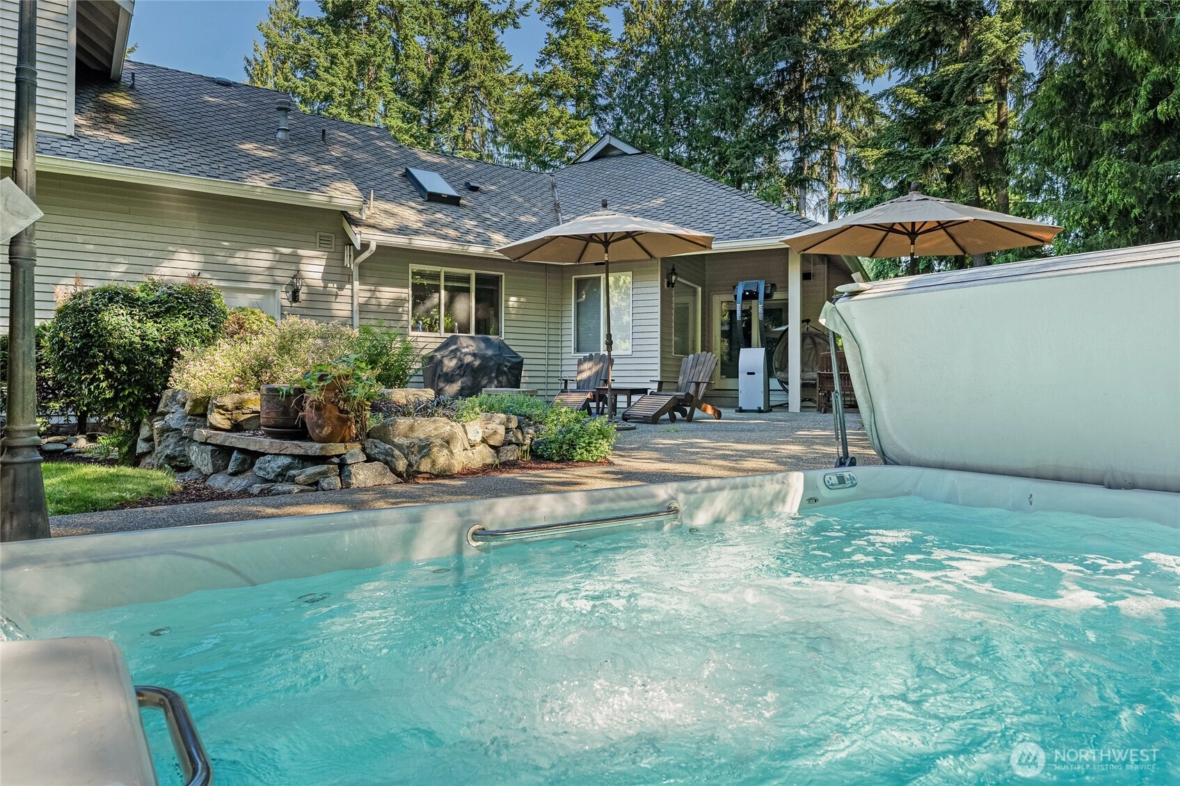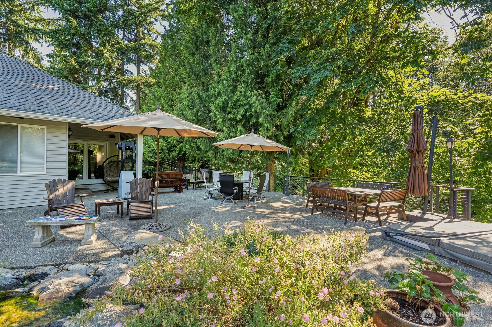 A Hollywood Hill dream come true! Located on 1.97 gorgeous fully fenced acres down a quiet dead end street. Main house is 3,350 sqft plus a newer 700 sqft studio over detached garage (4,050 SQFT FINISHED). Approximately 1,600 sqft of garage space with 5 bays for the car/craft enthusiasts (Epoxy flooring and Tesla Charger). Very tech savvy home with smart features galore. The sprawling one story living area is finished with hardwoods throughout, three main bathrooms extensively remodeled. Kitchen with top of line appliances (Miele & Wolf), newer granite and Maple Cabinets and open to family room with vaulted ceilings. Architectural comp roof, Custom metal arched entry door, New AC/Heat Pump in main and mini split with AC in Detached studio. The exterior has it all: very large patio, water feature, swim spa, garden, firepit & gated entry. Minutes to everything Woodinville - Wine country, Restaurants, Burke Gilman Trail and Northshore Schools.
