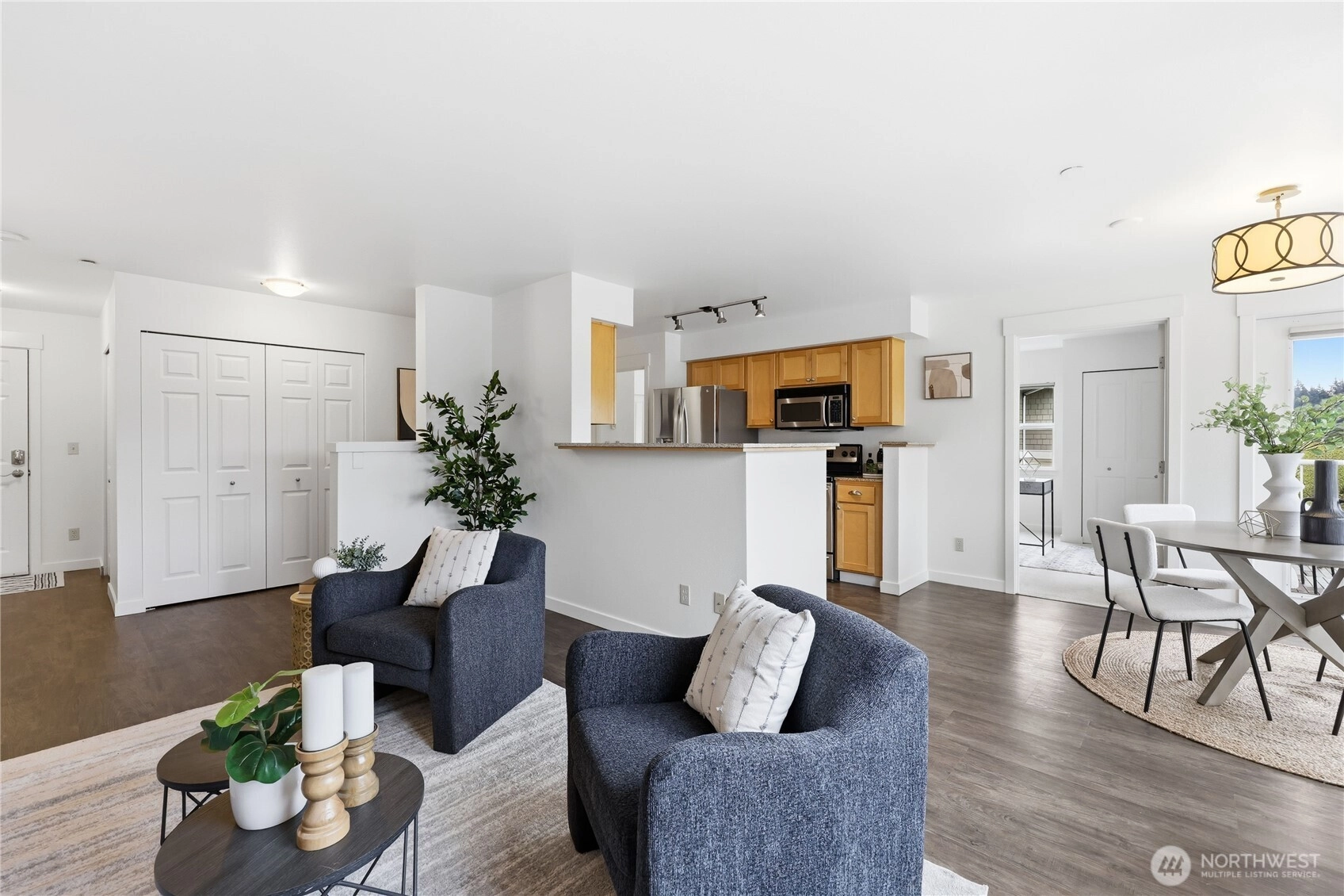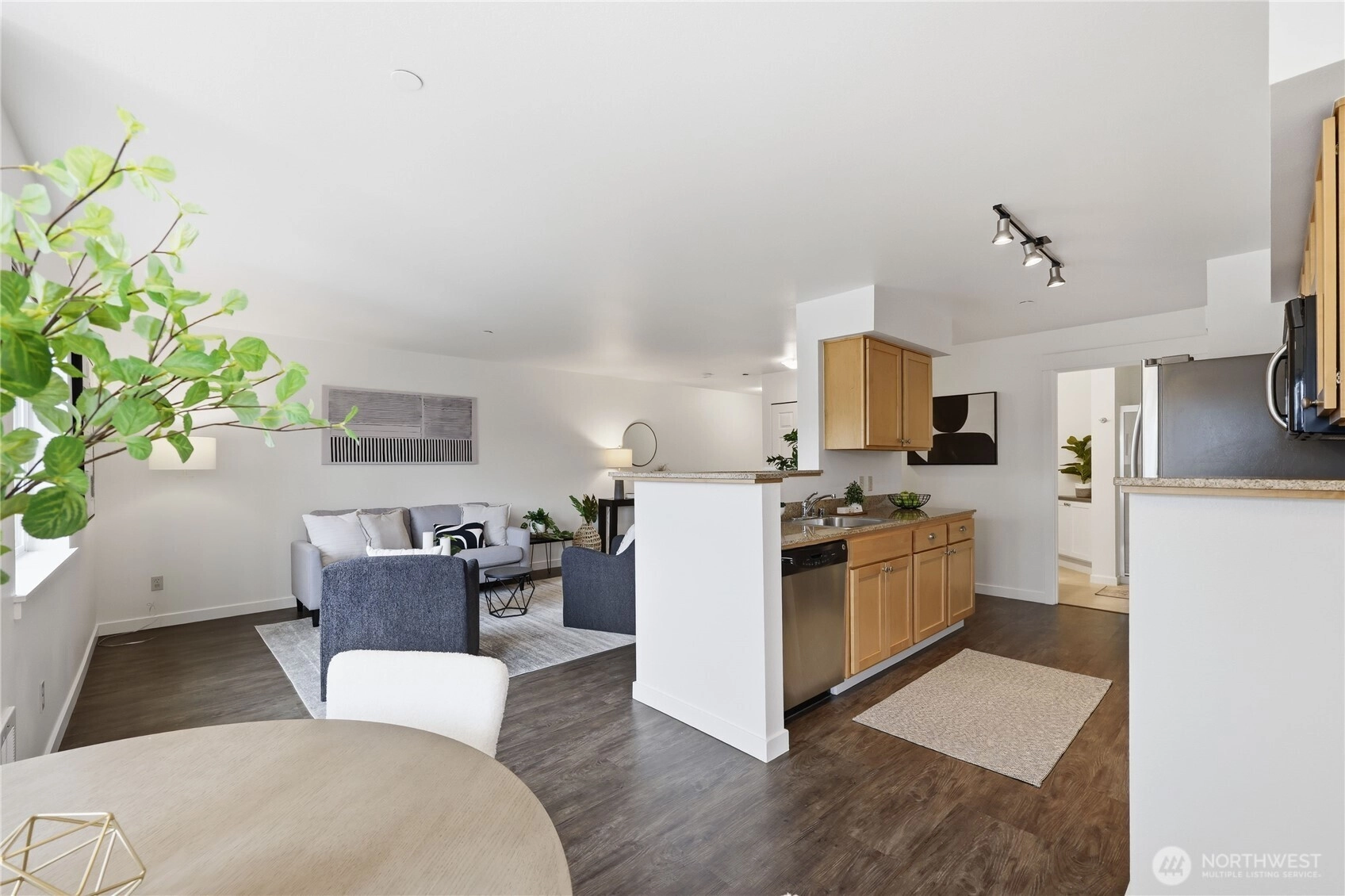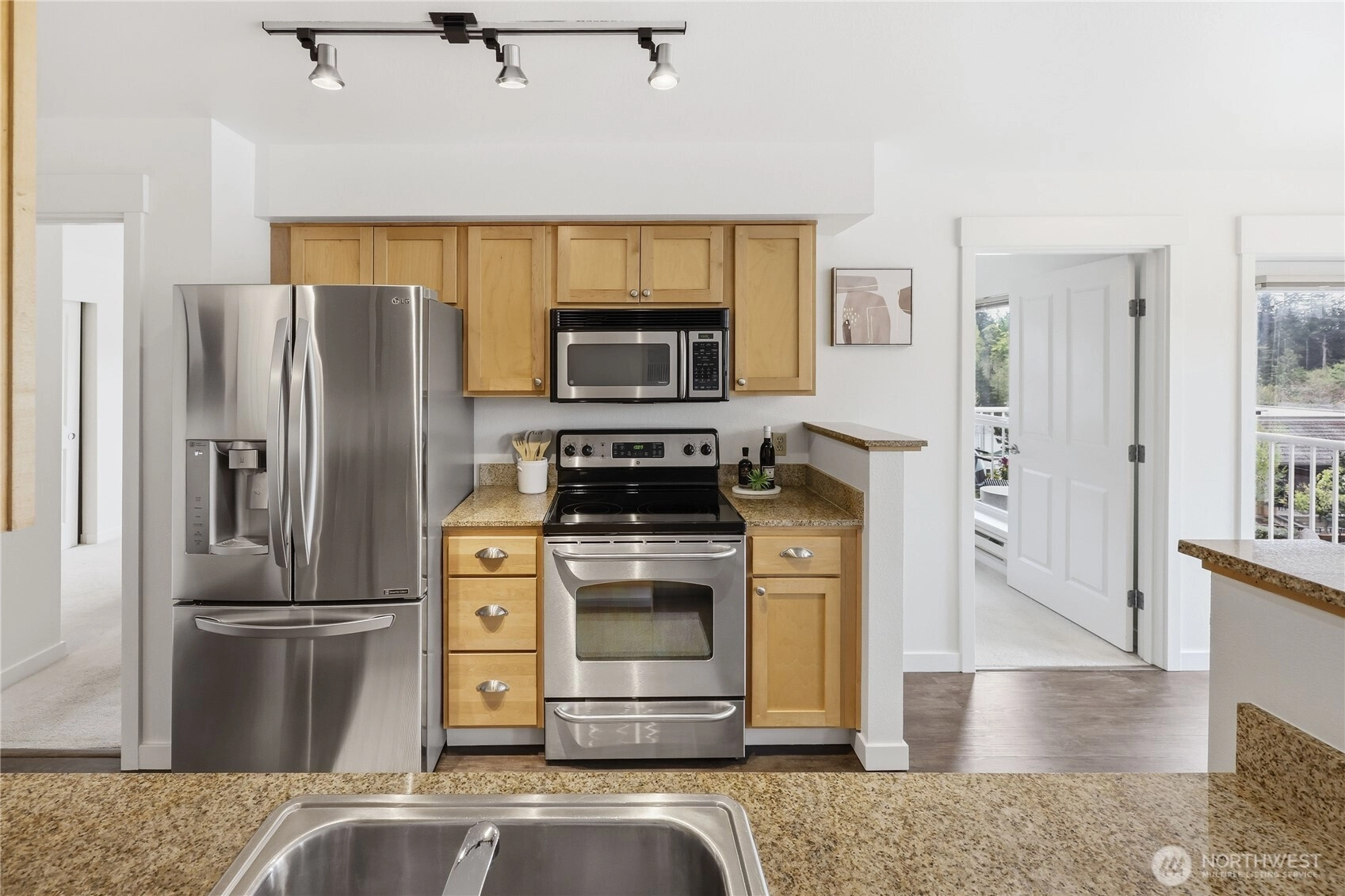 This exceptional south-facing two-bedroom corner-unit condo offers comfort, natural light, and unbeatable convenience. The thoughtfully designed home features a spacious private balcony—perfect for entertaining, container gardening, or simply enjoying sunny afternoons. Inside, you’ll find quartz countertops, stainless steel appliances, and freshly painted interiors that create a bright, modern feel throughout. Rare for in-town living, the home includes two secured garage parking spaces, with storage, adding both ease and value. Ideally located just a stone’s throw from downtown Winslow shopping, dining, ferry access, and the highway, this home offers the perfect blend of accessibility and lifestyle. Tour today and make this inviting home your own!