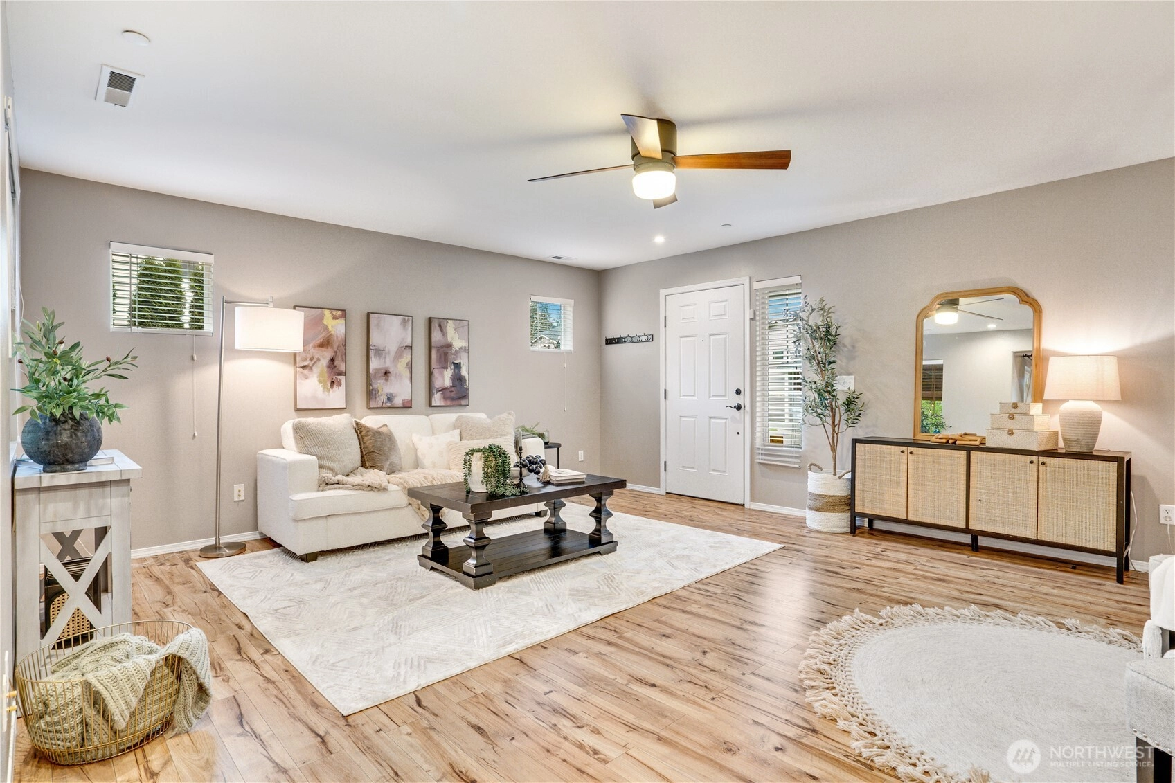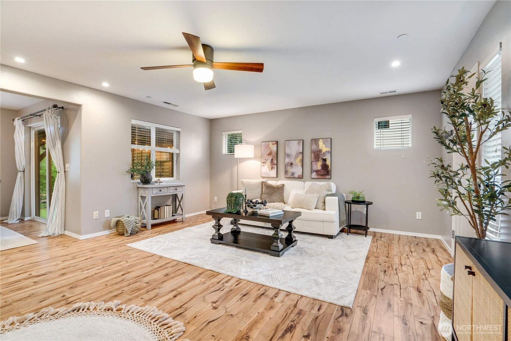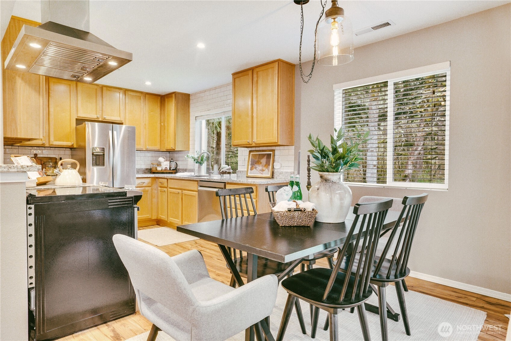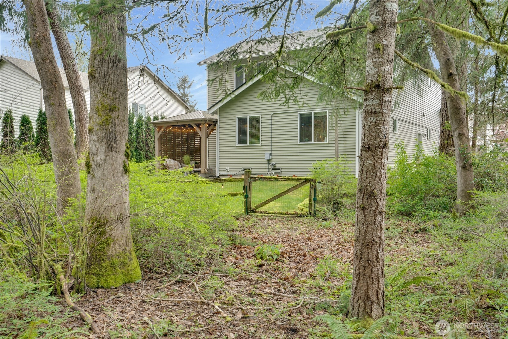 There’s a natural, retreat feel to this NW Landing home—one that comes from its rare placement against 46 acres of protected green space, with additional open land along the eastern border. Tucked away, it's a setting where wooded trails, occasional wildlife visitors, and natural surroundings shape the rhythm of daily life. From the kitchen, living, and dining spaces, windows draw your focus outward—framing layers of green that shift with the seasons. Inside, the home has been thoughtfully renovated with a focus on both function and longevity. The kitchen anchors the main level with solid stone countertops, a chef’s hood, and generous cabinetry, and flows comfortably into spaces designed for both everyday living and easy gathering. Upstairs, the primary suite offers a sense of scale that feels luxurious and is hard to find, paired with peaceful views of Garry oak trees and the natural backdrop beyond. Less than 4 miles from JBLM, the location keeps your commute simple while preserving a sense of privacy A 569-square-foot attached garage provides room for two vehicles plus storage, gear and weekend projects. With a brand-new roof and a full pre-inspection completed, the groundwork is already in place. It’s a home that brings together privacy, proximity, and thoughtful updates that’s hard to find.