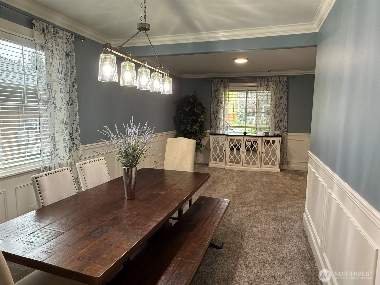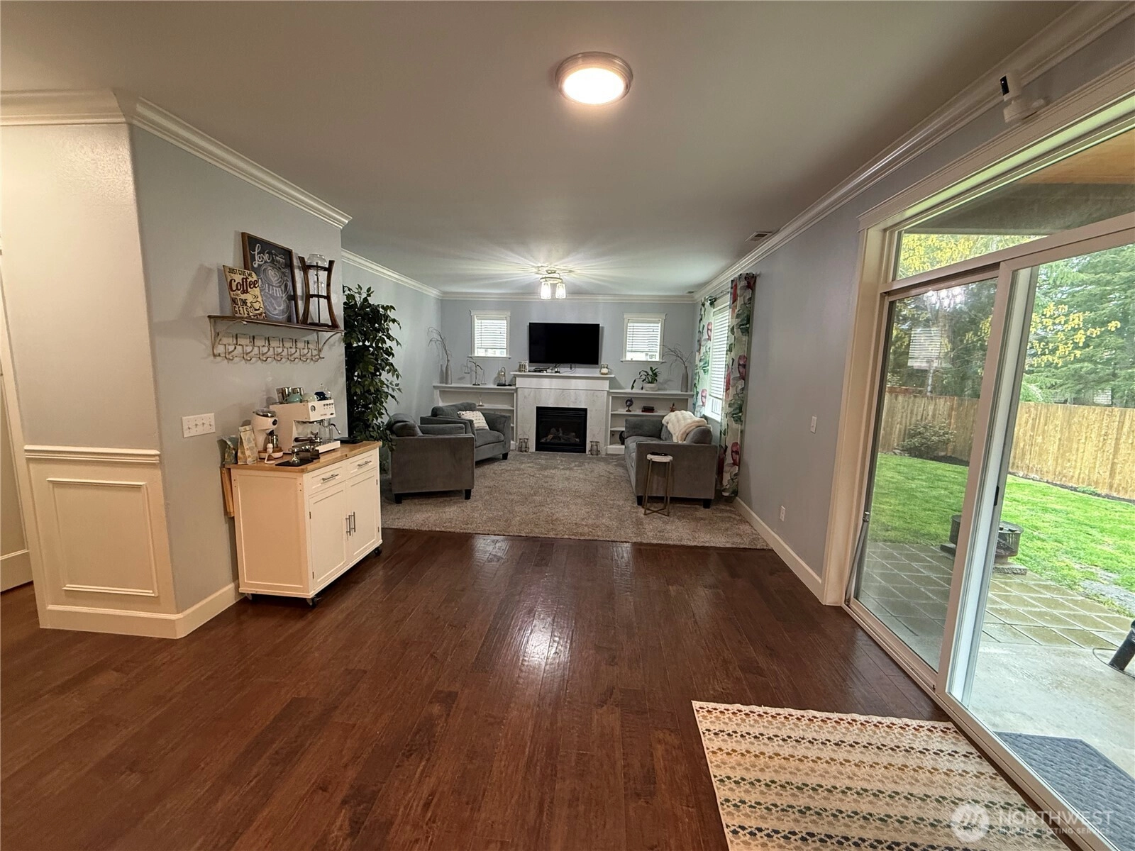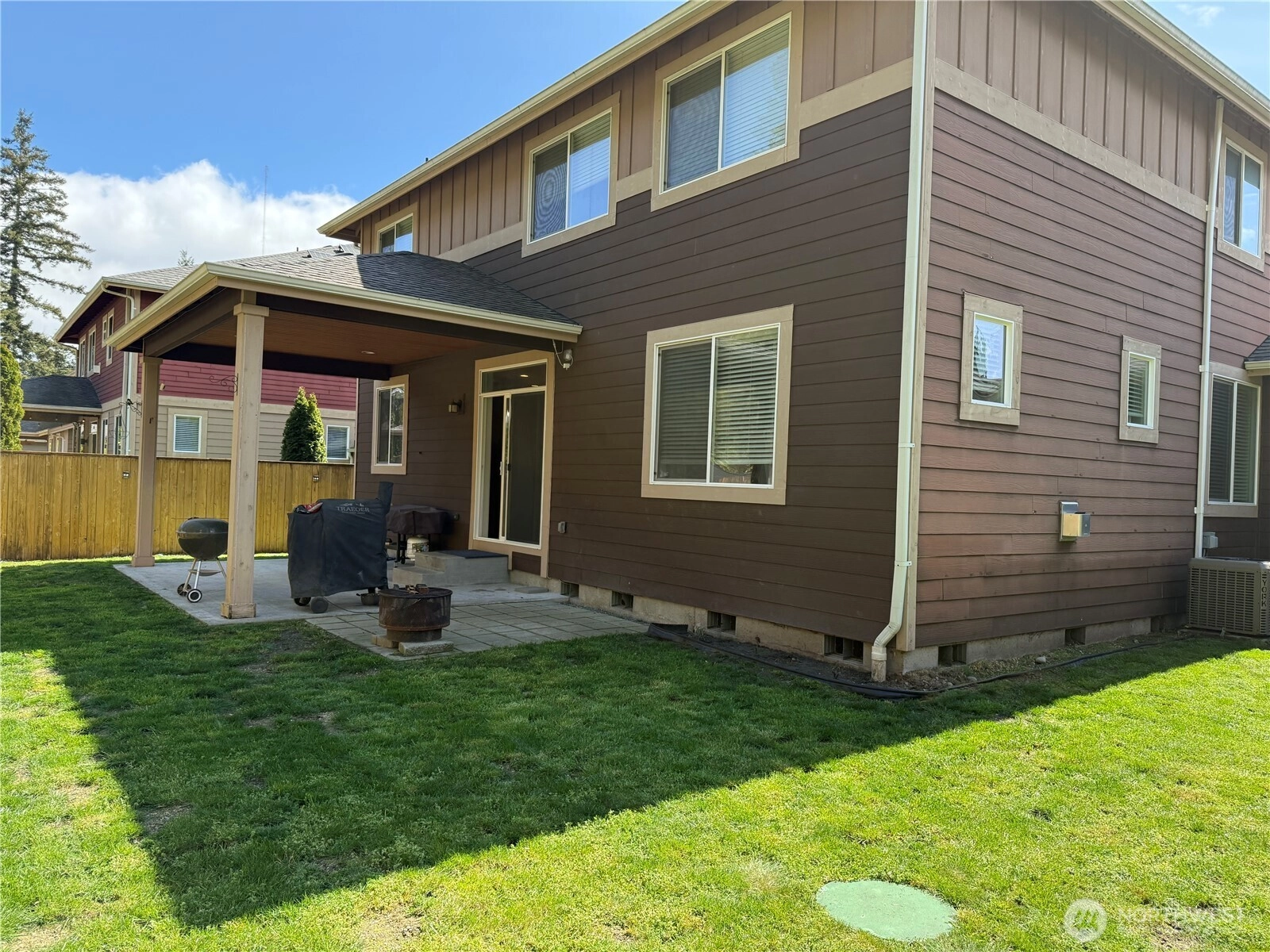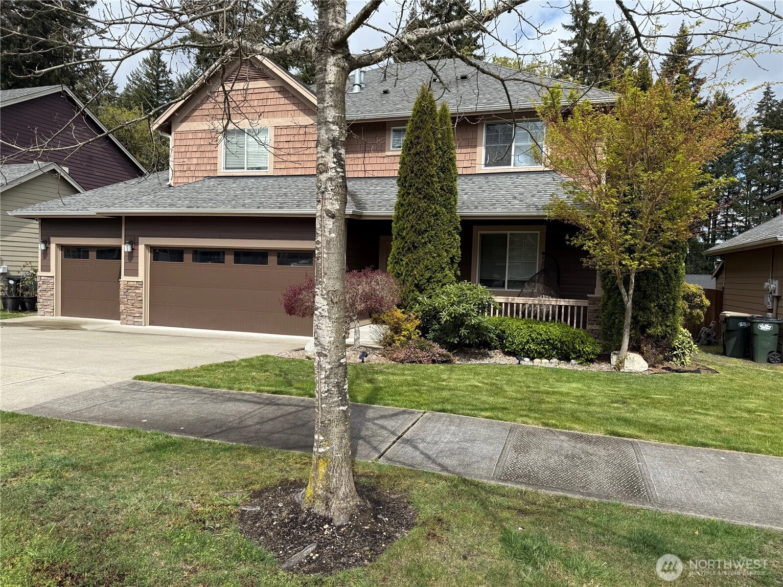 Welcome to this beautiful residence in the sought after Trailside Estates community! Thoughtfully curated with timeless finishes and generous living spaces, this home offers a refined lifestyle in a prime location.From the moment you arrive, you’re greeted by an inviting covered front entrance. Inside, extensive crown molding and detailed wainscoting flow throughout. The main level is designed for both formal entertaining and effortless daily living, featuring a formal living room, an elegant dining area, and a dedicated office/den that is perfect for remote work or quiet study, along with a convenient half bath.At the heart of the home, the chef-inspired kitchen serves as a true centerpiece, showcasing granite countertops, stainless steel appliances, and walk-in pantry, seamlessly connecting to the main living areas for an open yet refined feel.Upstairs, a huge bonus living area offers incredible flexibility for a media room, playroom, or additional lounge space. The luxurious primary suite is complete with its own cozy fireplace, big walk-in closet, and well-appointed en-suite bath designed for comfort and relaxation. Step outside to the covered back patio ideal for year round entertaining. Oversized 3 car garage provides ample space for vehicles & storage. Additional highlights include an energy-efficient heat pump for year-round climate control and easy access to I-5 for a easy commute. Enjoy close proximity to schools, shopping, entertainment, and scenic local trails.