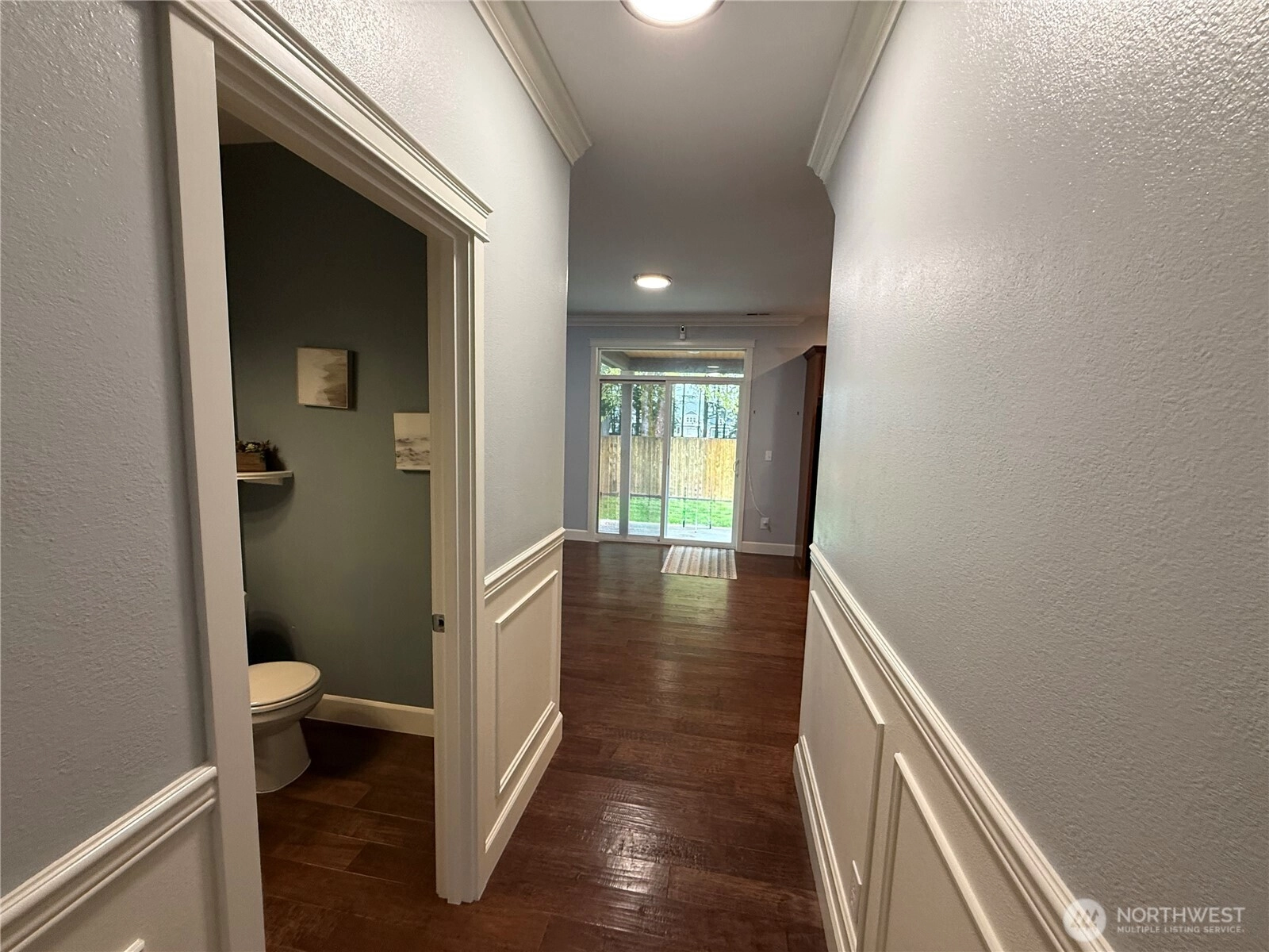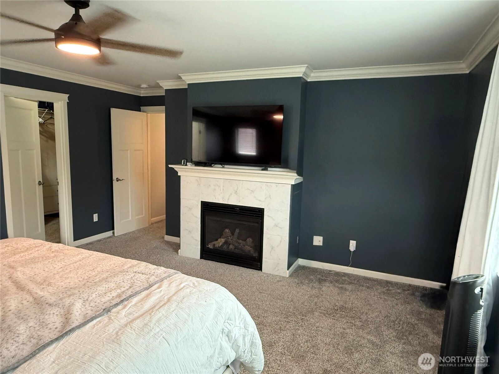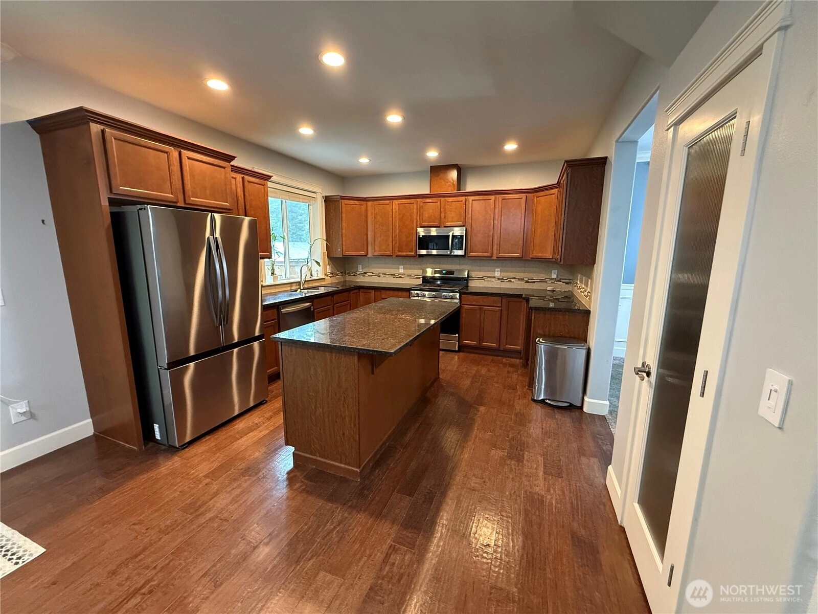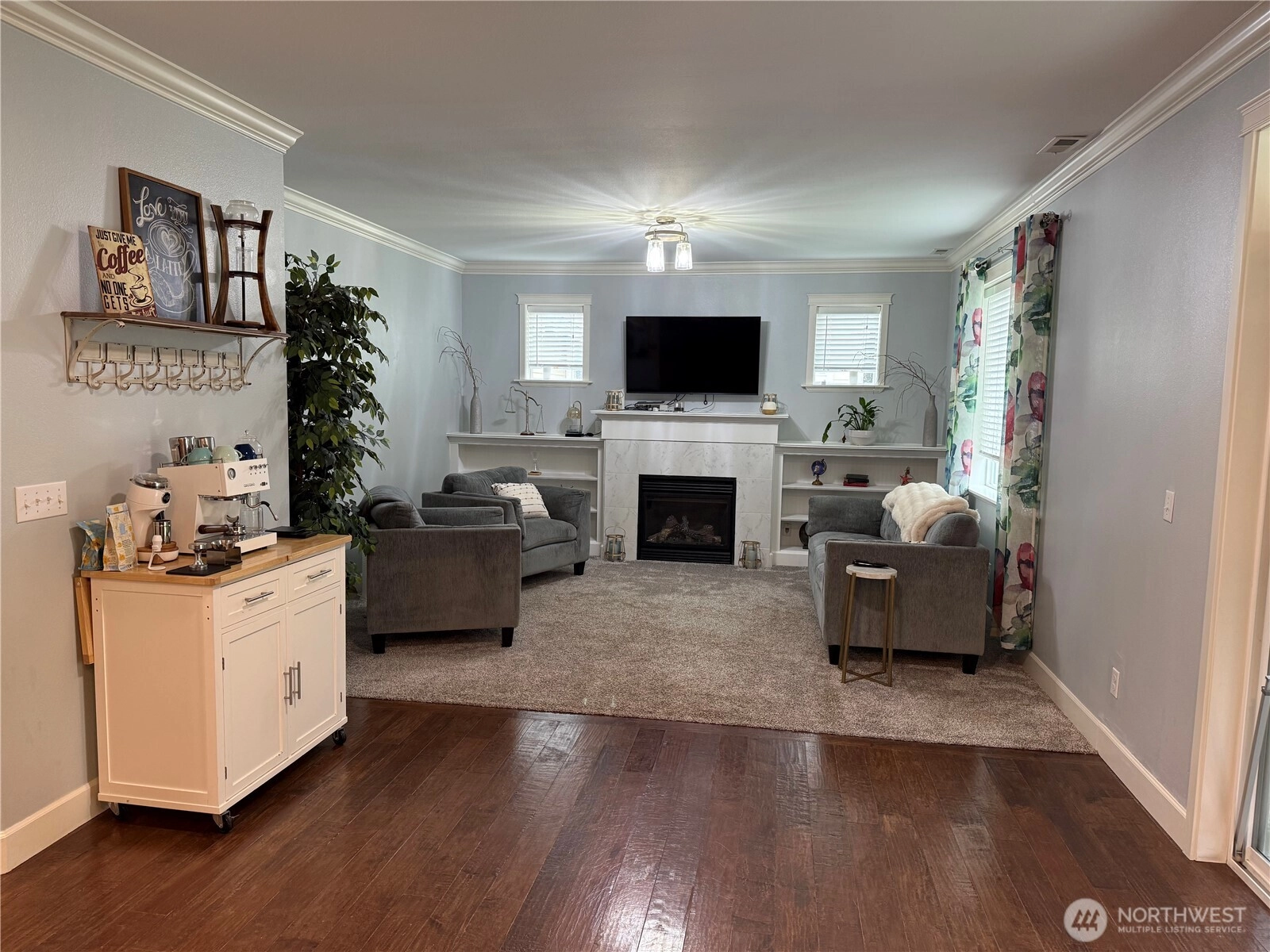 Welcome to this beautiful residence in the sought after Trailside Estates community! Thoughtfully curated with timeless finishes and generous living spaces, this home offers a refined lifestyle in a prime location.From the moment you arrive, you’re greeted by an inviting covered front entrance. Inside, extensive crown molding and detailed wainscoting flow throughout. The main level is designed for both formal entertaining and effortless daily living, featuring a formal living room, an elegant dining area, and a dedicated office/den that is perfect for remote work or quiet study, along with a convenient half bath.At the heart of the home, the chef-inspired kitchen serves as a true centerpiece, showcasing granite countertops, stainless steel appliances, and walk-in pantry, seamlessly connecting to the main living areas for an open yet refined feel.Upstairs, a huge bonus living area offers incredible flexibility for a media room, playroom, or additional lounge space. The luxurious primary suite is complete with its own cozy fireplace, big walk-in closet, and well-appointed en-suite bath designed for comfort and relaxation. Step outside to the covered back patio ideal for year round entertaining. Oversized 3 car garage provides ample space for vehicles & storage. Additional highlights include an energy-efficient heat pump for year-round climate control and easy access to I-5 for a easy commute. Enjoy close proximity to schools, shopping, entertainment, and scenic local trails.
