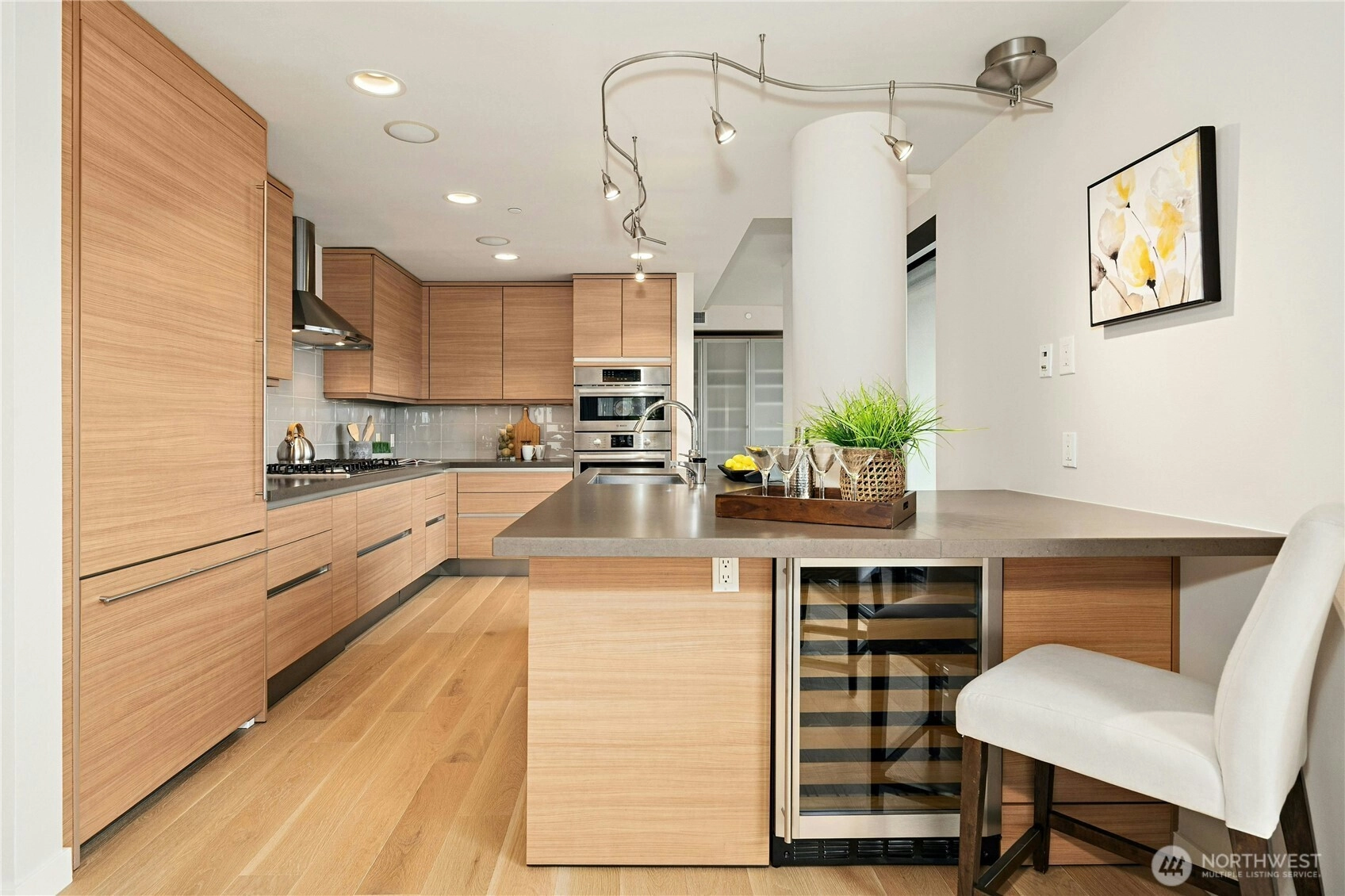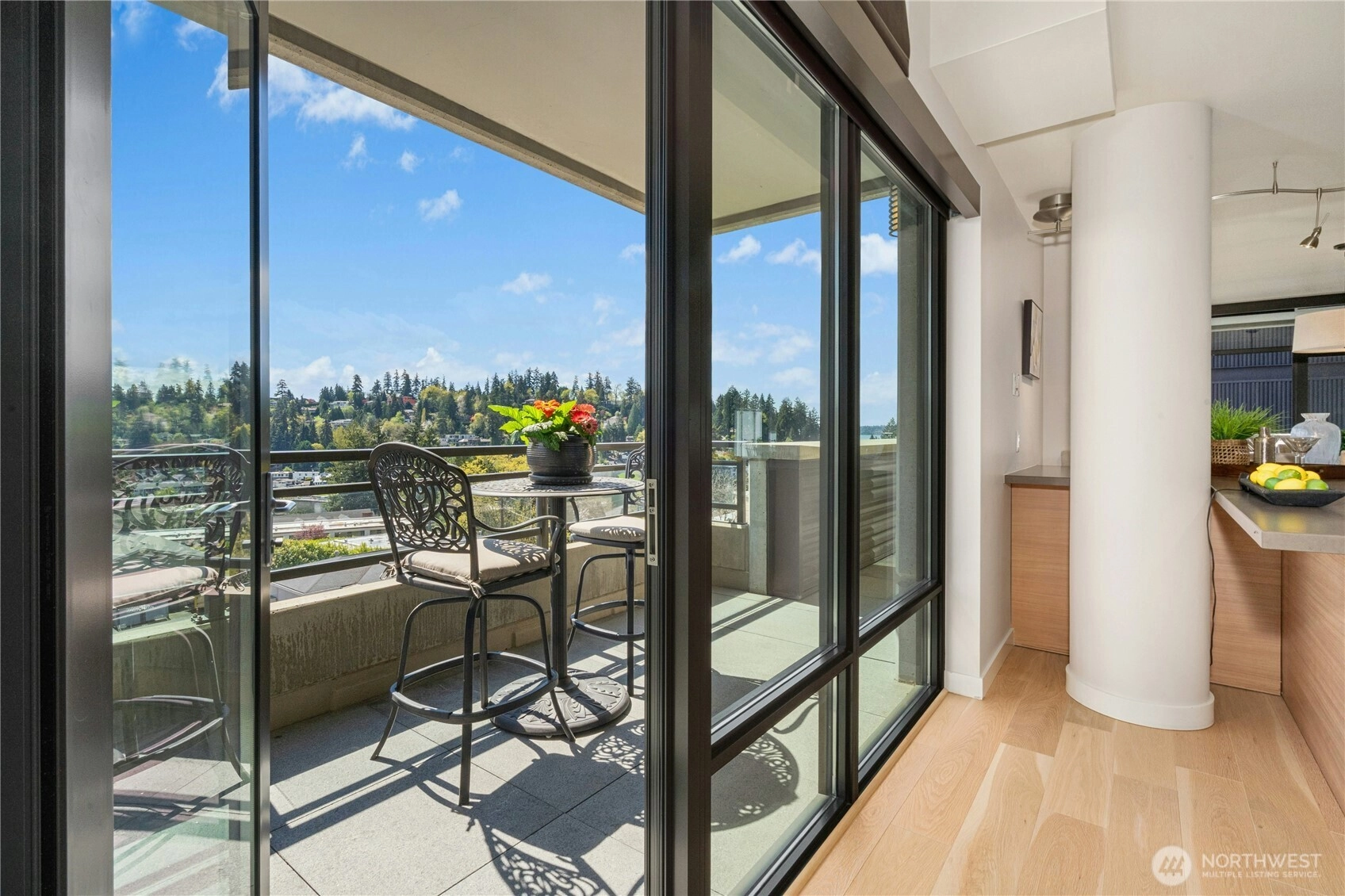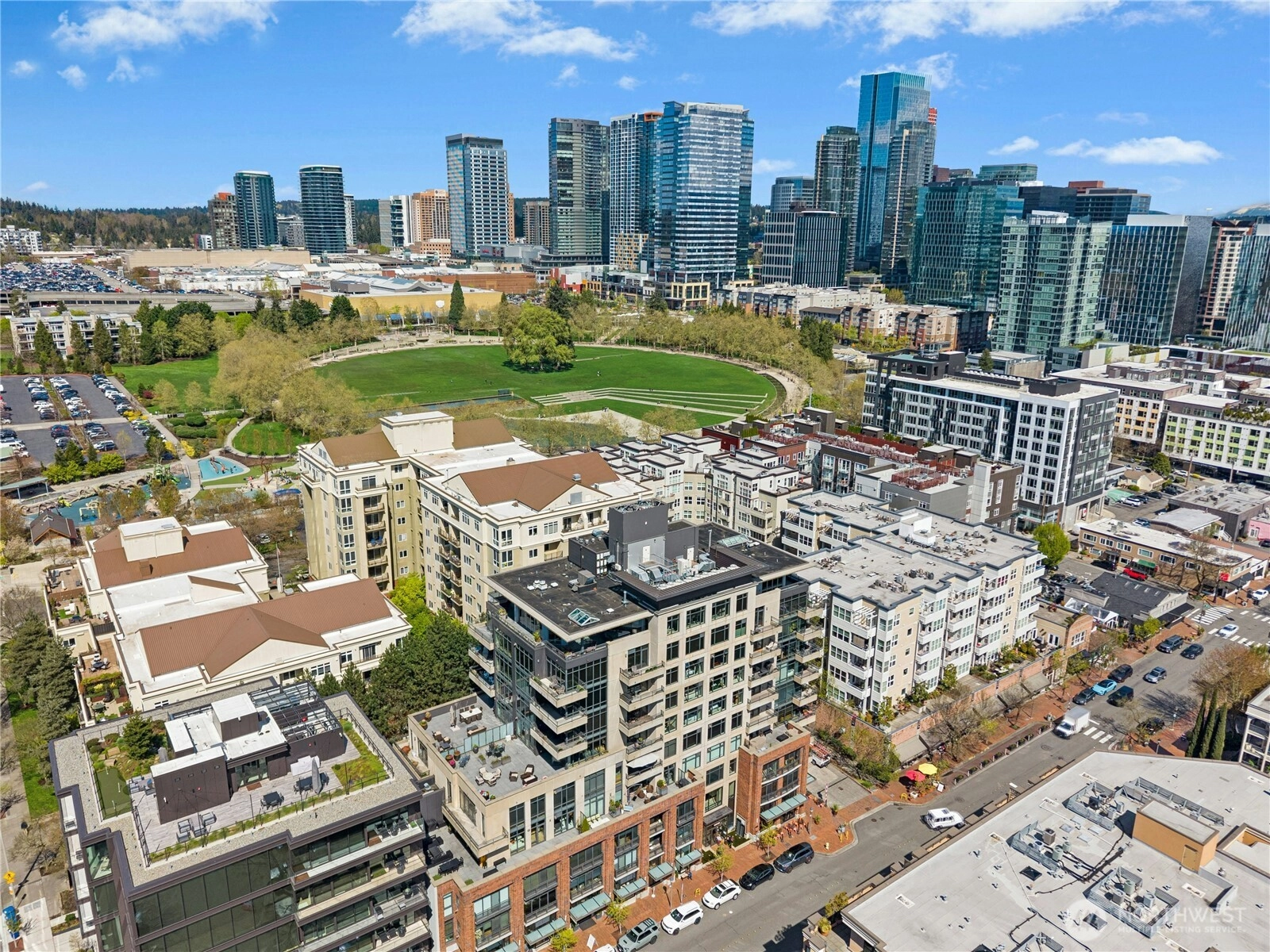 Experience city living at its finest, wonderfully located in old-town Bellevue, with the heart and soul of the city at your front doorstep. Breakfast at Gilbert's, Lunch at Carmine's, Cocktails at 425, the possibilities are endless: take a walk in the park, stroll down to Meydenbauer Bay, shop the square, take in a movie, you're going to love this place. The residence is on the south-west corner of this highly sought-after concrete and steel construction boutique condominium tower. Great room living at its absolute best, the open, bright and sophisticated floor plan with floor-to-ceiling windows throughout, offering a kaleidoscope of views to the bay, mountains, Lake Washington and city lights, is perfectly proportioned for entertaining and quiet reflection. The center stage kitchen stands ready and beautifully appointed with sleek German-designed SieMatic cabinetry, Bosch and Miele appliances and storage galore. Sleeping quarters are spacious, the baths fresh and sparkling. Understated luxury lives in every finish and every detail throughout the home and continues as you walk out onto the envy of the complex, an over-1,000 sq. ft. private patio that soaks in the views, sets the stage for garden parties, alfresco dining, s'mores by the firepit and glowing sunsets. Secured building, three side-by-side parking spots, a generous storage room and concierge service complete the package. It's truly a lifestyle that lives up to its location. Welcome Home.