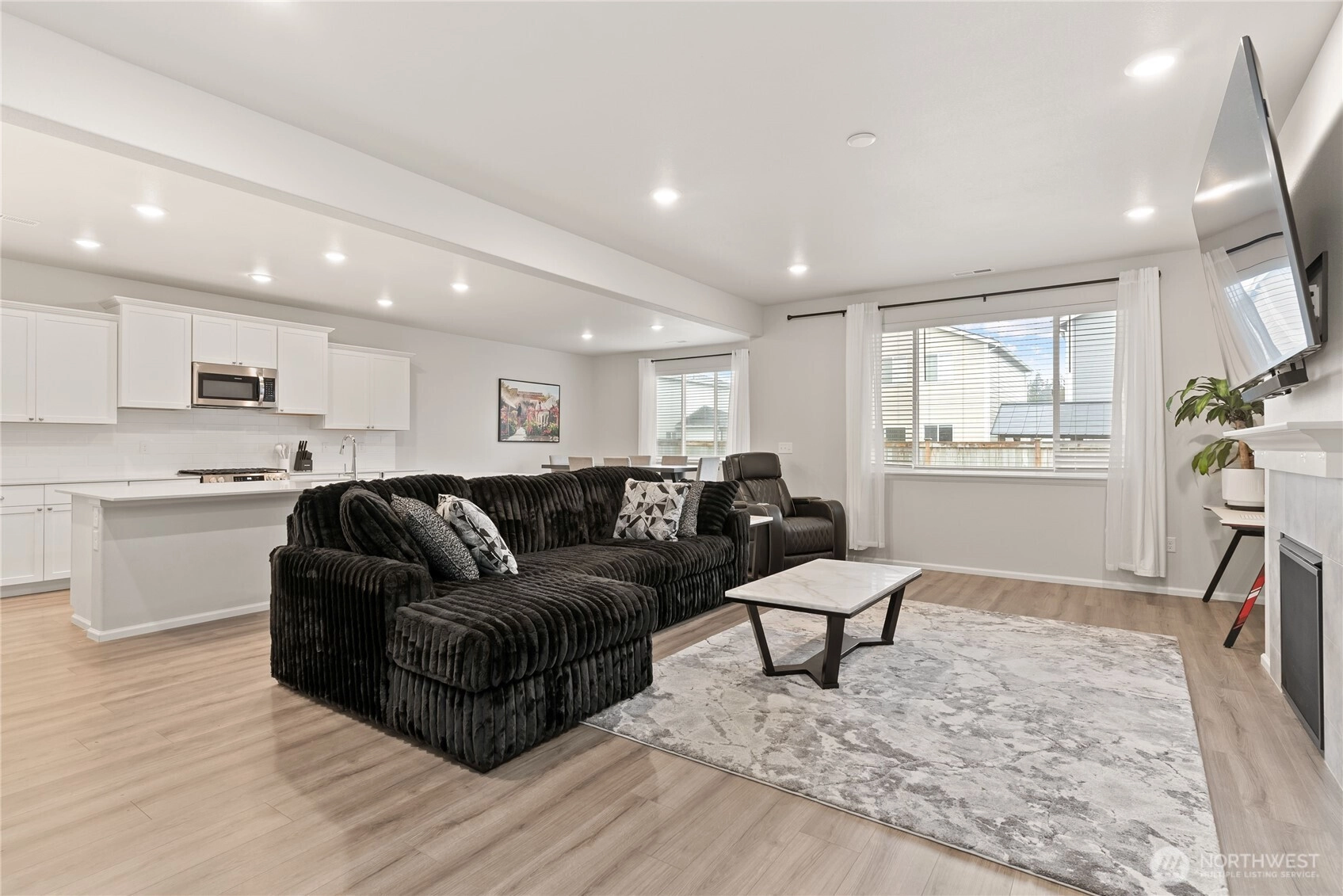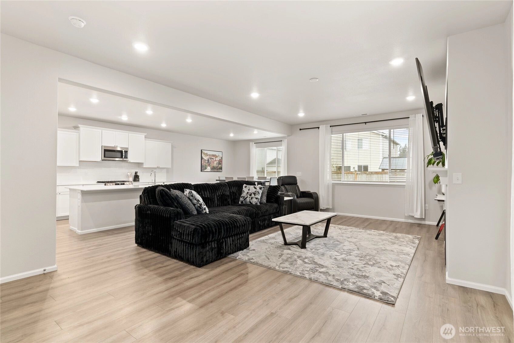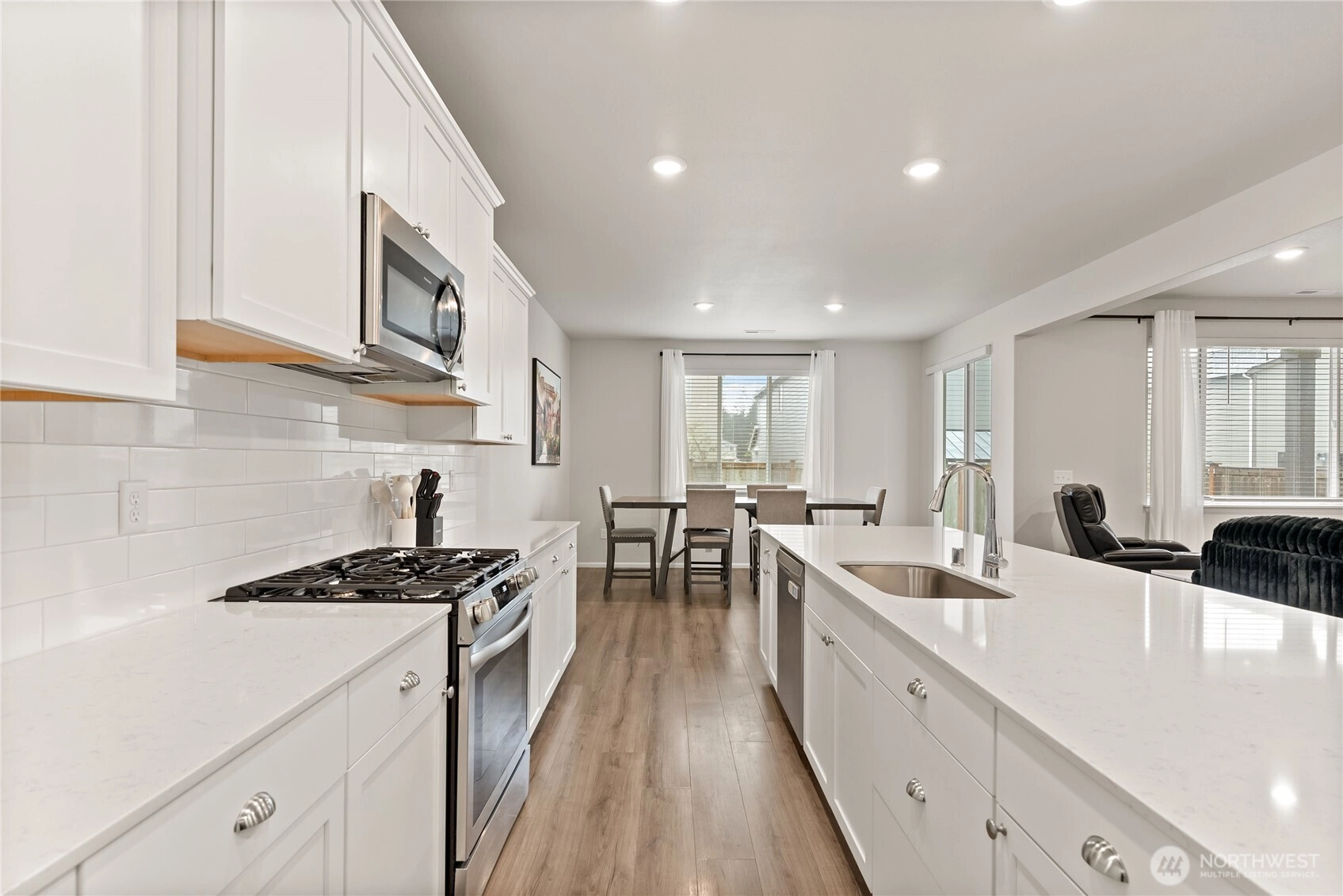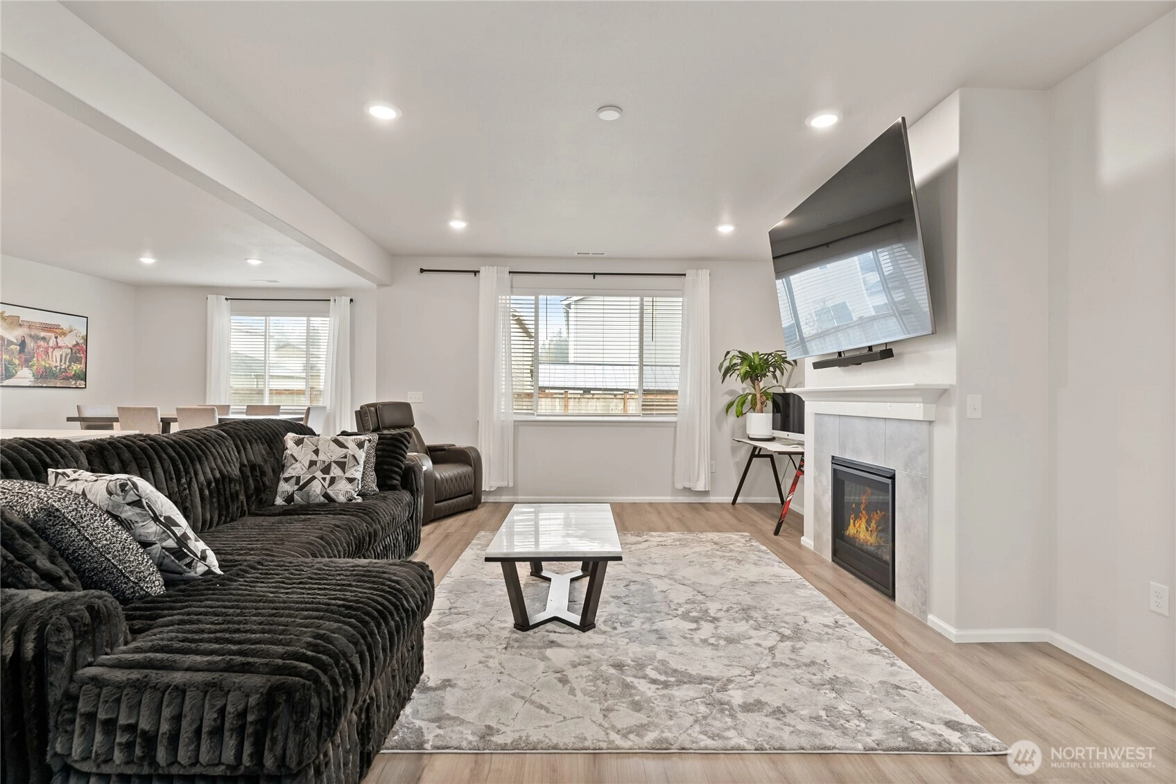 Welcome to this like-new home in the desirable Daybreak community in Graham, WA! Step inside to find LVP flooring throughout, fresh quartz countertops in the gourmet kitchen, and stainless steel appliances. The open-concept kitchen and living room is perfect for everyday living and entertaining, highlighted by a cozy gas fireplace. A large 3-car garage provides ample storage, while the spacious primary suite offers a private full bathroom and generous walk-in closet. The back porch is ideal for gatherings, overlooking a clean, private backyard. With plenty of space for gathering, this home is conveniently located near shopping, schools, and activities. Move-in ready and beautifully maintained—don't miss out!