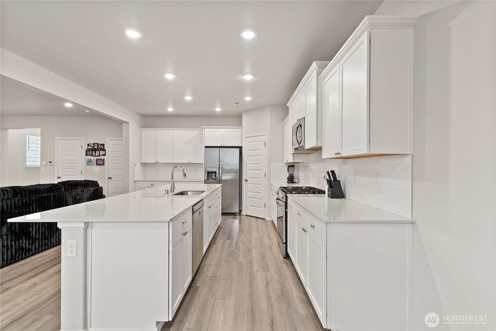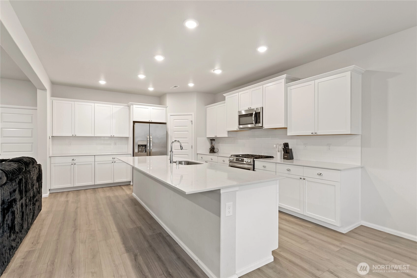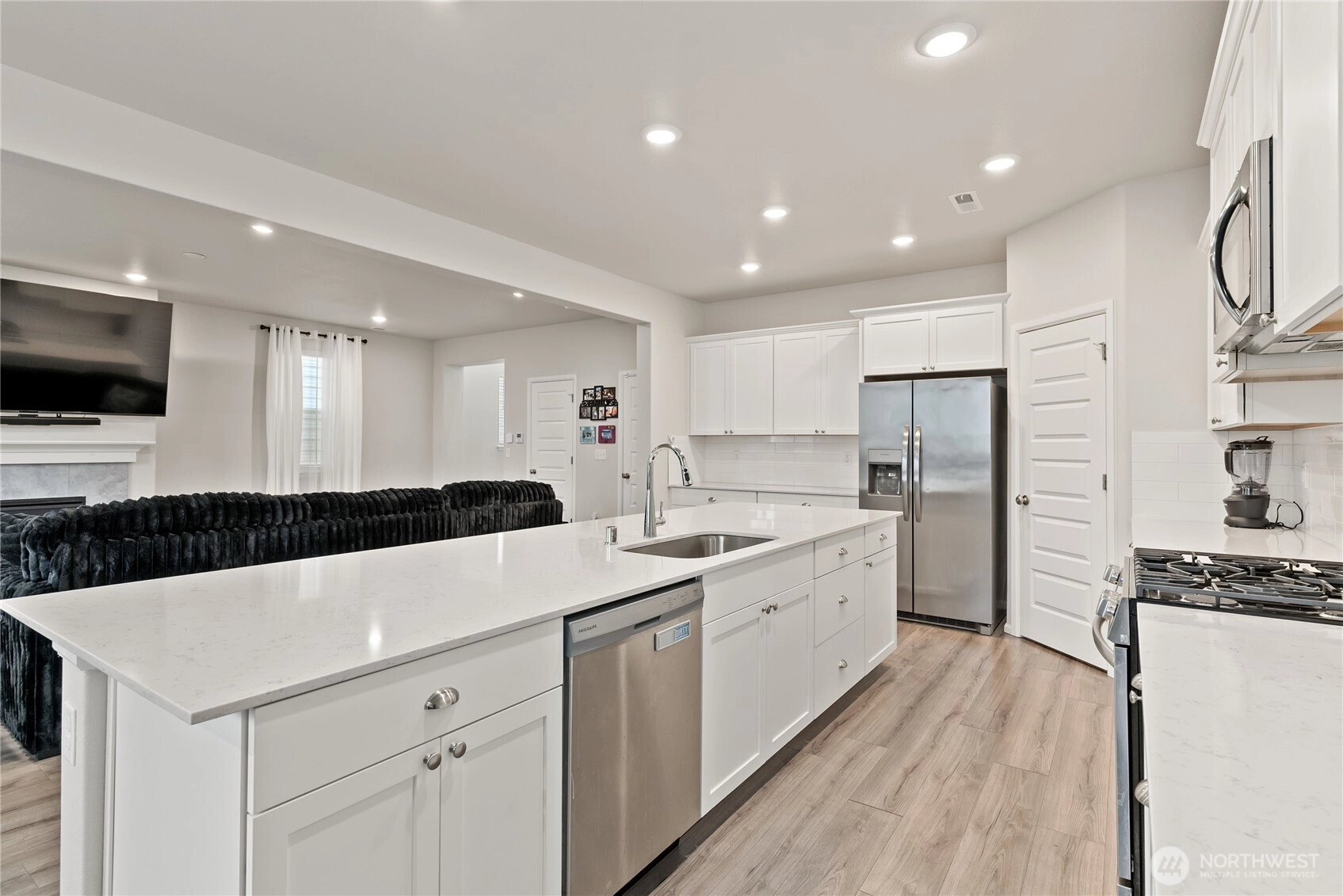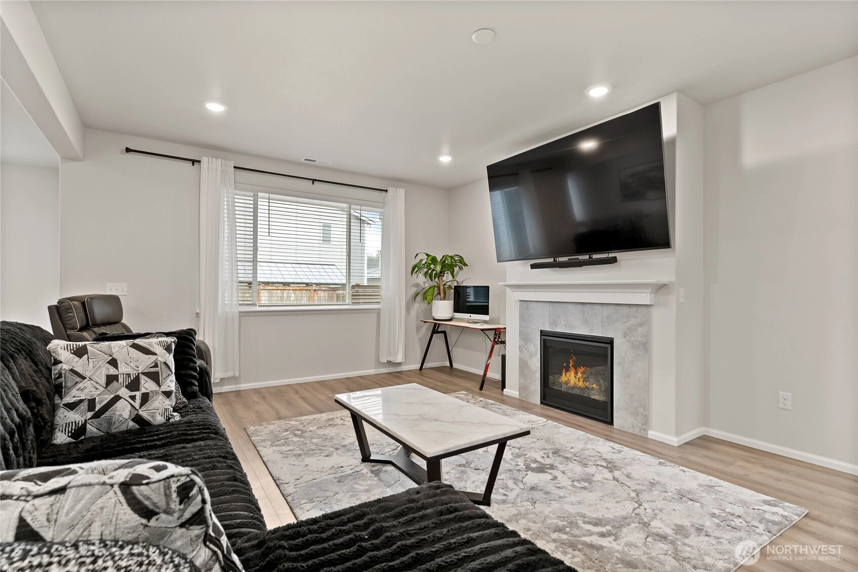 Welcome to this like-new home in the desirable Daybreak community in Graham, WA! Step inside to find LVP flooring throughout, fresh quartz countertops in the gourmet kitchen, and stainless steel appliances. The open-concept kitchen and living room is perfect for everyday living and entertaining, highlighted by a cozy gas fireplace. A large 3-car garage provides ample storage, while the spacious primary suite offers a private full bathroom and generous walk-in closet. The back porch is ideal for gatherings, overlooking a clean, private backyard. With plenty of space for gathering, this home is conveniently located near shopping, schools, and activities. Move-in ready and beautifully maintained—don't miss out!