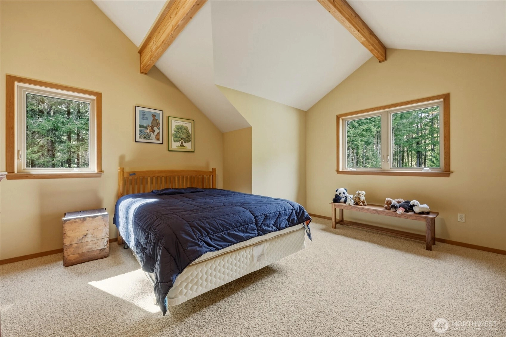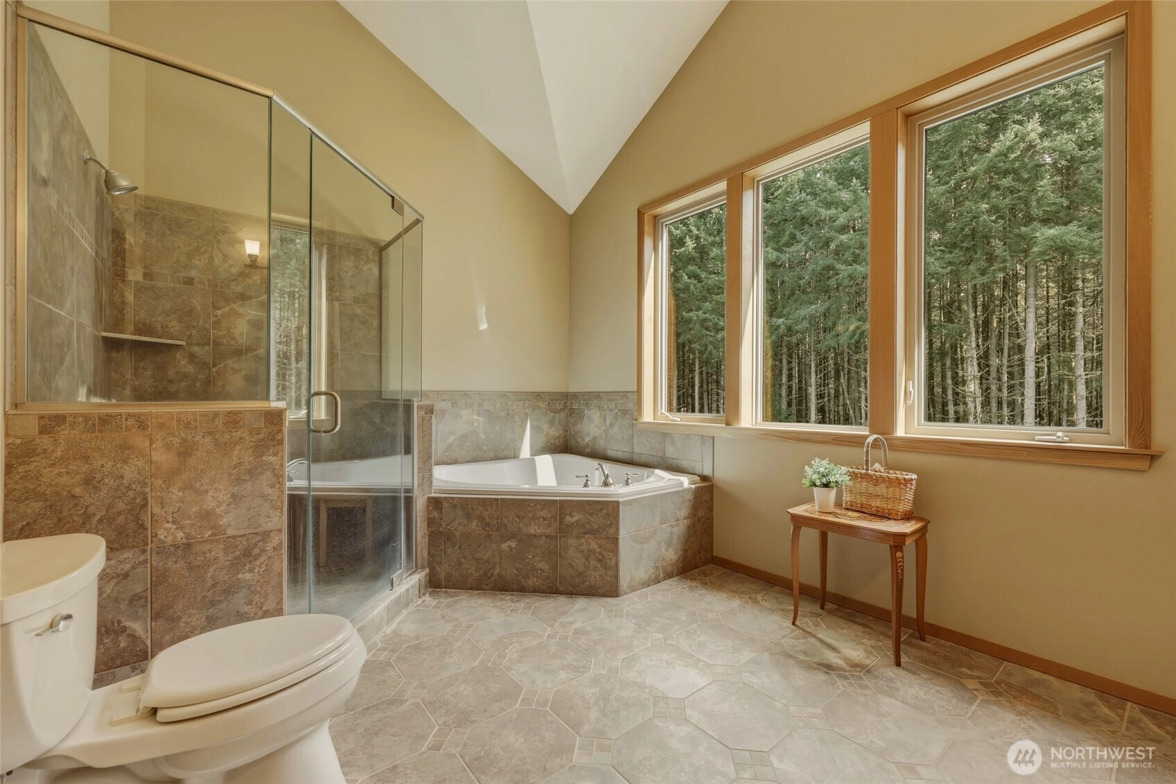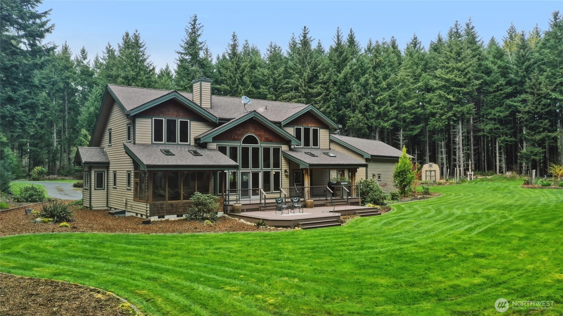 Stunning Lindal Cedar home on nearly 10 acres! The craftsman-style details, tongue-&-groove cedar ceilings, hardwood floors, wood-wrapped windows, & solid wood doors of this gorgeous home are sure to impress; the 20ft vaulted living room w exposed beams, catwalk above, and wall of windows will take your breath away! Fulfill your kitchen dreams with 5-burner Wolf stove, newer stainless appliances, farm sink, beautiful cabinetry, & expansive granite island w hammered copper prep sink. Main floor primary delights w enticing sunroom, spa-appointed bath featuring walk-in shower w multiple heads, jacuzzi tub, & cedar ceiling, and walk-in closet w built-ins. Upstairs maintains the exposed beam/vaulted experience, overlooking living room & outdoor views, while boasting a 2nd primary w walk-in closet, glass-door shower, & soaking tub, plus 2 more bedrooms & additional full bath--providing multiple options for generational living, work from home office, or generous guest space. For the utmost in convenience, don't miss the large pantry, mudroom, and 3/4 bath off the kitchen, en route to the immense 4-car garage w Gladiator rack system & generous bonus space above, accessible via built-in stairs! Take in the gardens & wildlife on the covered composite deck (enhanced by recessed lights, outdoor speakers, hot-cold plumbing, & propane connection) or bask on the open deck amidst natural beauty; wooded privacy, fenced garden beds, greenhouse, fire pit. A must see!