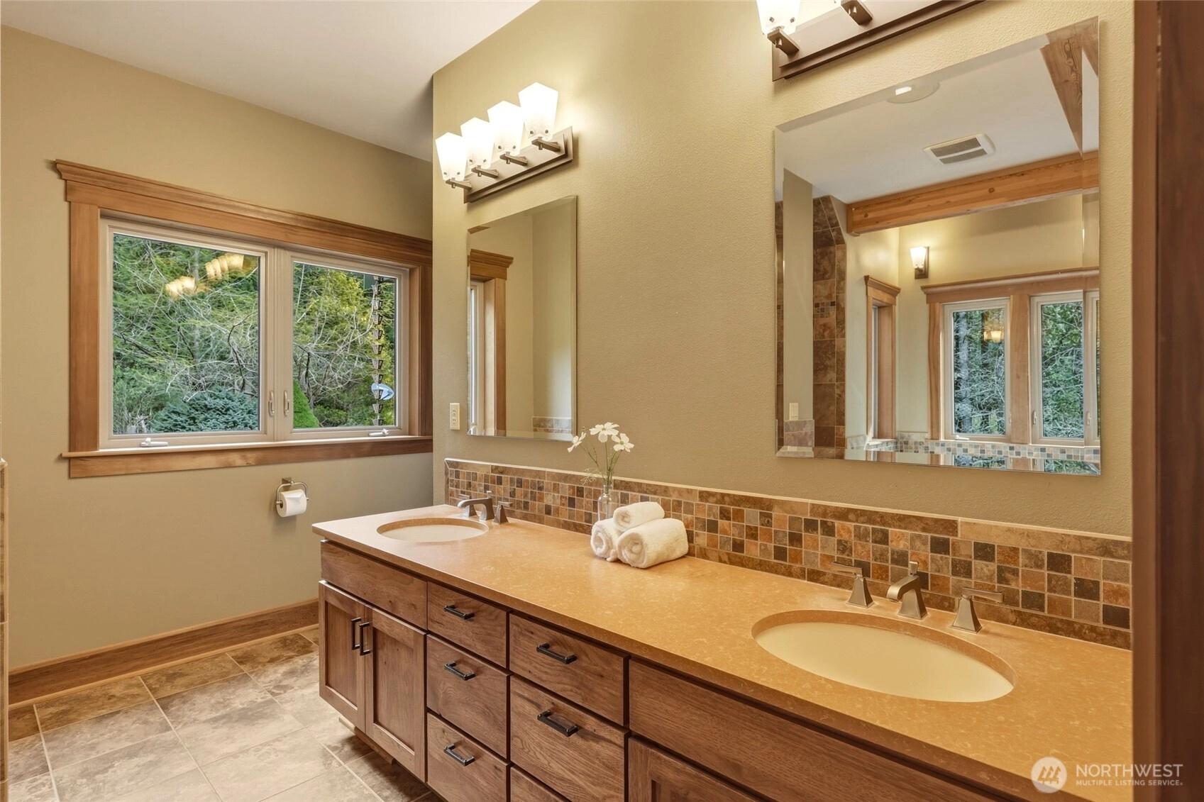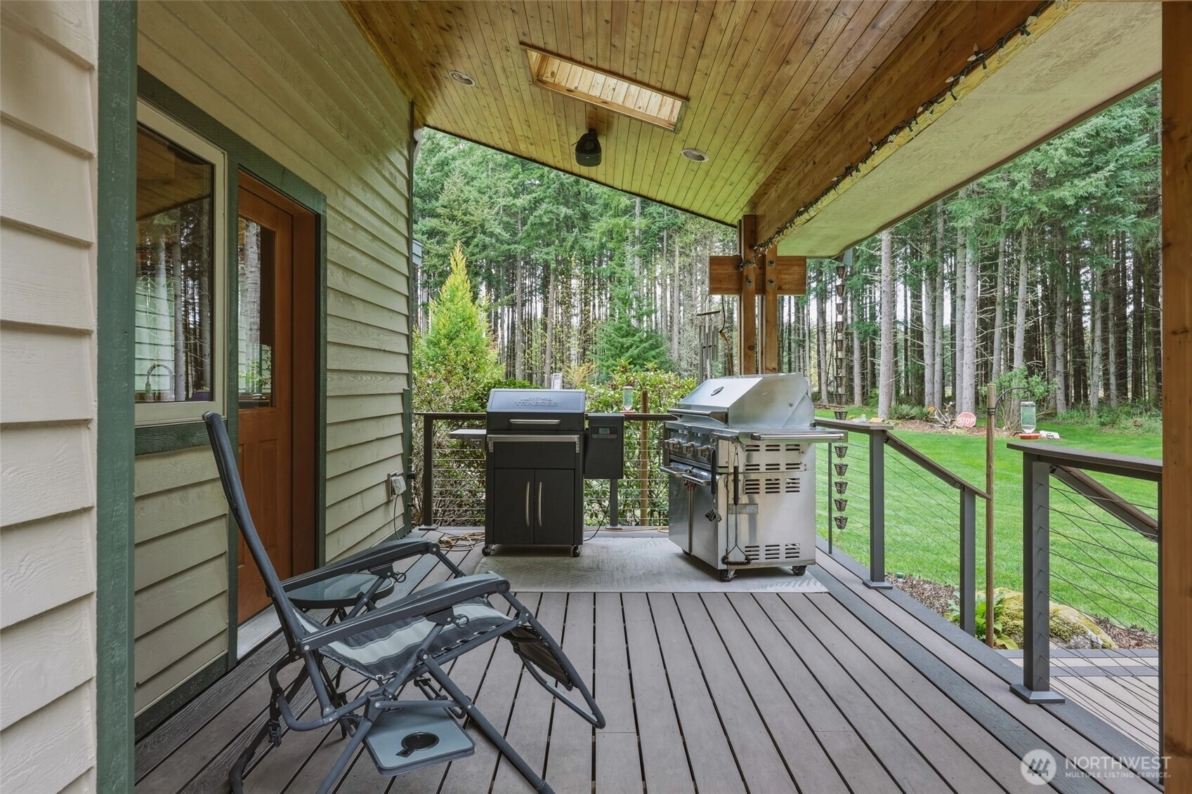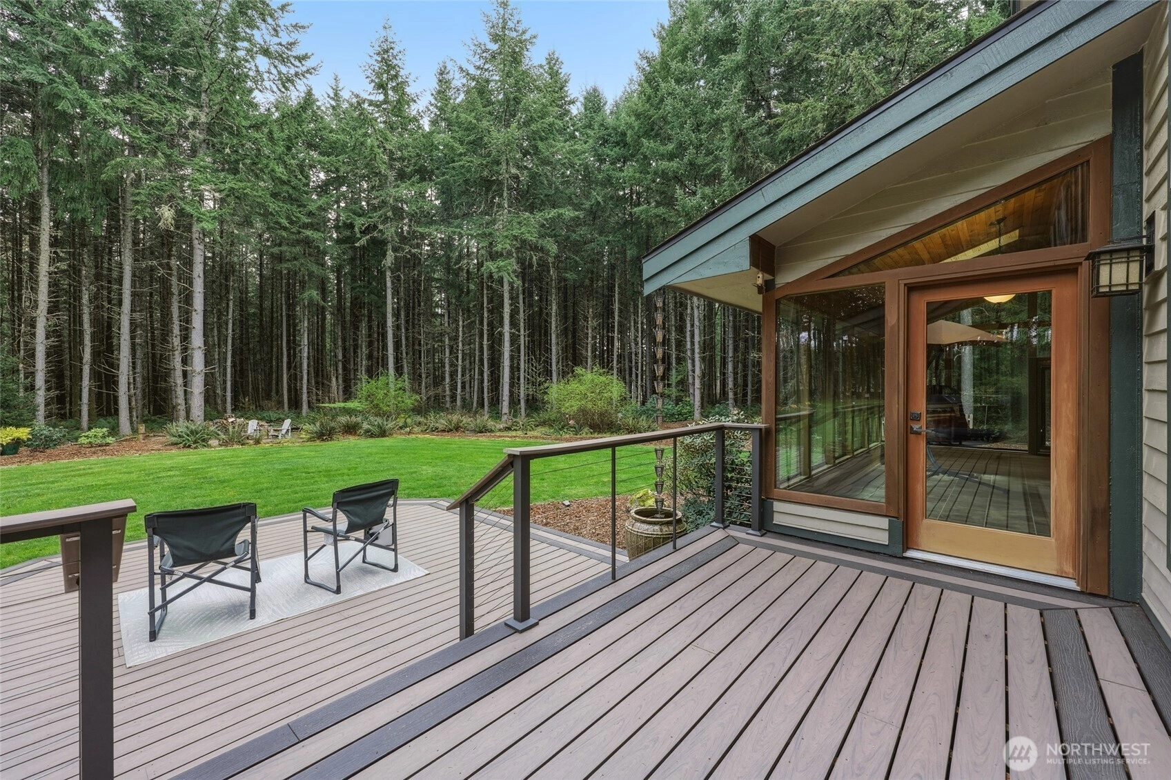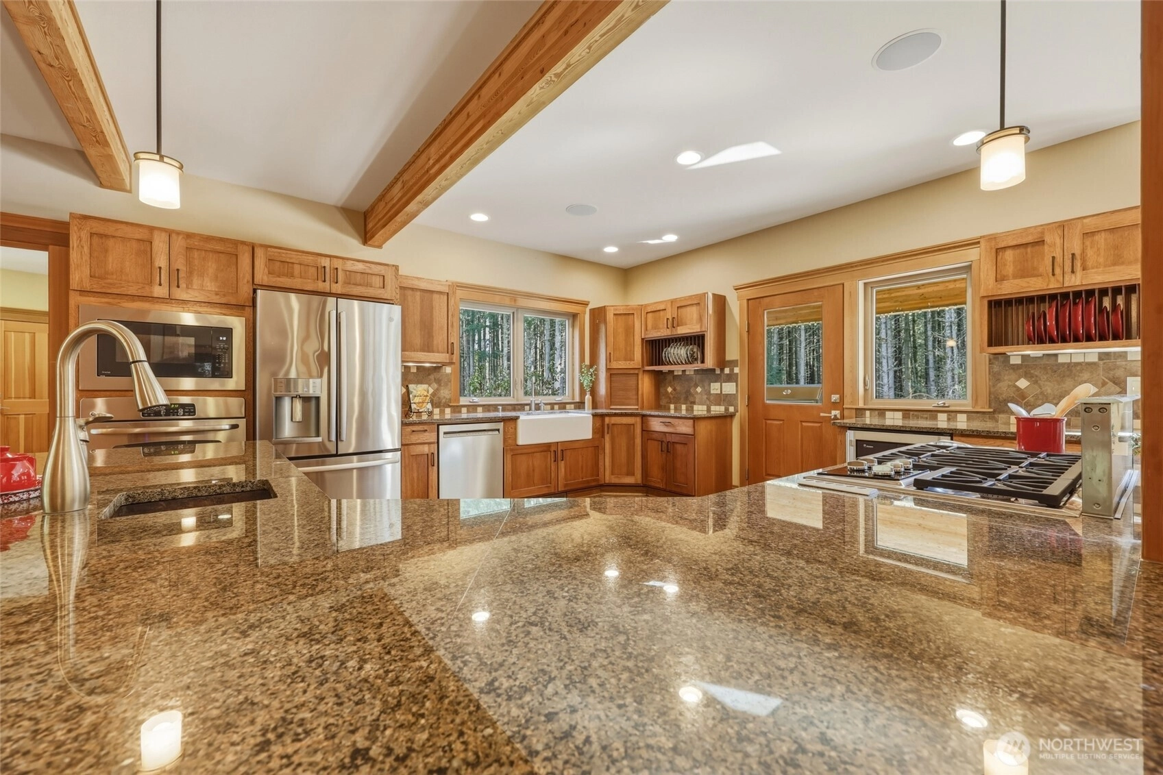 Stunning Lindal Cedar home on nearly 10 acres! The craftsman-style details, tongue-&-groove cedar ceilings, hardwood floors, wood-wrapped windows, & solid wood doors of this gorgeous home are sure to impress; the 20ft vaulted living room w exposed beams, catwalk above, and wall of windows will take your breath away! Fulfill your kitchen dreams with 5-burner Wolf stove, newer stainless appliances, farm sink, beautiful cabinetry, & expansive granite island w hammered copper prep sink. Main floor primary delights w enticing sunroom, spa-appointed bath featuring walk-in shower w multiple heads, jacuzzi tub, & cedar ceiling, and walk-in closet w built-ins. Upstairs maintains the exposed beam/vaulted experience, overlooking living room & outdoor views, while boasting a 2nd primary w walk-in closet, glass-door shower, & soaking tub, plus 2 more bedrooms & additional full bath--providing multiple options for generational living, work from home office, or generous guest space. For the utmost in convenience, don't miss the large pantry, mudroom, and 3/4 bath off the kitchen, en route to the immense 4-car garage w Gladiator rack system & generous bonus space above, accessible via built-in stairs! Take in the gardens & wildlife on the covered composite deck (enhanced by recessed lights, outdoor speakers, hot-cold plumbing, & propane connection) or bask on the open deck amidst natural beauty; wooded privacy, fenced garden beds, greenhouse, fire pit. A must see!