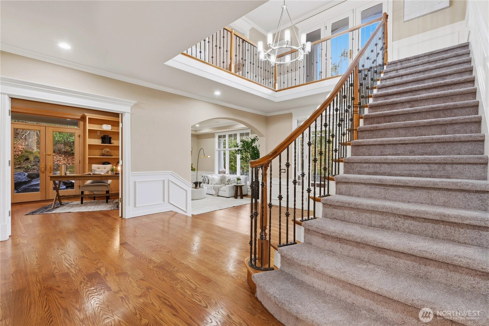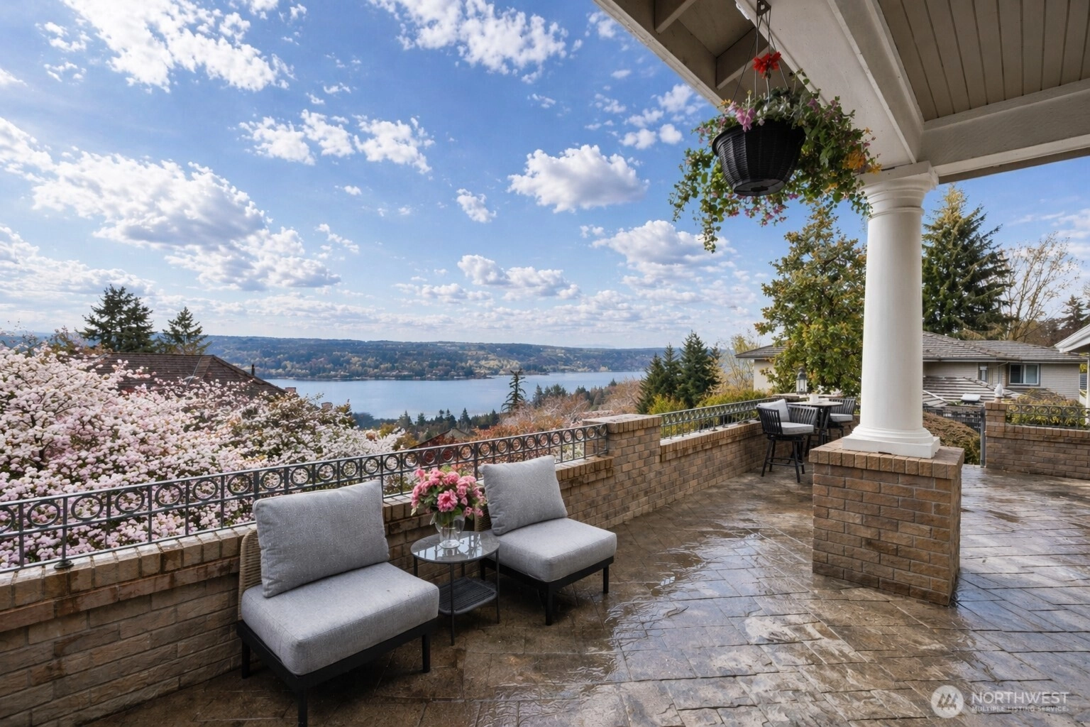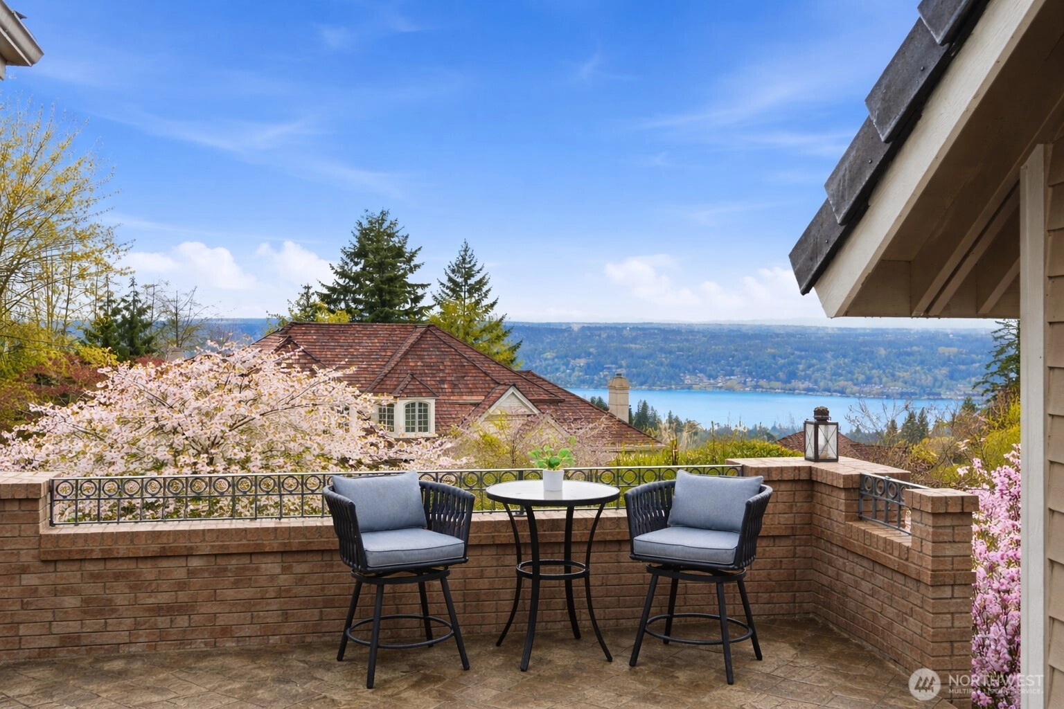 Panoramic views of Lake Sammamish, Mt. Baker & the Cascade Mountains define this exceptional Lakemont Bellevue residence by Street of Dreams builder Design Guild. Elegant and timeless, this home offers soaring ceilings, rich hardwood floors, and walls of windows that fill the space with natural light while showcasing the breathtaking scenery. Dramatic 2-story foyer, formal living and dining rooms, and an expansive family room with fireplace. Chef’s kitchen features slab granite counters, stainless steel appliances, and sunny breakfast nook. Thoughtfully designed with 4 bedrooms, main-floor den that can serve as an additional 5th bedroom, spacious living areas, and versatile bonus room ideal for office, lounge, fitness, or nursery. Upstairs offers 3 bedroom suites, including luxurious primary retreat with stunning lake views and spa-inspired 5-piece bath. Fresh interior paint, new carpet, tile roof, central A/C, and 3-car attached garage add to the hone's appeal. Enjoy the front view deck for taking in the breathtaking scenery while the private backyard provides a peaceful backdrop for entertaining, play, or quiet daily living. Prime Lakemont location in the highly regarded Issaquah School District, close to parks, trails, shopping, dining, and I-90.