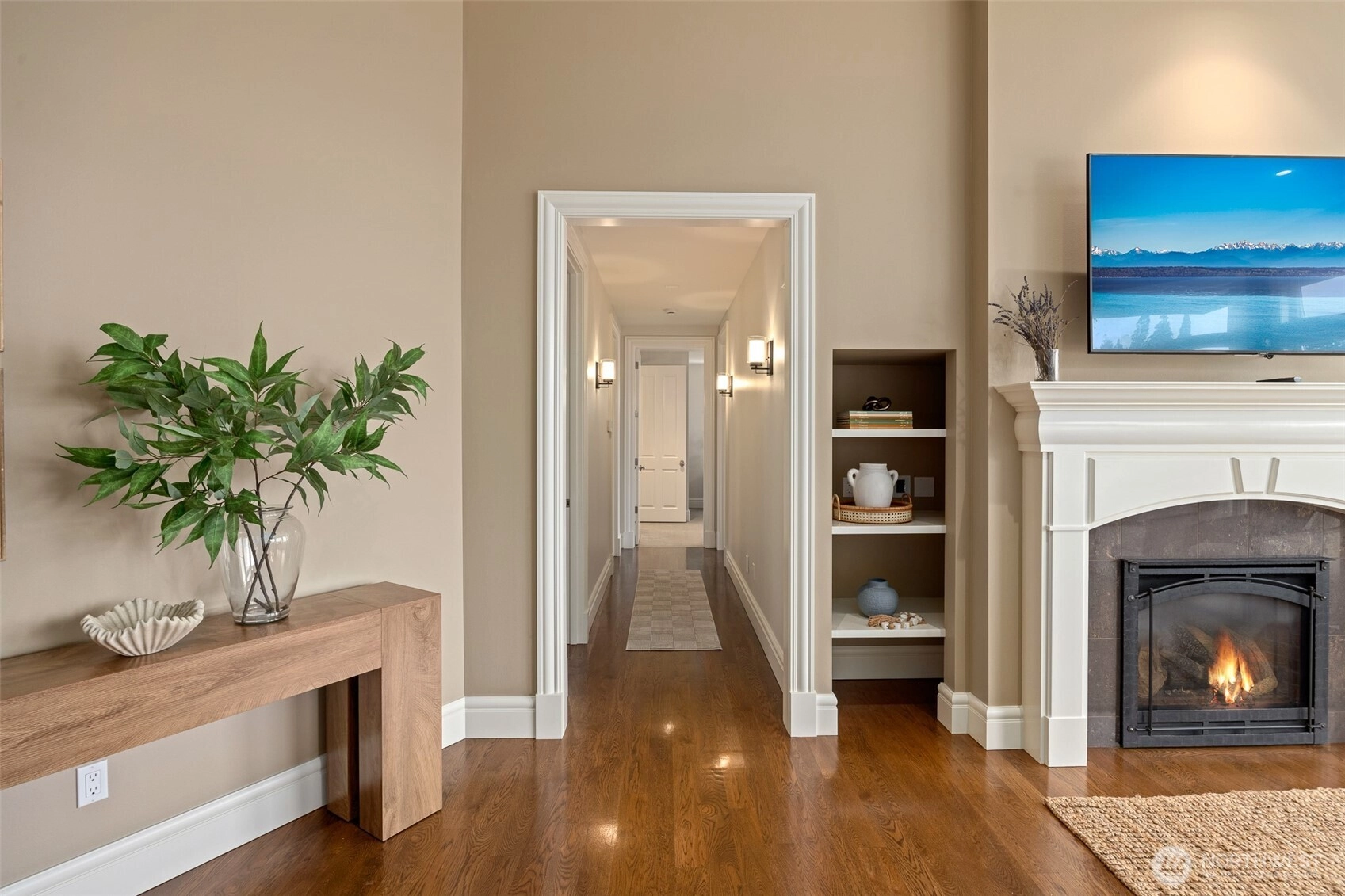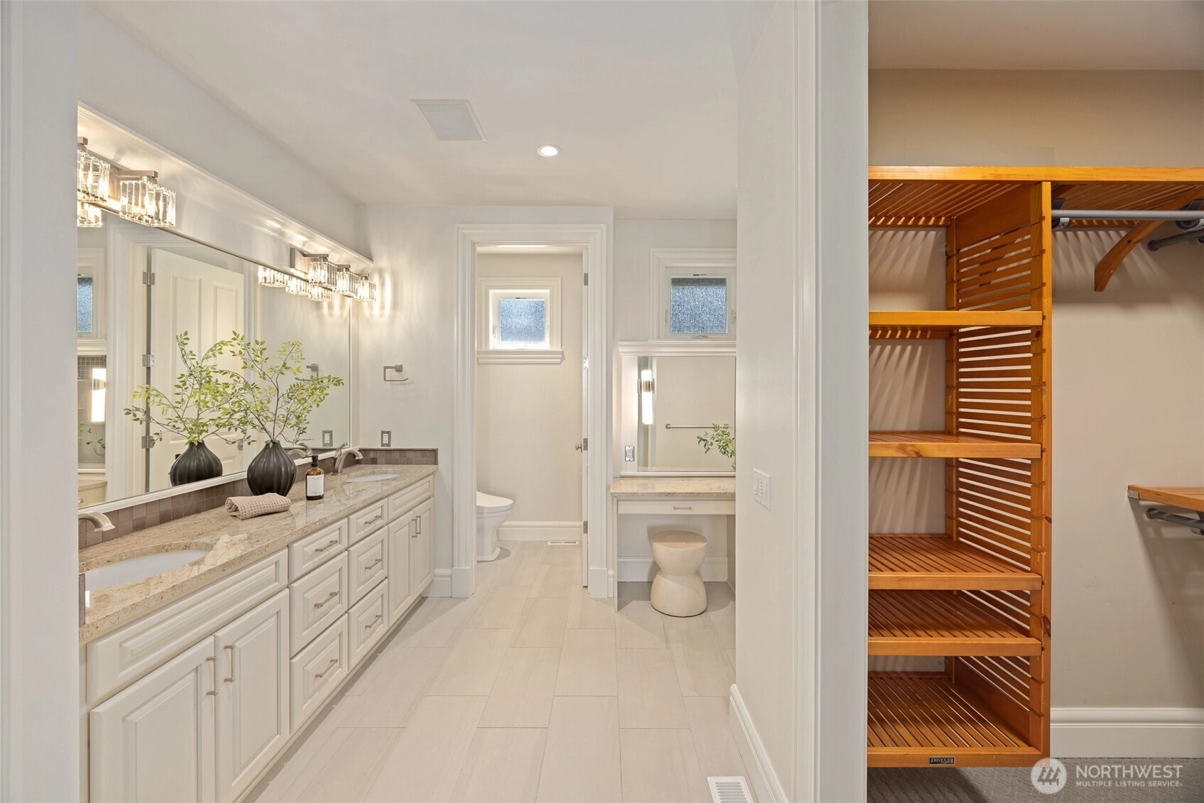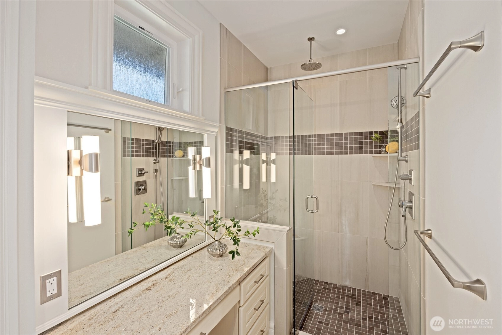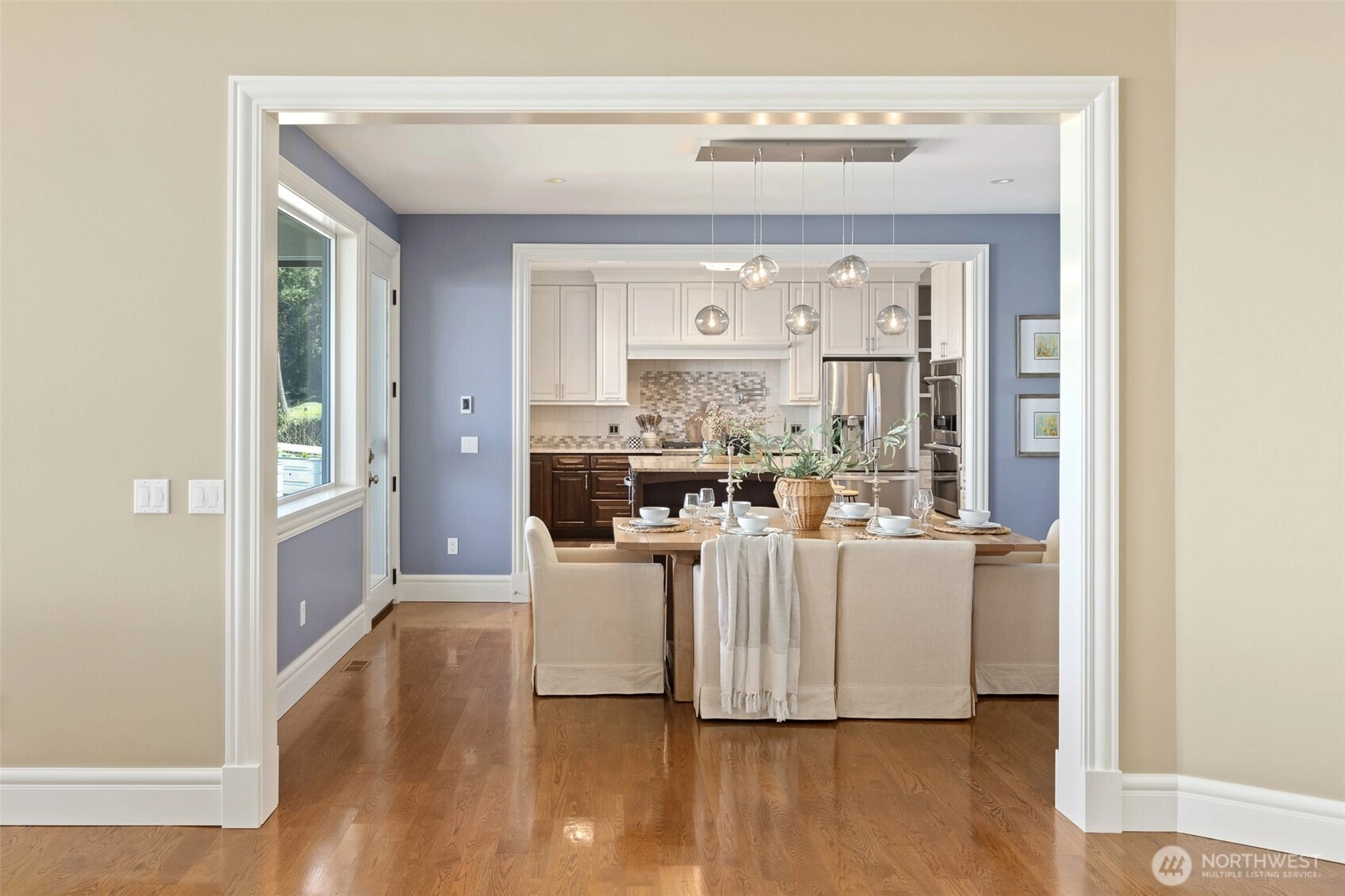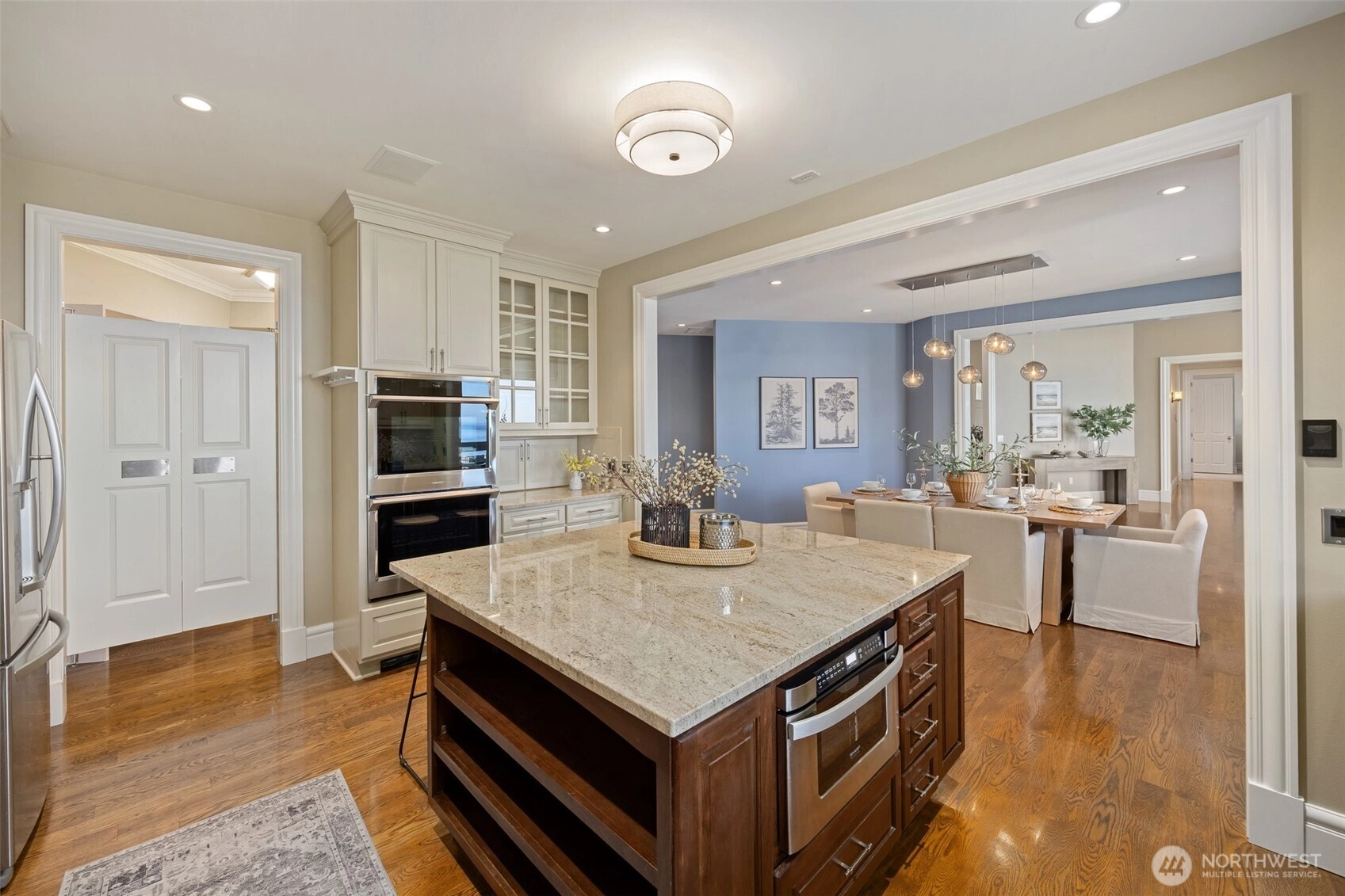 Like new, custom-built rambler by local architect Nash & Assoc. with intricate design & attention to detail across a single level, this one is the crown jewel. Tucked at the end of a quiet cul-de-sac & positioned to maximize year-round westerly panoramas, you'll be transported away from the noise of the world upon arrival. An elegant porte-cochère surrounded by lush plantings & a fountain leads you into the entry, immediately greeting you with a wall of windows framing unobstructed views (no power lines) of the Puget Sound, Kitsap Peninsula & Whidbey. Sophistication & functionality blend seamlessly throughout the stairs-free layout: white oak floors, fresh paint & 12' ceilings accentuate living areas that extend effortlessly outside onto covered view decks for true indoor-outdoor living all year. A magazine-worthy kitchen delivers a luxe cooking & hosting experience w/ butler's pantry, granite counters, high-end appliances, soft-close cabinets, smart storage & gas cooking, all anchored by a spacious center island w/ bar seating. 3 generous bedrooms include a primary retreat w/ its own private deck & sunken hot tub, walk-in closet & spa-like ensuite. Designed w/ efficiency, comfort & convenience in mind: built-in speakers, tankless water heater, A/C, generator, CAT5 wiring & smart Lutron lighting. Garden beds, a gas fire pit & fully fenced yard await your summer hobbies. The ideal location for those who value privacy & prestige, yet moments from all that Edmonds has to offer.