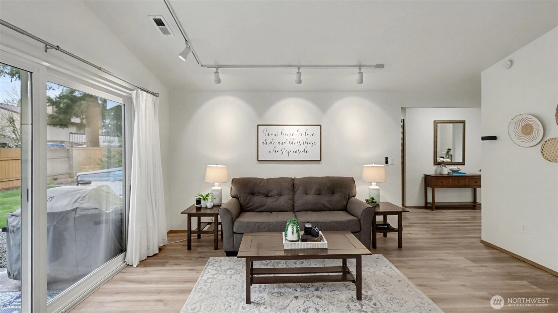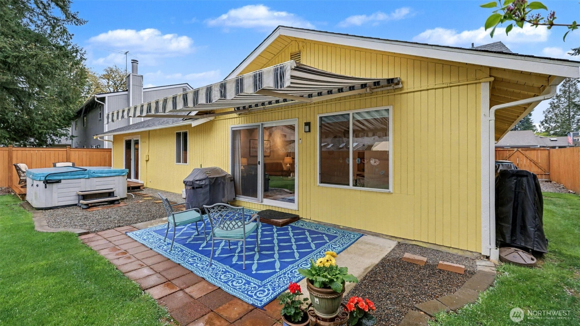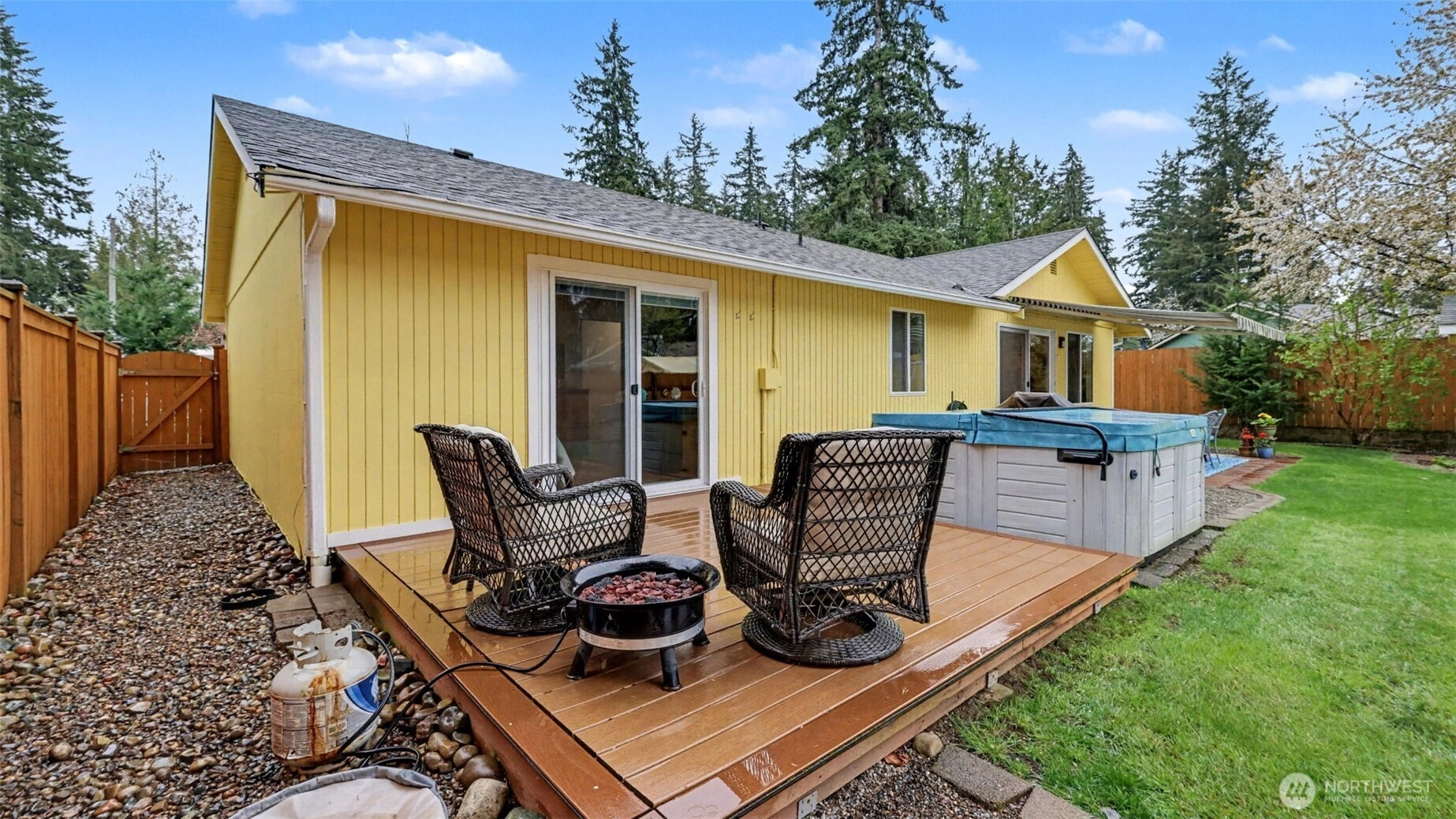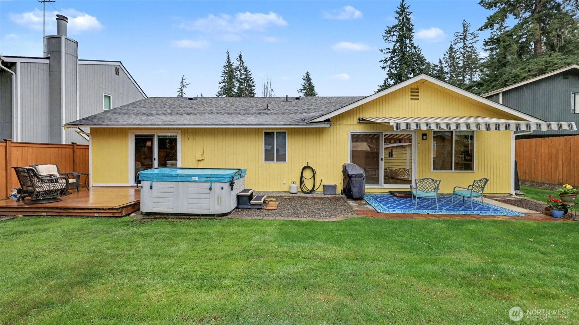 Truly move-in and ready to call home! Coveted rambler situated in a quiet cul-de-sac. Step into a warm and inviting space where thoughtful updates and timeless comfort come together. Cozy wood-burning fireplace creates the perfect setting for everyday living or quiet evenings at home. Natural light and updated lighting throughout enhance the welcoming feel in every room. The spacious primary suite offers a peaceful retreat with its own en suite bath and backyard access to deck & hot tub, while two additional guest rooms provide flexibility for visitors, a home office, or hobbies. There is no carpet throughout the entire home and is pet free making for clean and ready move-in. Step outside to the shaded awning patio overlooking the spacious manicured yard, complete with hot tub, ready to host all of your summer gatherings! Spacious two-car garage provides covered parking, plus additional room for storage. Located in the heart of Covington, a growing and vibrant community, this home offers easy access to everyday essentials and local favorites with shopping, dining, parks, and convenient commuter routes just minutes away.