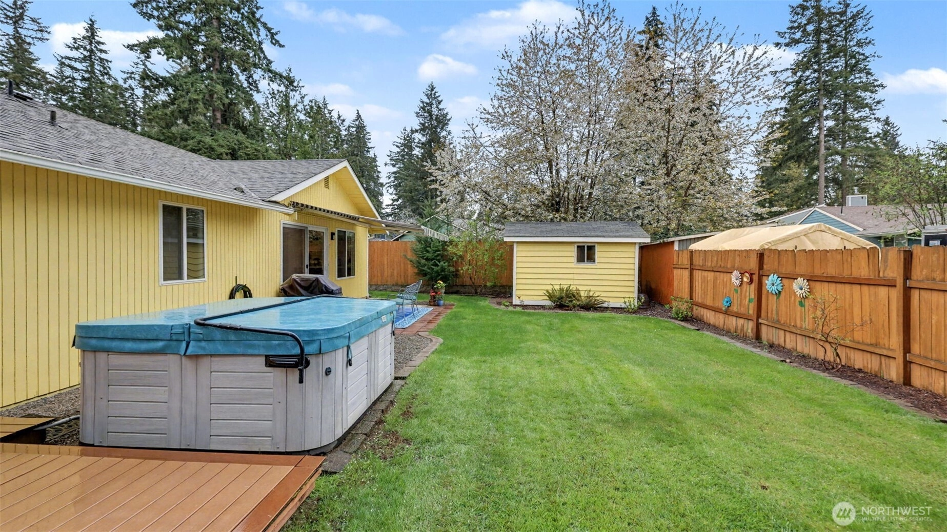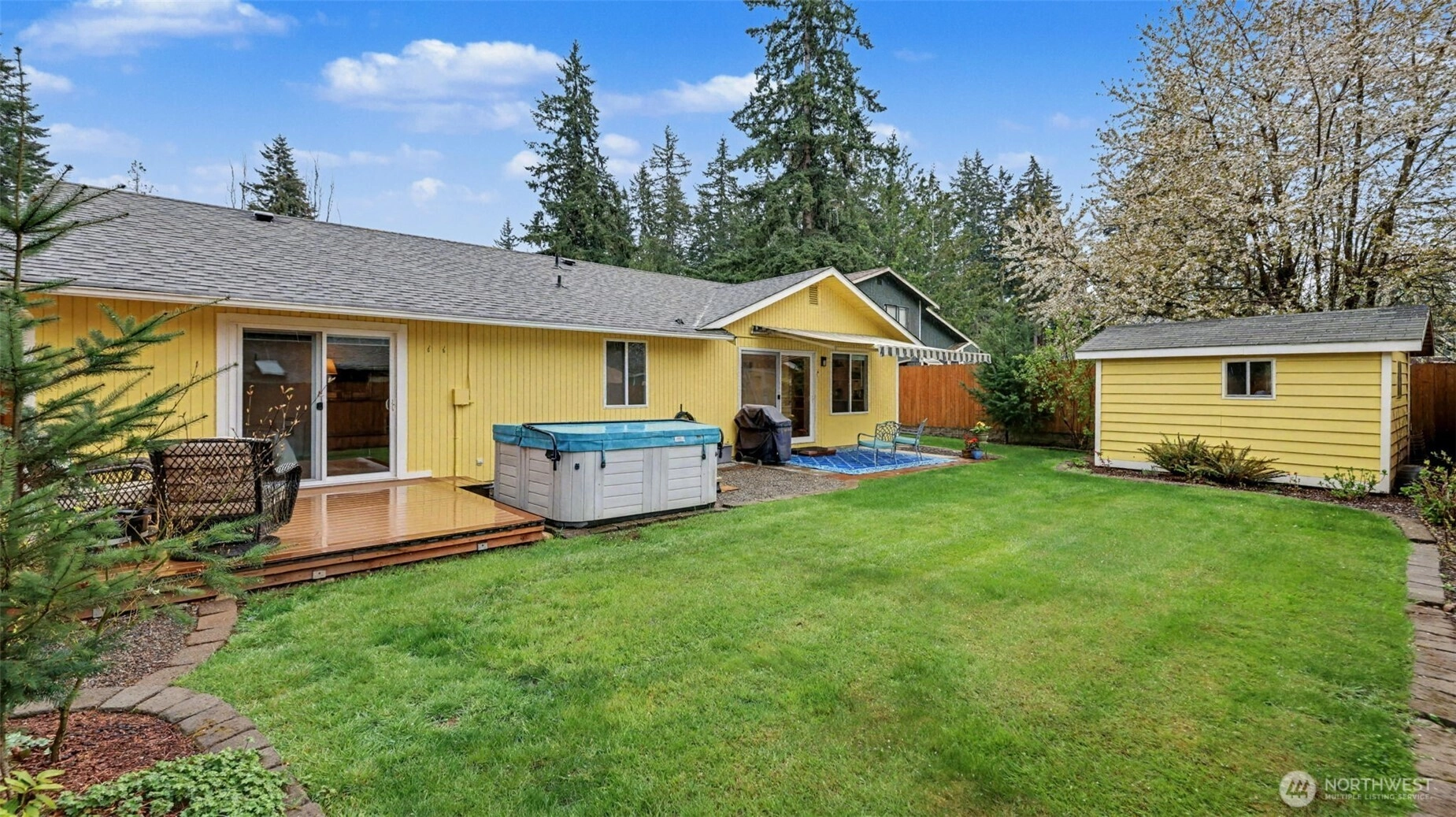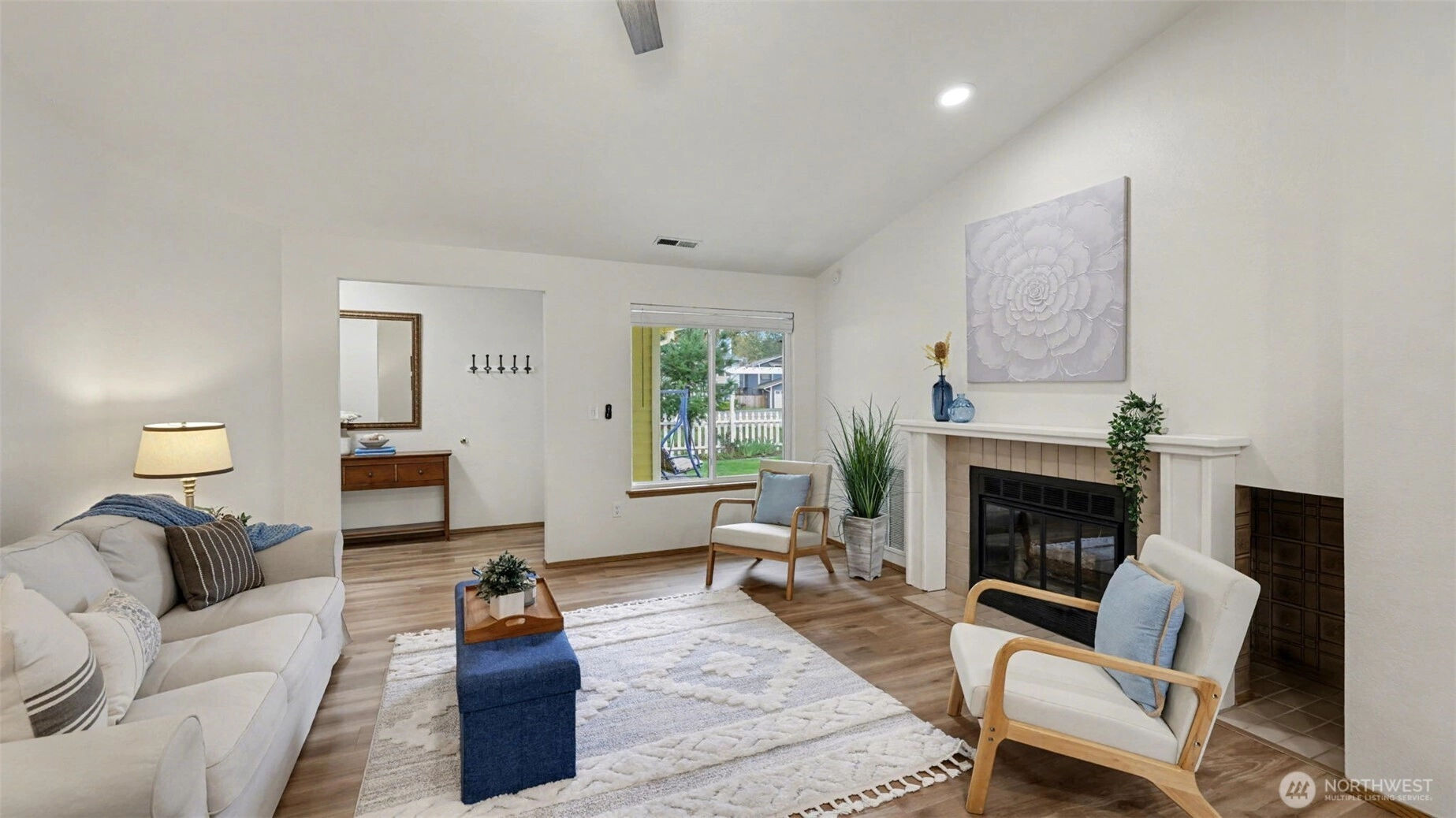 Truly move-in and ready to call home! Coveted rambler situated in a quiet cul-de-sac. Step into a warm and inviting space where thoughtful updates and timeless comfort come together. Cozy wood-burning fireplace creates the perfect setting for everyday living or quiet evenings at home. Natural light and updated lighting throughout enhance the welcoming feel in every room. The spacious primary suite offers a peaceful retreat with its own en suite bath and backyard access to deck & hot tub, while two additional guest rooms provide flexibility for visitors, a home office, or hobbies. There is no carpet throughout the entire home and is pet free making for clean and ready move-in. Step outside to the shaded awning patio overlooking the spacious manicured yard, complete with hot tub, ready to host all of your summer gatherings! Spacious two-car garage provides covered parking, plus additional room for storage. Located in the heart of Covington, a growing and vibrant community, this home offers easy access to everyday essentials and local favorites with shopping, dining, parks, and convenient commuter routes just minutes away.