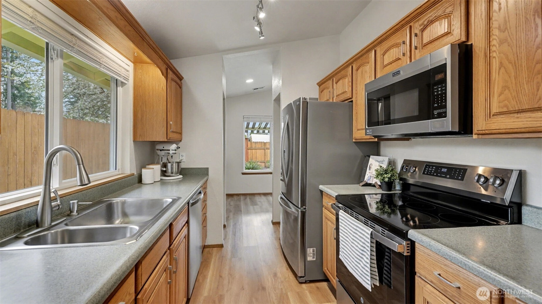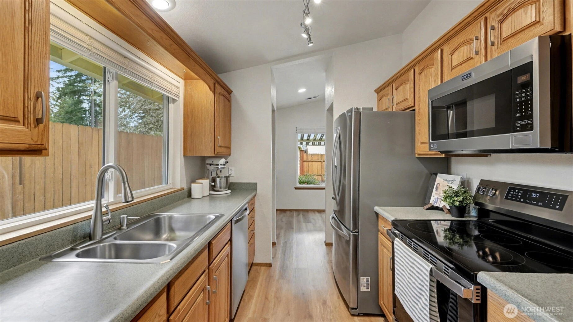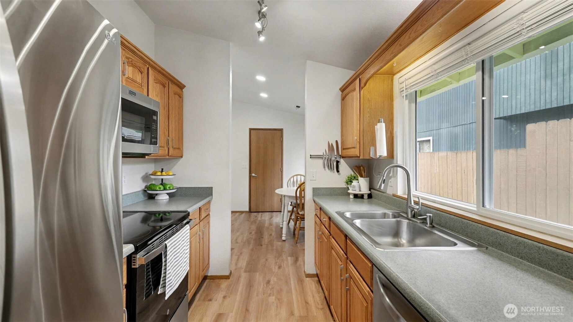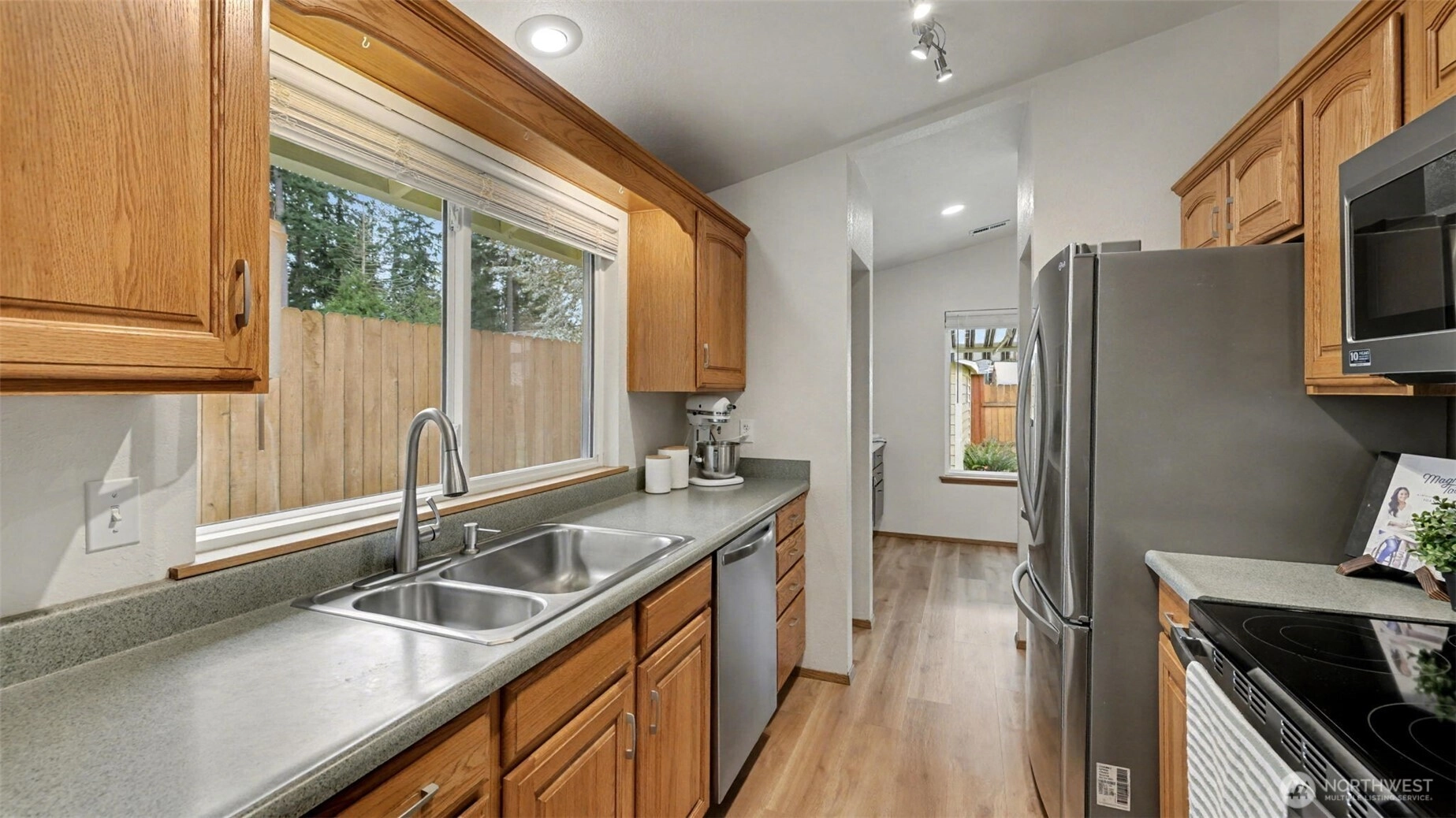 Truly move-in and ready to call home! Coveted rambler situated in a quiet cul-de-sac. Step into a warm and inviting space where thoughtful updates and timeless comfort come together. Cozy wood-burning fireplace creates the perfect setting for everyday living or quiet evenings at home. Natural light and updated lighting throughout enhance the welcoming feel in every room. The spacious primary suite offers a peaceful retreat with its own en suite bath and backyard access to deck & hot tub, while two additional guest rooms provide flexibility for visitors, a home office, or hobbies. There is no carpet throughout the entire home and is pet free making for clean and ready move-in. Step outside to the shaded awning patio overlooking the spacious manicured yard, complete with hot tub, ready to host all of your summer gatherings! Spacious two-car garage provides covered parking, plus additional room for storage. Located in the heart of Covington, a growing and vibrant community, this home offers easy access to everyday essentials and local favorites with shopping, dining, parks, and convenient commuter routes just minutes away.