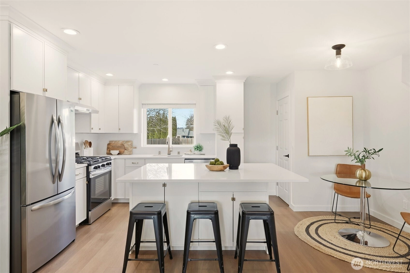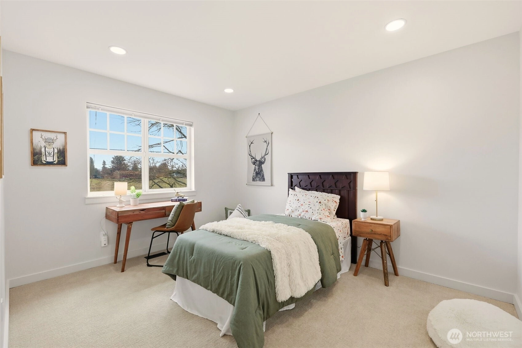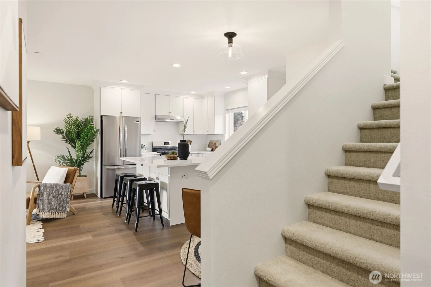 Must see in person to fully appreciate the level of renovation & setting. Exceptionally remodeled home that lives better than new—offering the privacy of a single-family home, a huge fenced yard, & no HOA or shared walls. Nearly every surface has been thoughtfully refreshed w/ quality rarely found in typical updates, including new flooring, cabinetry, doors, millwork, paint, appliances, fixtures, & extensive recessed LED lighting creating a bright, modern interior. The open kitchen features quartz countertops, a large gathering island, new appliances with warranties, & a spacious pantry. Upstairs, the primary suite offers valley views, a large closet, and a beautifully updated bath with custom tile shower. Fully remodeled additional bath with custom tile flooring and soaking tub. Step outside to a new covered outdoor living area and expansive deck overlooking the large, level fenced yard offering space, flexibility, and privacy rarely found this close to downtown. Garden beds, storage shed, and RV parking add versatility. Addl upgrades include new roof & skylights, new gutters, new furnace, A/C, new crawlspace vapor barrier, & custom window shades. Large garage with high ceilings and storage. No HOA. No monthly fees. No restrictions. Blocks to grocery, dining, and local shops with easy Eastside access to Microsoft, Amazon, Google, and SpaceX. Enjoy stunning private views across open sunflower fields to the surrounding mountains, an experience that truly sets this home apart.