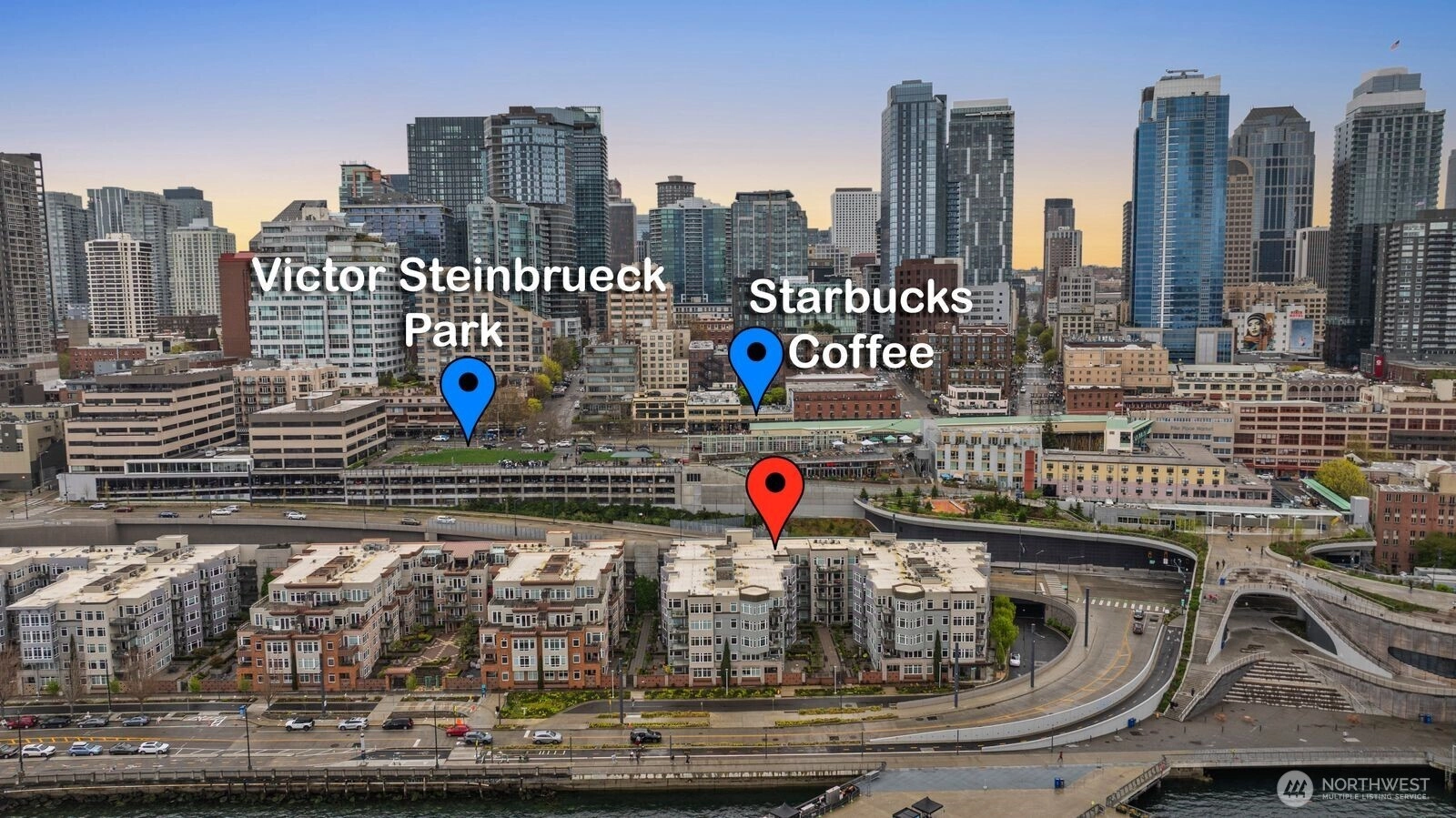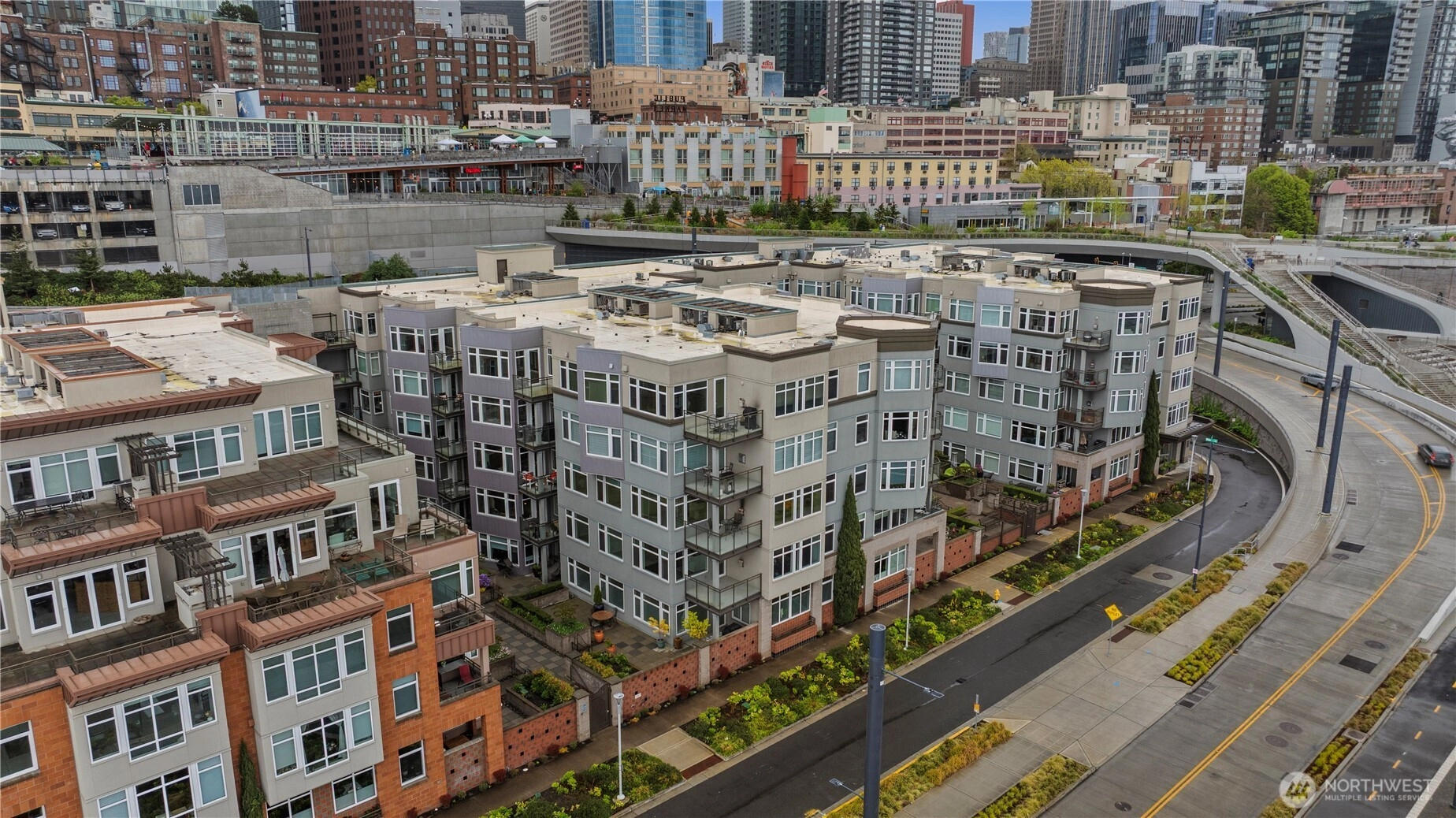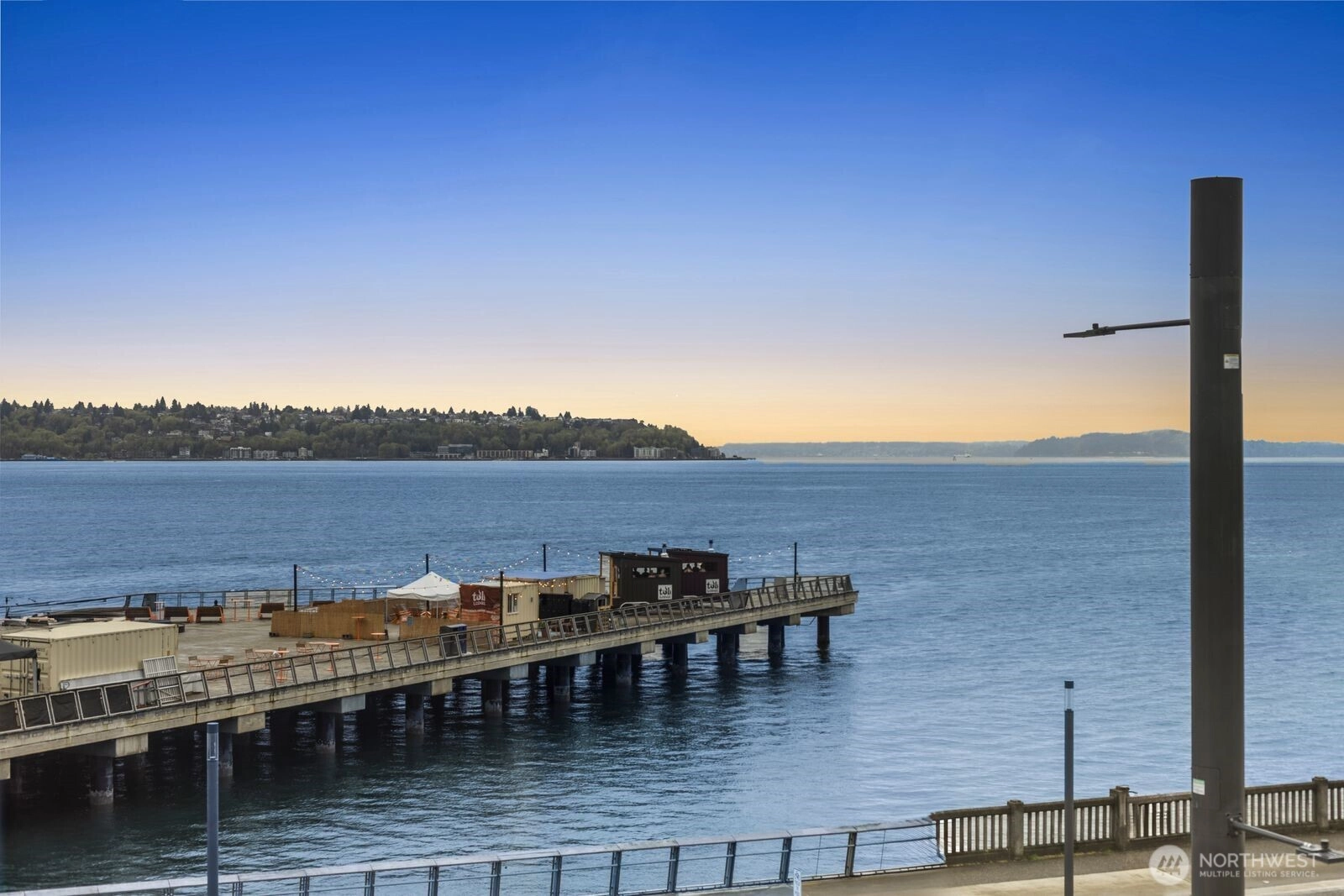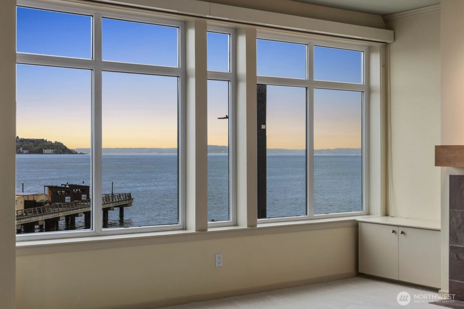 Welcome to Waterfront Landings, the only condominium project on the rejuvenated downtown waterfront. This sought after community features vibrant garden courtyards, resort style amenities and 180-degree views of Puget Sound and the Olympics at your front door. Steps to Pike Place Market, the Aquarium, Miner's Landing, countless restaurants, shopping, sports stadiums, cruise ships, the symphony, SAM, the newly constructed Overlook Walk, ferries-you have it all! Truly unbeatable location with a Walkscore of 96 and Ridescore of 100! This coveted end unit features breathtaking views, an open-concept layout, cozy gas fireplace, contemporary kitchen with gas cooking, ample storage and two spacious bedrooms including a primary suite with soaking tub, shower, double vanity and walk-in closet. Take in awe-inspiring sunsets from your private covered deck or pop up to the to the community's rooftop BBQ deck—perfect for relaxing or entertaining. Enjoy piece of mind with 24/7 concierge-security, fully equipped fitness center & hot tub, guest suite, club room, even a hobby room! Central forced air heat and A/C! Two side x side parking spaces in the secure garage plus a storage unit just down the hall. No rental cap and the property is uniquely well-positioned for strong short-term rental demand. A must see!