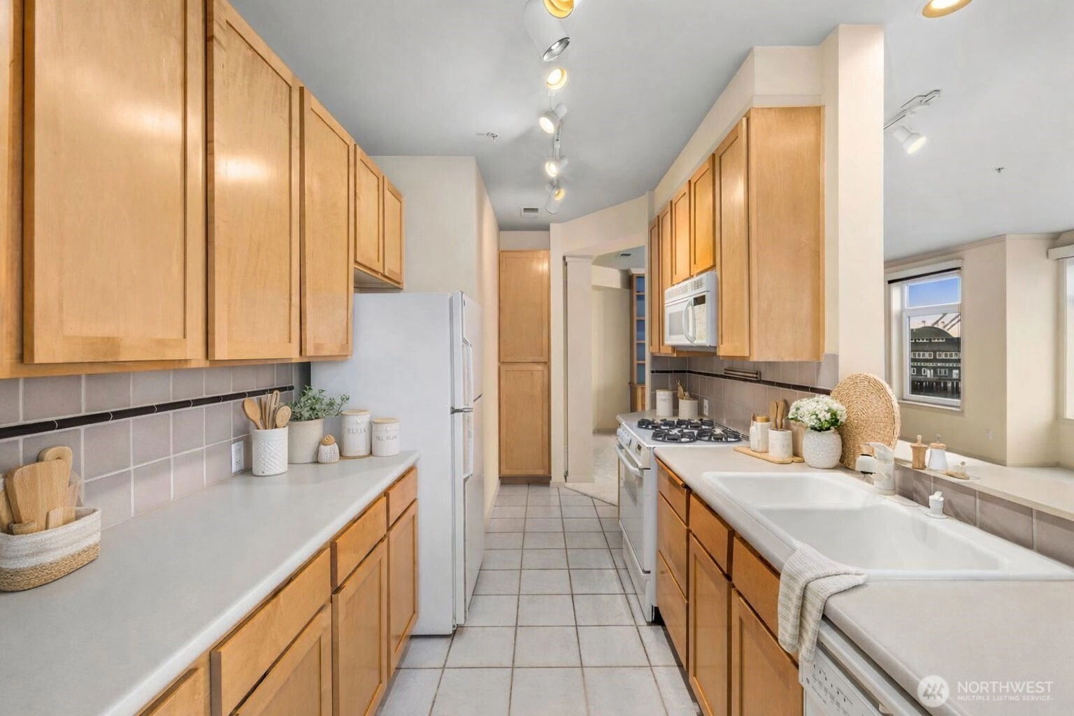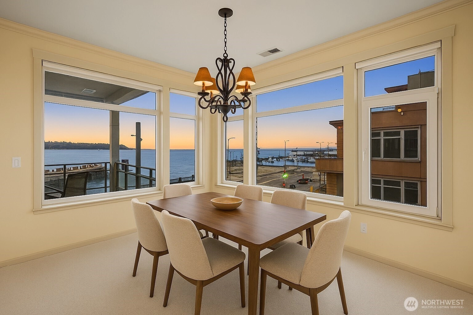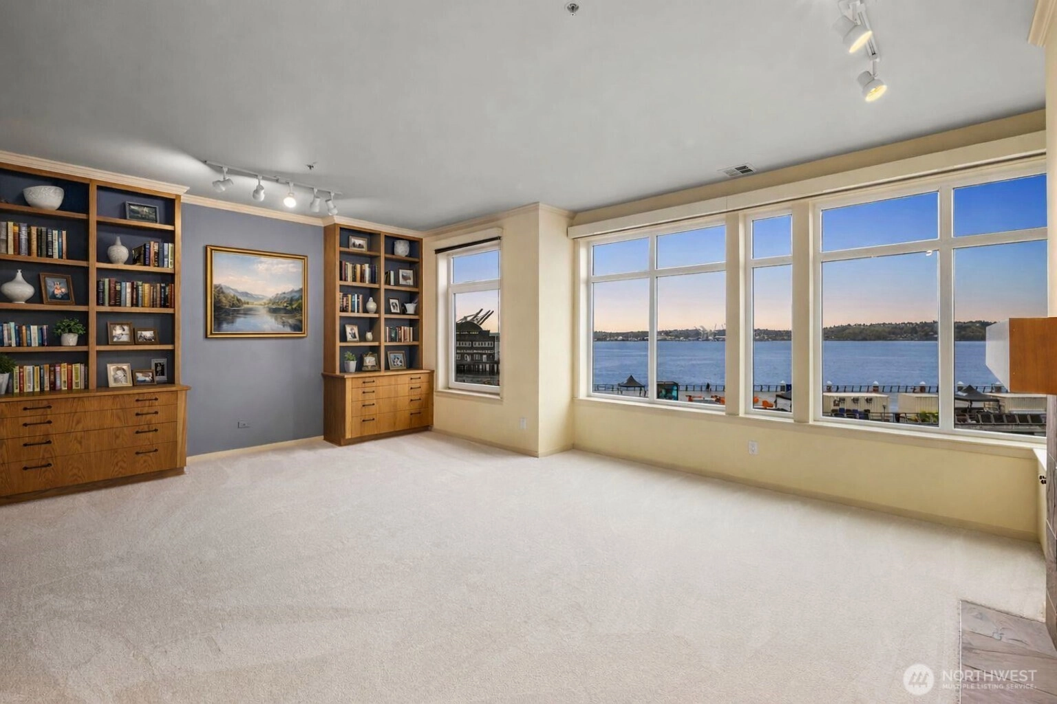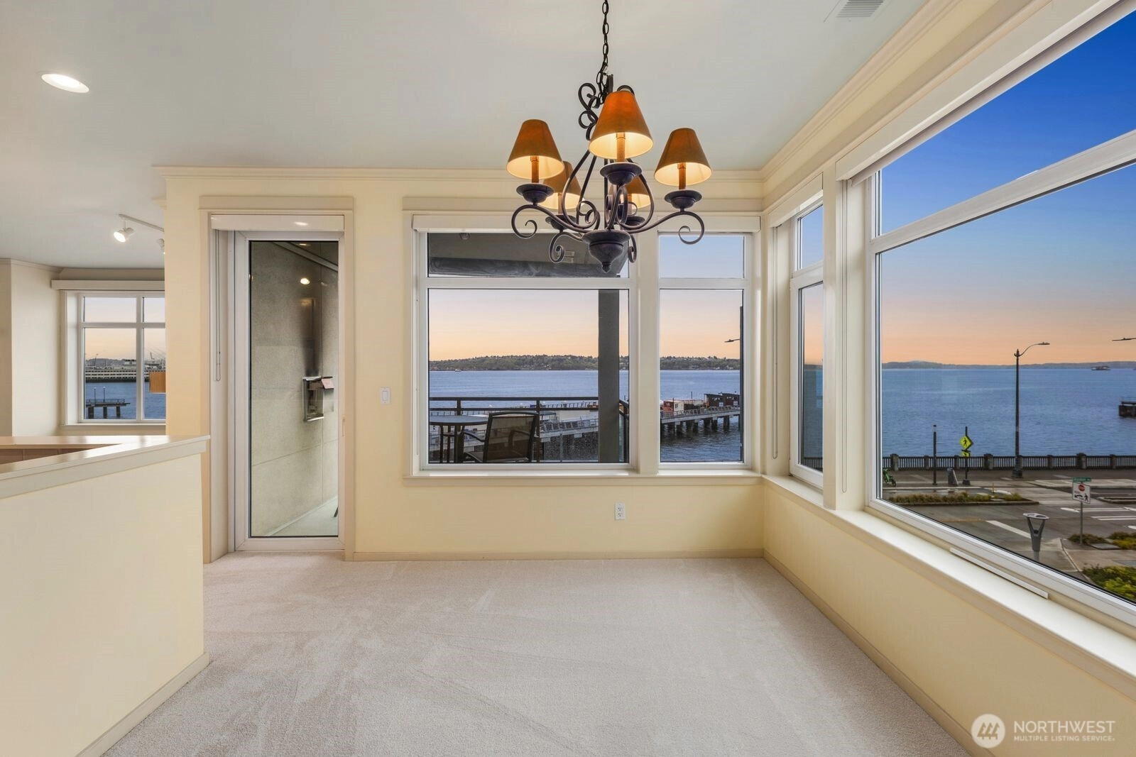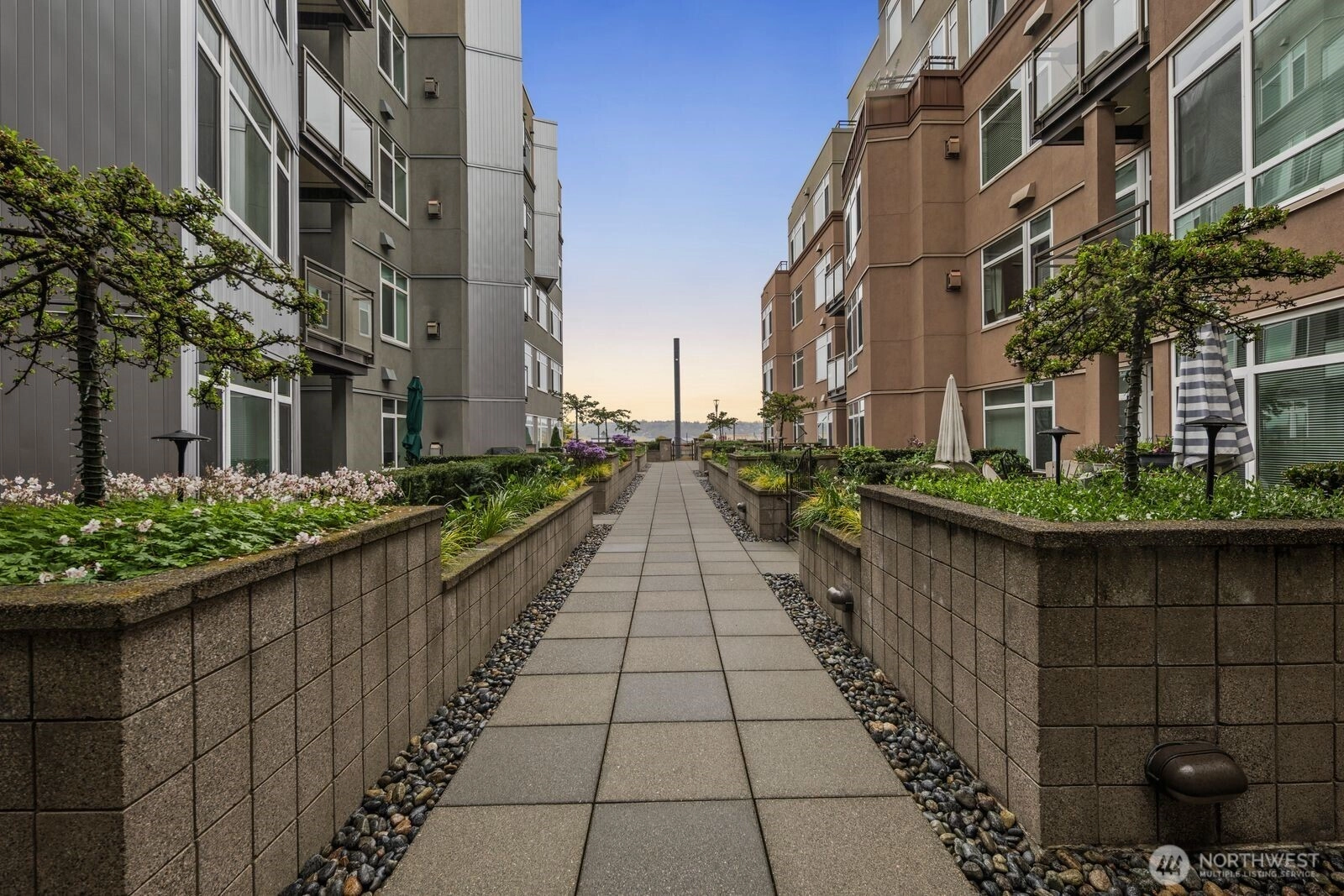 Welcome to Waterfront Landings, the only condominium project on the rejuvenated downtown waterfront. This sought after community features vibrant garden courtyards, resort style amenities and 180-degree views of Puget Sound and the Olympics at your front door. Steps to Pike Place Market, the Aquarium, Miner's Landing, countless restaurants, shopping, sports stadiums, cruise ships, the symphony, SAM, the newly constructed Overlook Walk, ferries-you have it all! Truly unbeatable location with a Walkscore of 96 and Ridescore of 100! This coveted end unit features breathtaking views, an open-concept layout, cozy gas fireplace, contemporary kitchen with gas cooking, ample storage and two spacious bedrooms including a primary suite with soaking tub, shower, double vanity and walk-in closet. Take in awe-inspiring sunsets from your private covered deck or pop up to the to the community's rooftop BBQ deck—perfect for relaxing or entertaining. Enjoy piece of mind with 24/7 concierge-security, fully equipped fitness center & hot tub, guest suite, club room, even a hobby room! Central forced air heat and A/C! Two side x side parking spaces in the secure garage plus a storage unit just down the hall. No rental cap and the property is uniquely well-positioned for strong short-term rental demand. A must see!