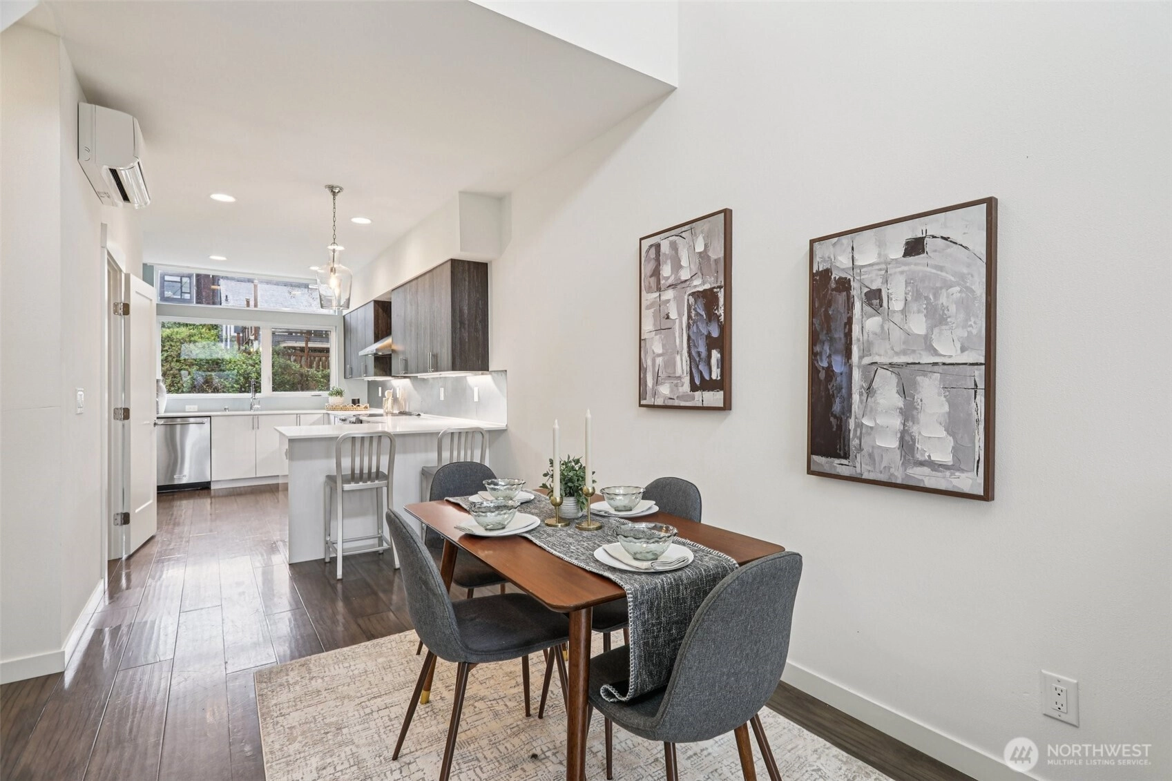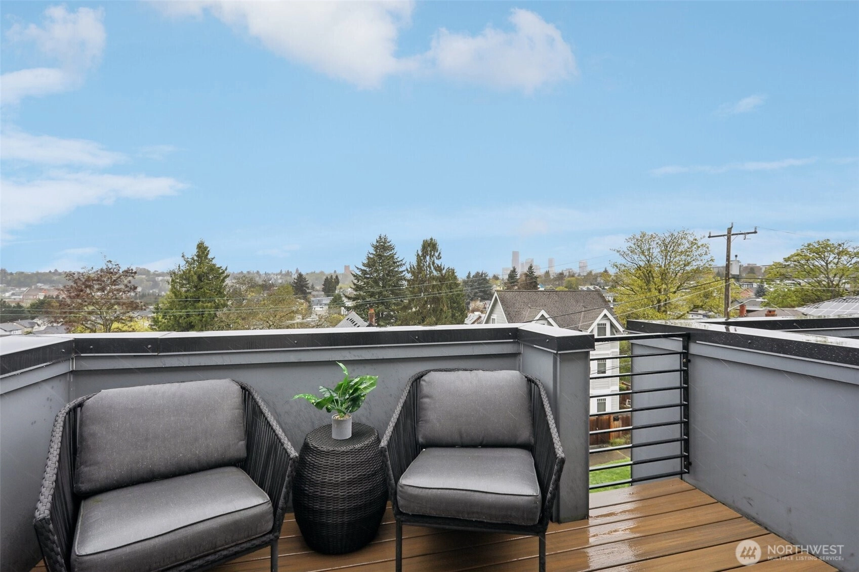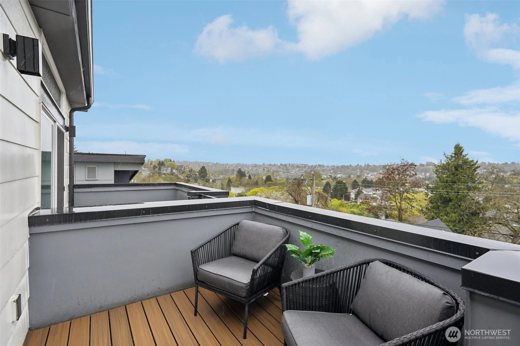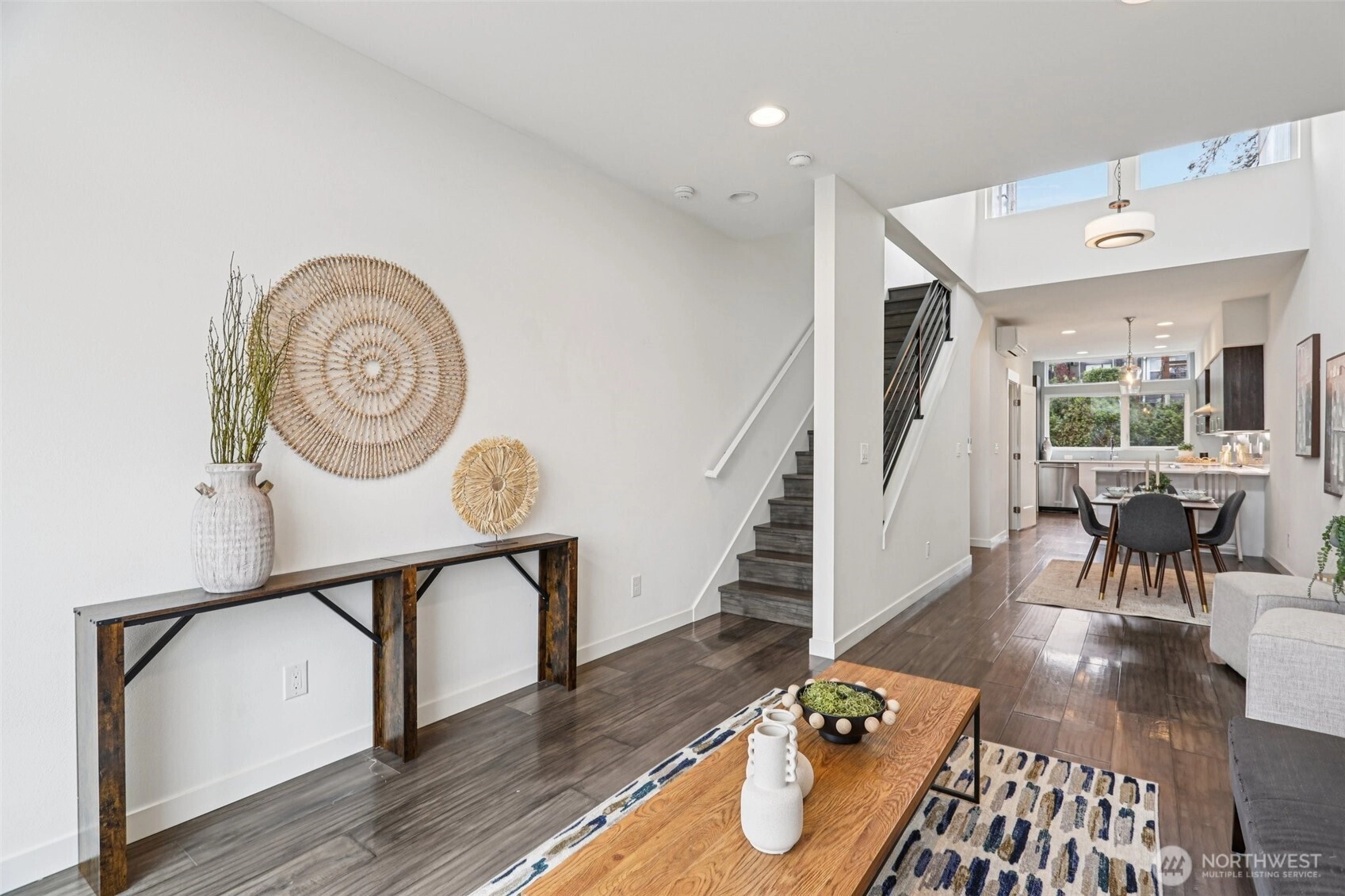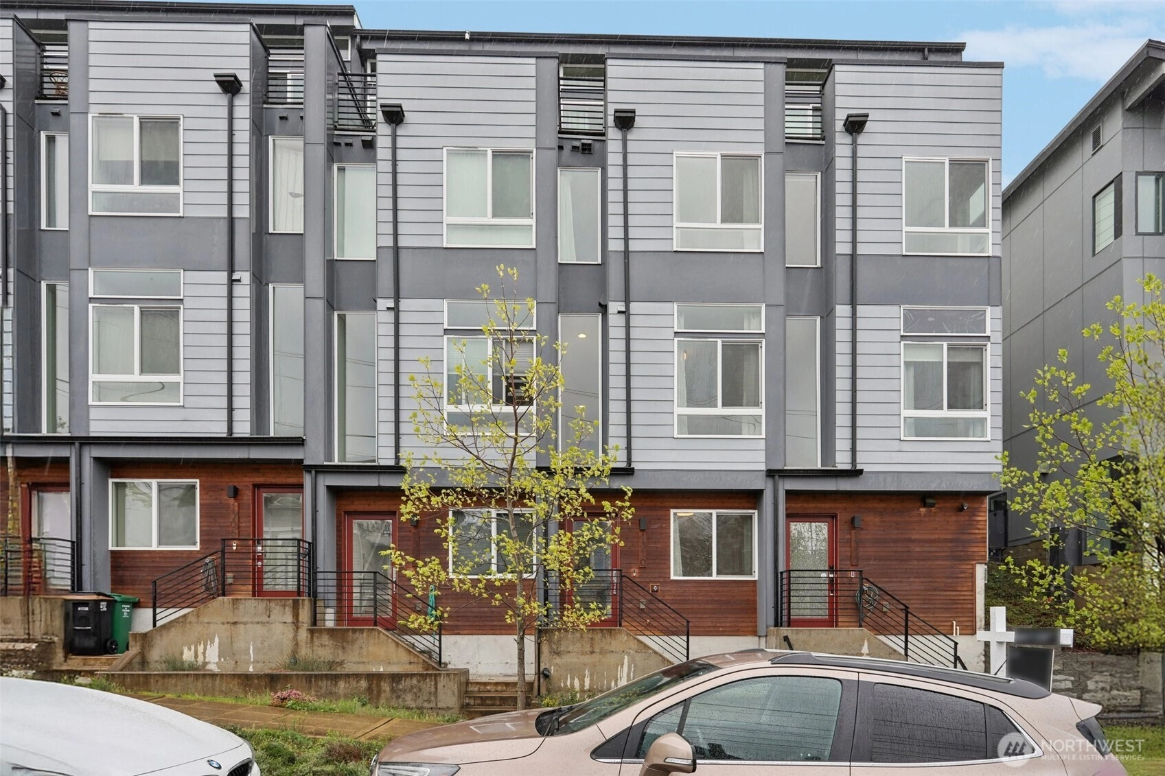 Beautiful modern townhouse with distinct design, functional layout, and real privacy. Built by Blackwood Builders in 2020, this 4-bedroom, 3.5-bath home offers 1,767 sq ft of well-separated living across multiple levels, creating flexibility for guests, work-from-home, or shared living. The main living level is elevated and intentionally set apart, featuring high ceilings with clerestory windows, large windows, and great natural light without feeling exposed to neighboring homes. The open-concept kitchen is outfitted with quartz countertops, stainless appliances, custom cabinetry, and generous pantry. This layout delivers true bedroom separation, giving each level its own sense of space and privacy. Multiple outdoor areas—including a living-level deck and rooftop deck—offer usable outdoor space for relaxing or entertaining, with territorial, city, and mountain outlooks. Additional features include hardwood flooring, new additional hardwood upgrades, mini-split heating and cooling, and designated off-street parking. The home also has a quieter, more tucked-away feel within the community, creating a comfortable buffer from surrounding units. Located on the Mt. Baker Ridge, you’re less than a mile to Lake Washington and Coleman Park, with quick access to historic Leschi, I-90, Downtown Seattle, Bellevue, and the Eastside. Close access to the new Judkins Light Rail Station and bus routes make commuting simple, while parks, cafes, and neighborhood amenities are all within reach.