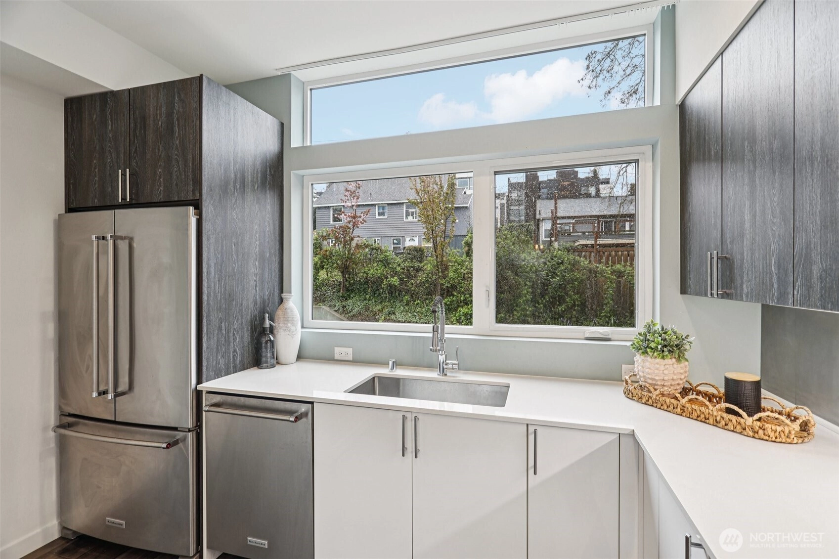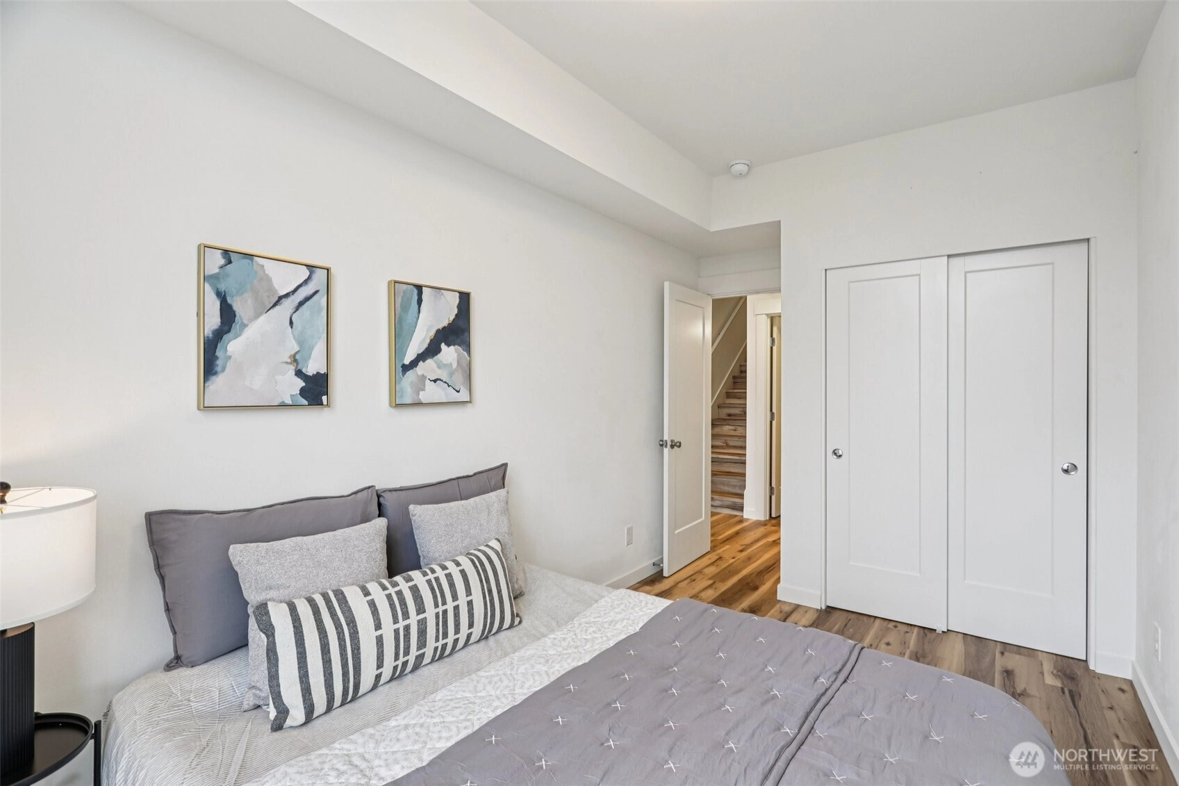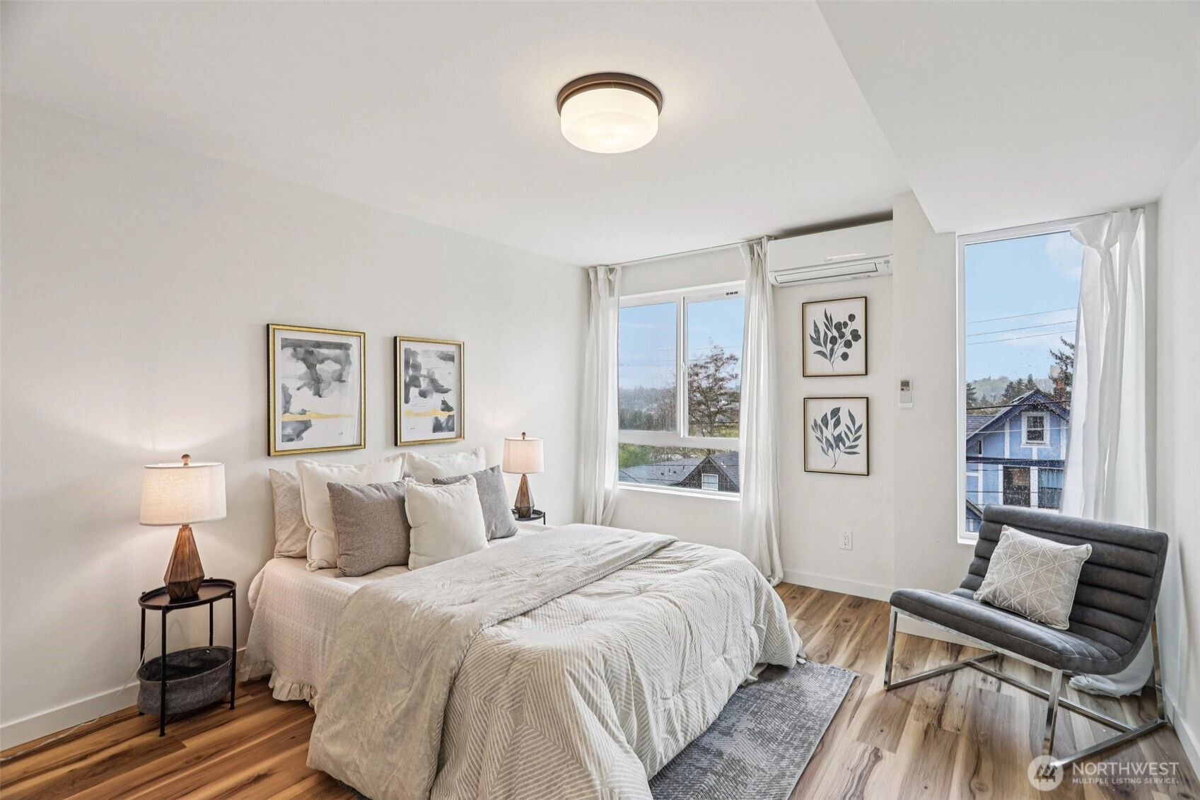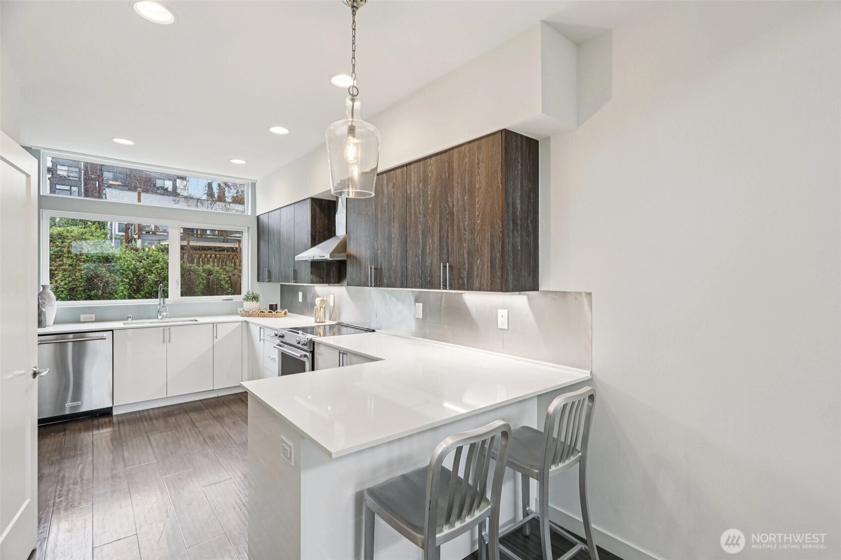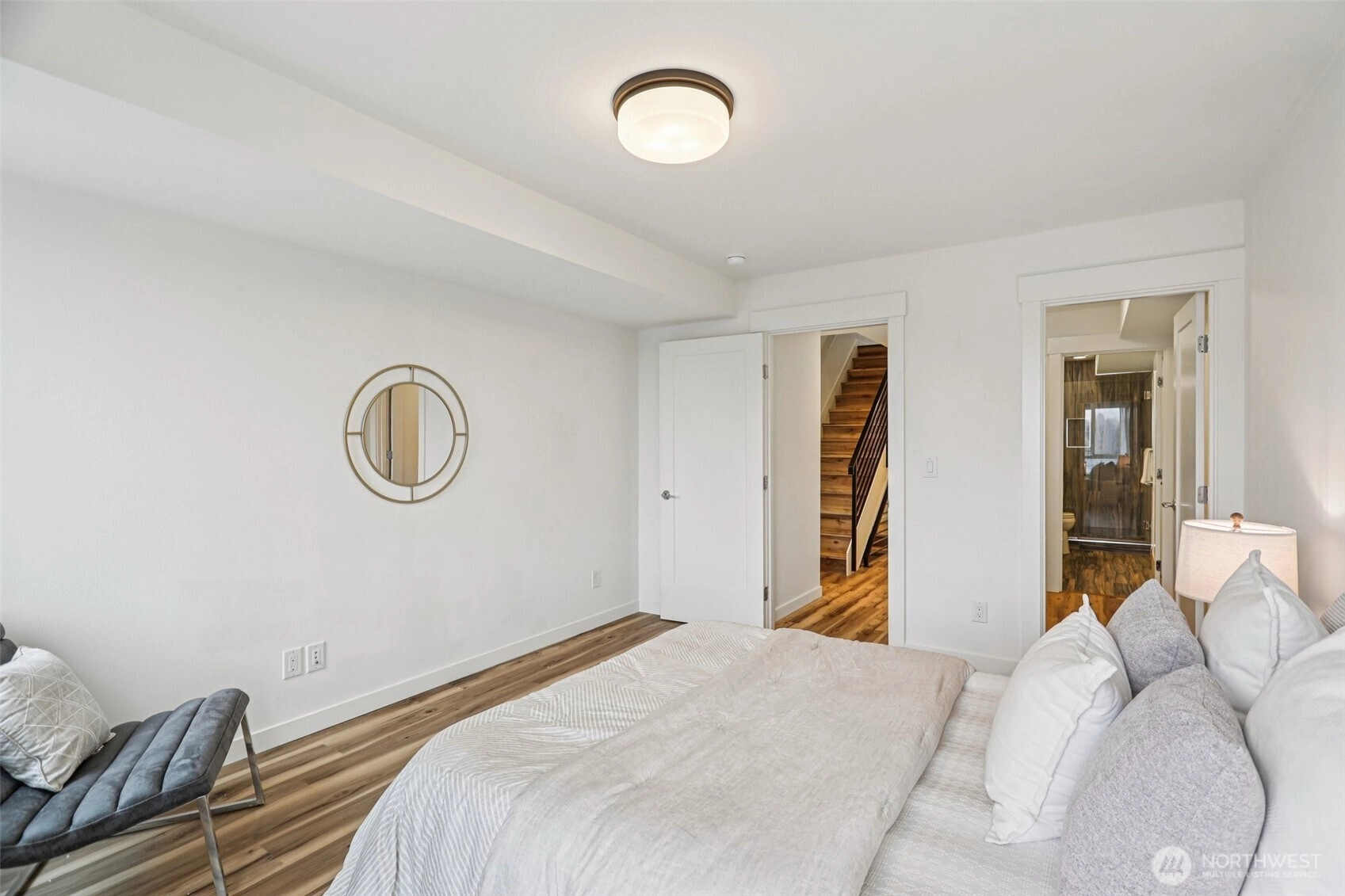 Beautiful modern townhouse with distinct design, functional layout, and real privacy. Built by Blackwood Builders in 2020, this 4-bedroom, 3.5-bath home offers 1,767 sq ft of well-separated living across multiple levels, creating flexibility for guests, work-from-home, or shared living. The main living level is elevated and intentionally set apart, featuring high ceilings with clerestory windows, large windows, and great natural light without feeling exposed to neighboring homes. The open-concept kitchen is outfitted with quartz countertops, stainless appliances, custom cabinetry, and generous pantry. This layout delivers true bedroom separation, giving each level its own sense of space and privacy. Multiple outdoor areas—including a living-level deck and rooftop deck—offer usable outdoor space for relaxing or entertaining, with territorial, city, and mountain outlooks. Additional features include hardwood flooring, new additional hardwood upgrades, mini-split heating and cooling, and designated off-street parking. The home also has a quieter, more tucked-away feel within the community, creating a comfortable buffer from surrounding units. Located on the Mt. Baker Ridge, you’re less than a mile to Lake Washington and Coleman Park, with quick access to historic Leschi, I-90, Downtown Seattle, Bellevue, and the Eastside. Close access to the new Judkins Light Rail Station and bus routes make commuting simple, while parks, cafes, and neighborhood amenities are all within reach.
