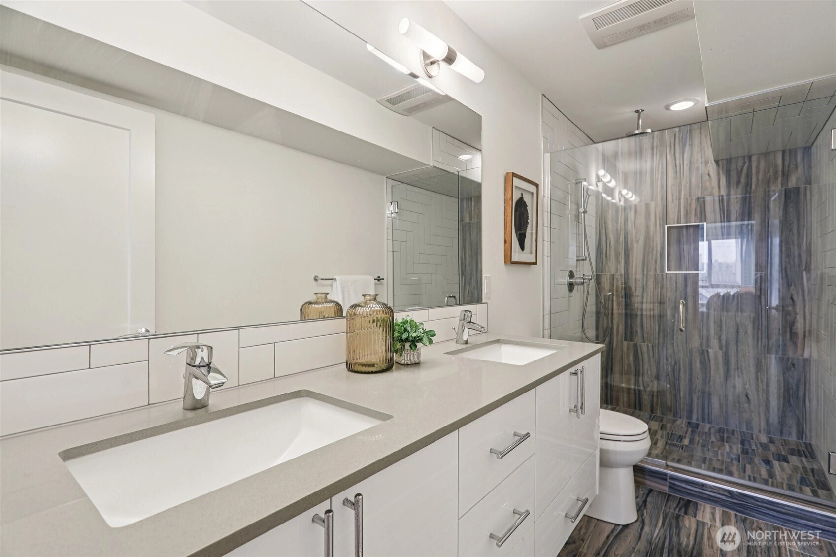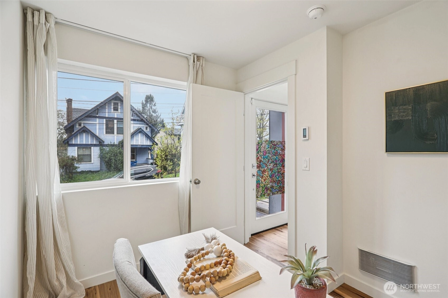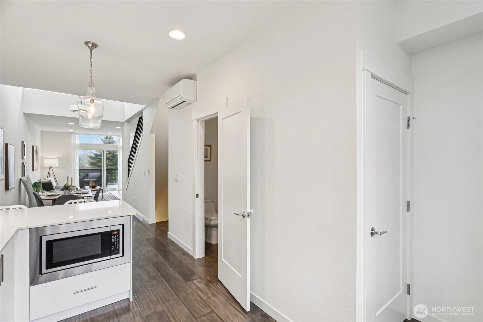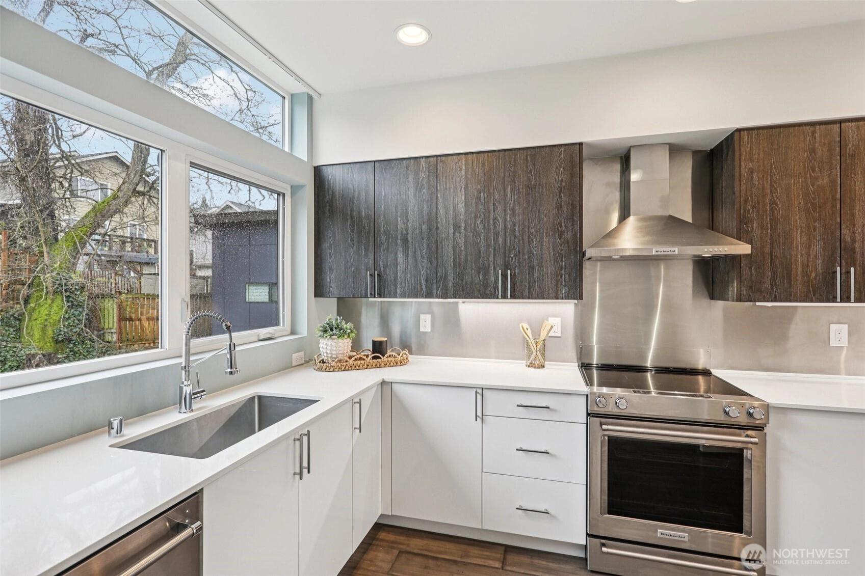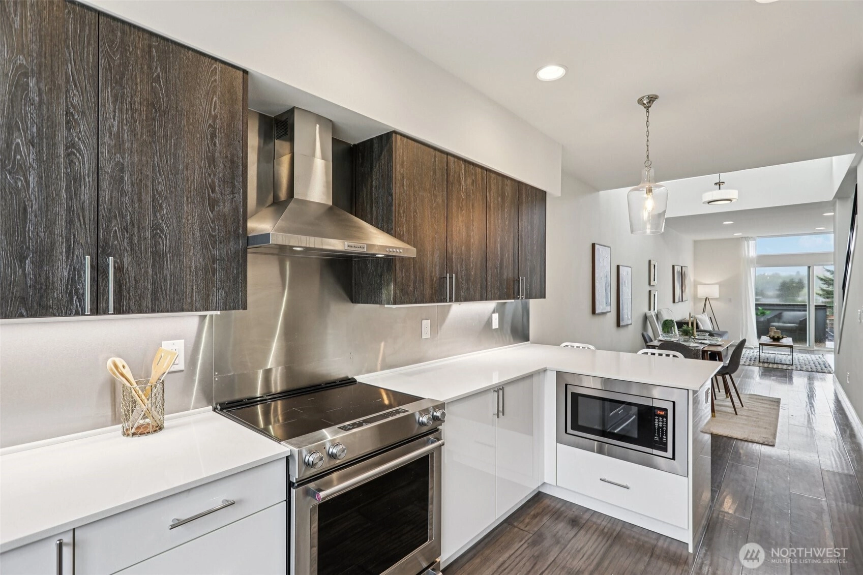 Beautiful modern townhouse with distinct design, functional layout, and real privacy. Built by Blackwood Builders in 2020, this 4-bedroom, 3.5-bath home offers 1,767 sq ft of well-separated living across multiple levels, creating flexibility for guests, work-from-home, or shared living. The main living level is elevated and intentionally set apart, featuring high ceilings with clerestory windows, large windows, and great natural light without feeling exposed to neighboring homes. The open-concept kitchen is outfitted with quartz countertops, stainless appliances, custom cabinetry, and generous pantry. This layout delivers true bedroom separation, giving each level its own sense of space and privacy. Multiple outdoor areas—including a living-level deck and rooftop deck—offer usable outdoor space for relaxing or entertaining, with territorial, city, and mountain outlooks. Additional features include hardwood flooring, new additional hardwood upgrades, mini-split heating and cooling, and designated off-street parking. The home also has a quieter, more tucked-away feel within the community, creating a comfortable buffer from surrounding units. Located on the Mt. Baker Ridge, you’re less than a mile to Lake Washington and Coleman Park, with quick access to historic Leschi, I-90, Downtown Seattle, Bellevue, and the Eastside. Close access to the new Judkins Light Rail Station and bus routes make commuting simple, while parks, cafes, and neighborhood amenities are all within reach.
