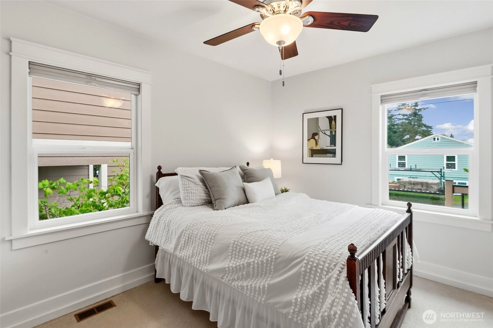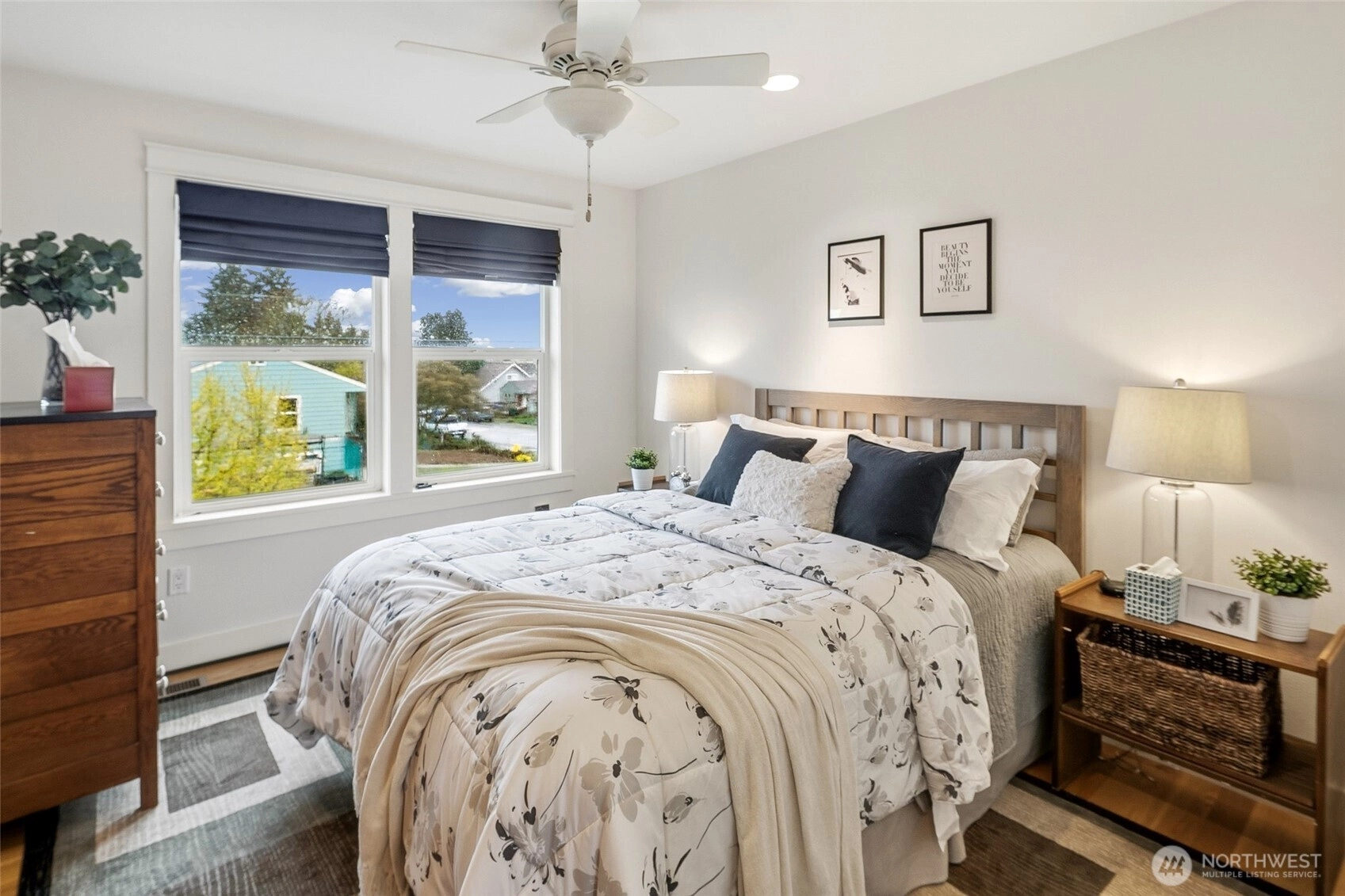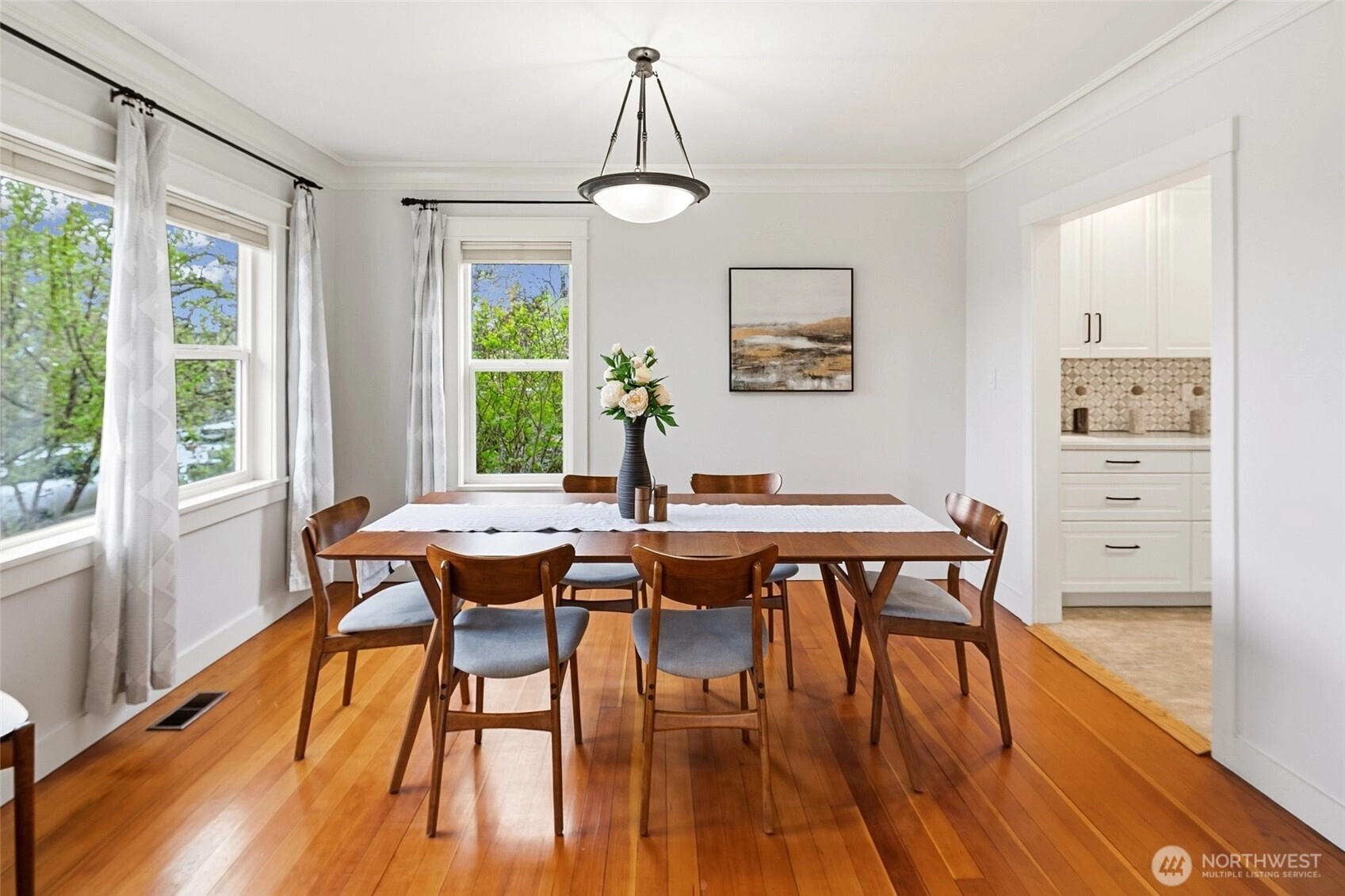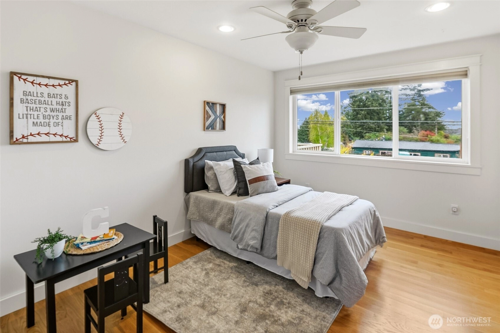 Exquisitely reimagined Craftsman in the heart of Greenwood, blending timeless character with elevated modern updates. Originally built in 1920 and extensively rebuilt and expanded in 2009, this south-facing residence is filled with natural light and showcases rich hardwood floors, refined millwork, and thoughtfully designed living spaces. The beautifully updated kitchen features stainless steel appliances, a gas range, abundant cabinetry, and a charming breakfast nook. Elegant living and dining areas offer seamless flow for everyday living and entertaining, while a main-level guest bedroom or office with an adjacent bath provides exceptional flexibility. Upstairs, three spacious bedrooms include a serene primary suite with a walk-in closet and spa-inspired ensuite. Step onto the private, sun-drenched deck to enjoy territorial and mountain views. The lower level offers a generous rec room and additional flex space ideal for a media lounge, gym, or home office. Situated on a beautifully landscaped corner lot with an inviting patio, two-car attached garage, and ample off-street parking. Ideally located near parks, top-rated schools, shops, dining, and convenient access to Highway 99, I-5, and downtown Seattle.