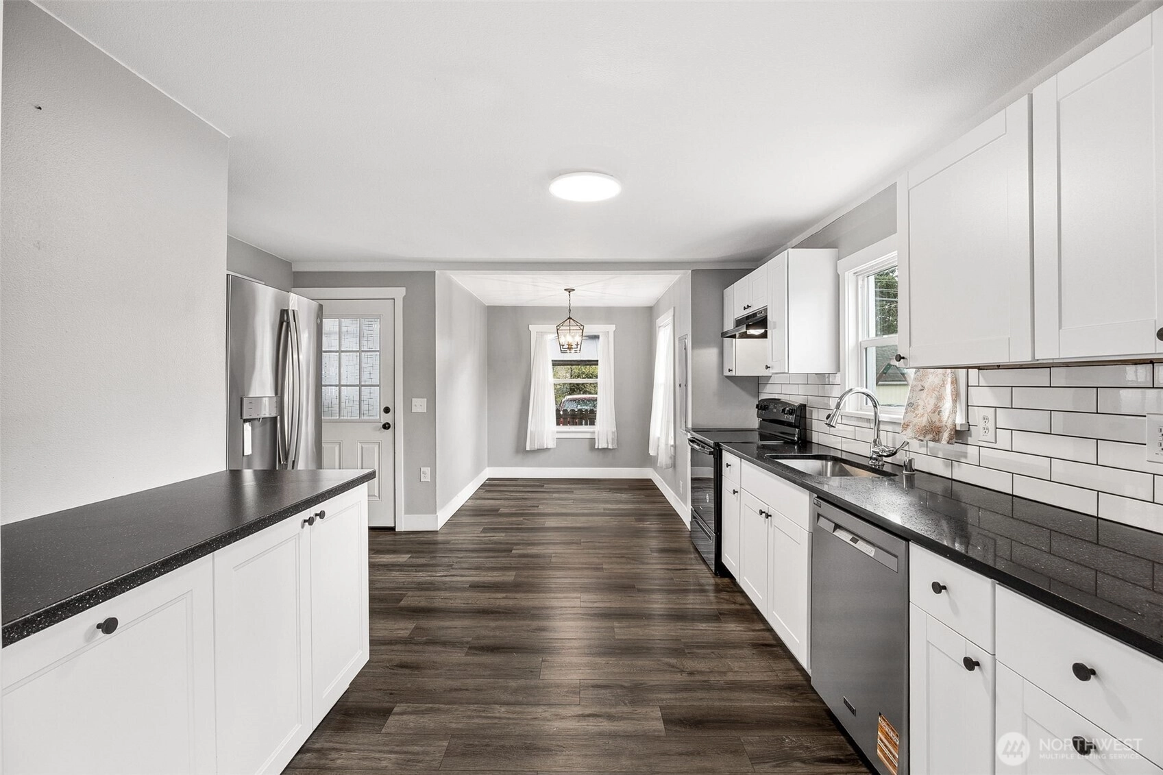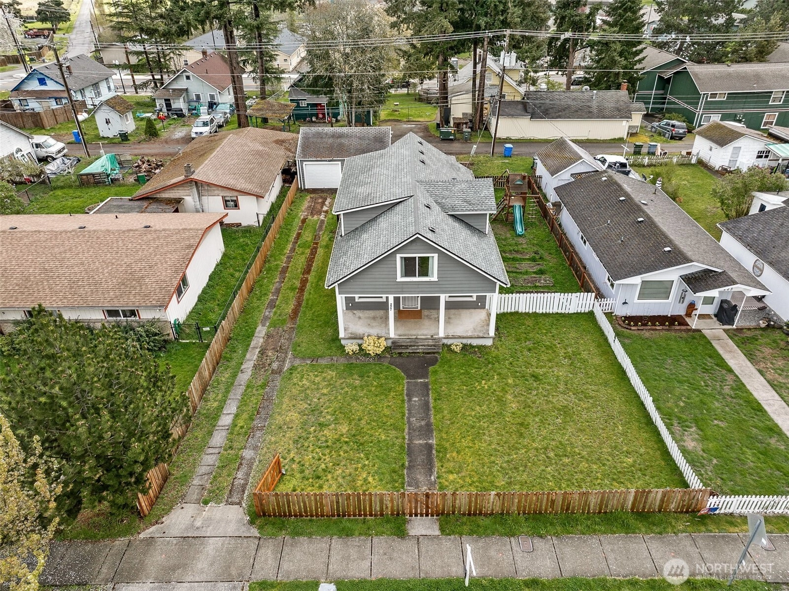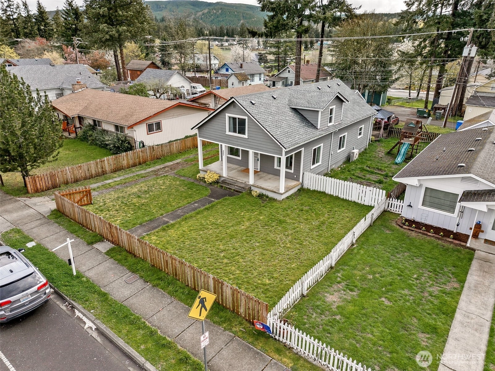 Beautifully updated 1930s Eatonville home ready for its new owner! Fenced driveway and yard featuring playsets, raised garden beds, and entertainment pergola with deck. Extra parking off quiet alley! Cheery covered front porch leads to giant living room space with multiple windows and lots of natural light. LVP floors and slate tile throughout with fresh paint, vintage built ins for all your storage needs. Bonus 5th bedroom on the main floor next to full bathroom. Cozy eating nook off back of updated kitchen with new appliances from 2022. Upstairs you'll find 4 additional bedrooms, walk in closet and storage rooms, built in cabinets and shelving, and GIANT 3/4 bath. New roof 2022. Walking distance to all local schools, restaurants, and shopping. So much packed into this charming 1852 sq ft space! Come out to Eatonville and take a look today!