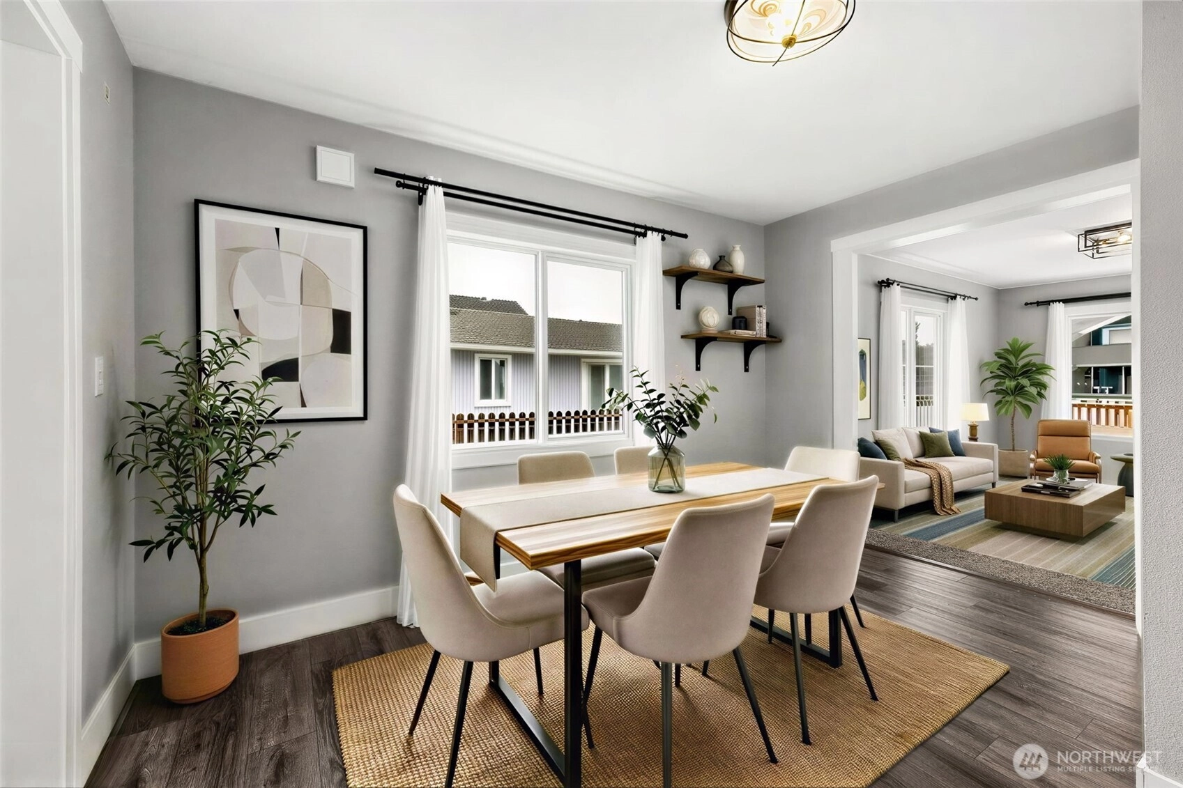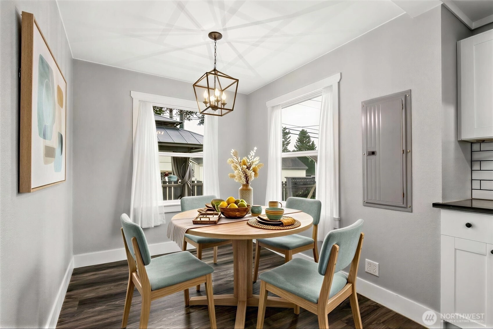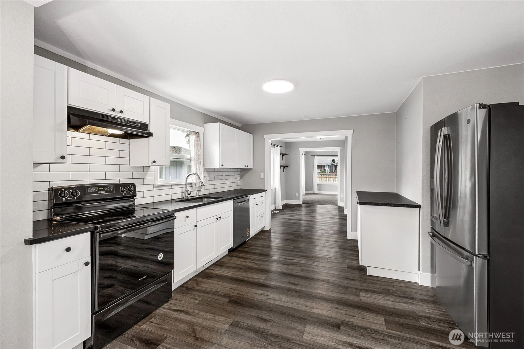 Beautifully updated 1930s Eatonville home ready for its new owner! Fenced driveway and yard featuring playsets, raised garden beds, and entertainment pergola with deck. Extra parking off quiet alley! Cheery covered front porch leads to giant living room space with multiple windows and lots of natural light. LVP floors and slate tile throughout with fresh paint, vintage built ins for all your storage needs. Bonus 5th bedroom on the main floor next to full bathroom. Cozy eating nook off back of updated kitchen with new appliances from 2022. Upstairs you'll find 4 additional bedrooms, walk in closet and storage rooms, built in cabinets and shelving, and GIANT 3/4 bath. New roof 2022. Walking distance to all local schools, restaurants, and shopping. So much packed into this charming 1852 sq ft space! Come out to Eatonville and take a look today!
