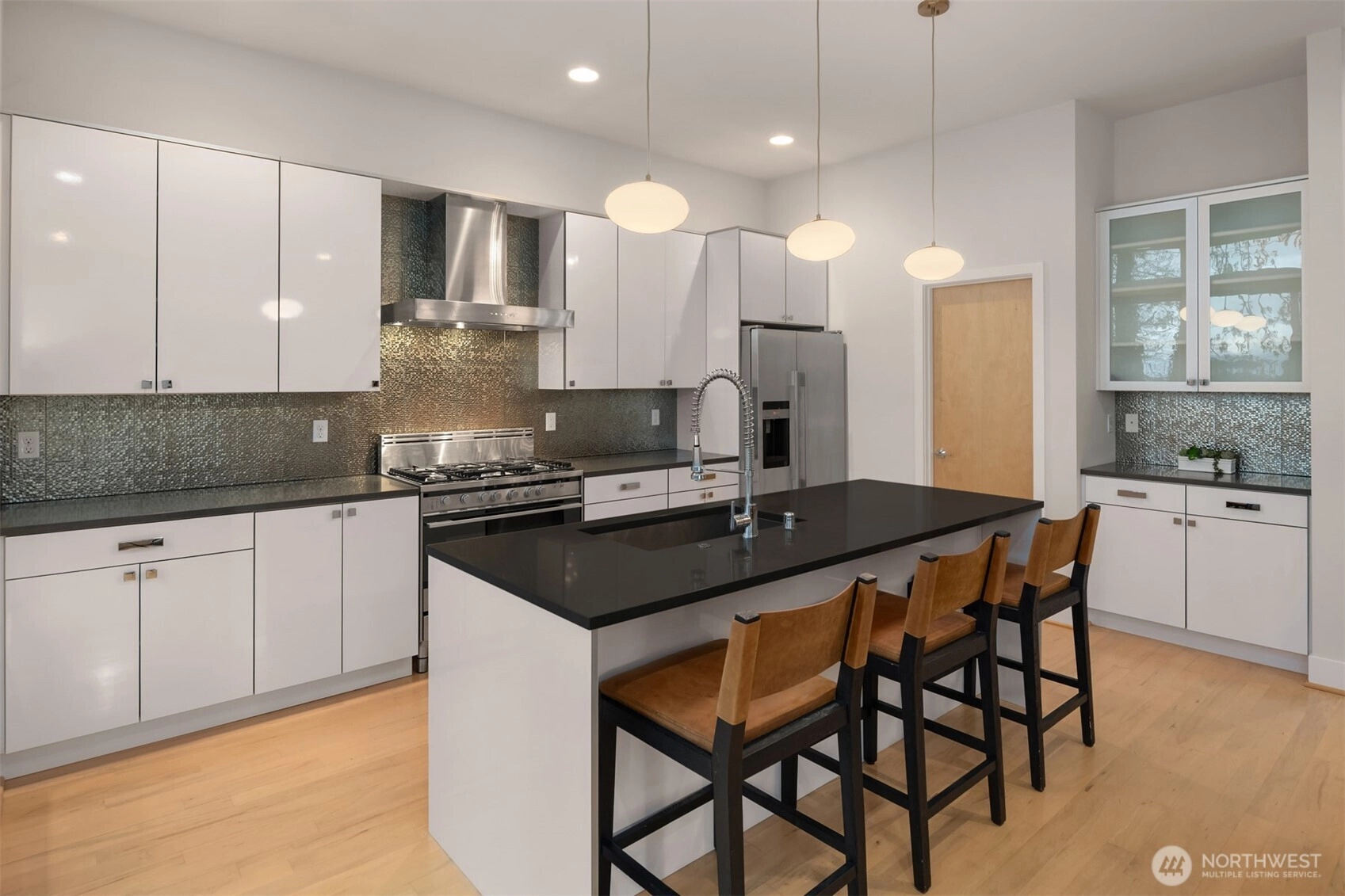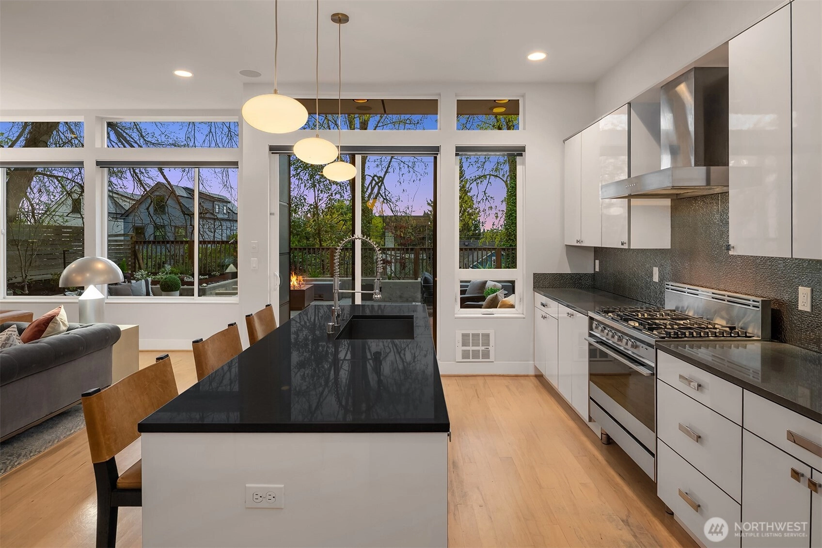 Every space is designed with intention in this striking, modern Arboretum home. Walls of windows bathe the interior with natural light and soaring 12-foot vaulted ceilings add drama. Open-concept layout highlighted by stylish maple hardwoods and inviting fireplace. Refined design element provided by custom metal/wood staircase. Chef’s kitchen features premier stainless appliances from Fisher + Paykel/Bosch and a large walk-in pantry. Oversized primary bedroom suite with spa-inspired bath, walk-in closet, and private balcony. Views of Cascades from upstairs bedrooms. Expand entertainment options with gorgeous outdoor living space. Prime location sits steps from Washington Park/Arboretum. Home is just minutes to eclectic dining and shops of Madison Valley, Capitol Hill, Pike/Pine corridor, and Madison Park. Seamless access to downtown, Eastside cities, I-5 and public transit. This is urban living at an elevated level.