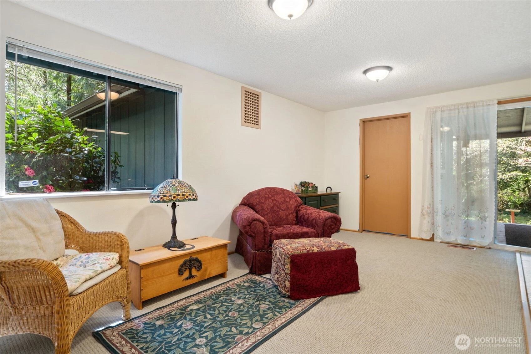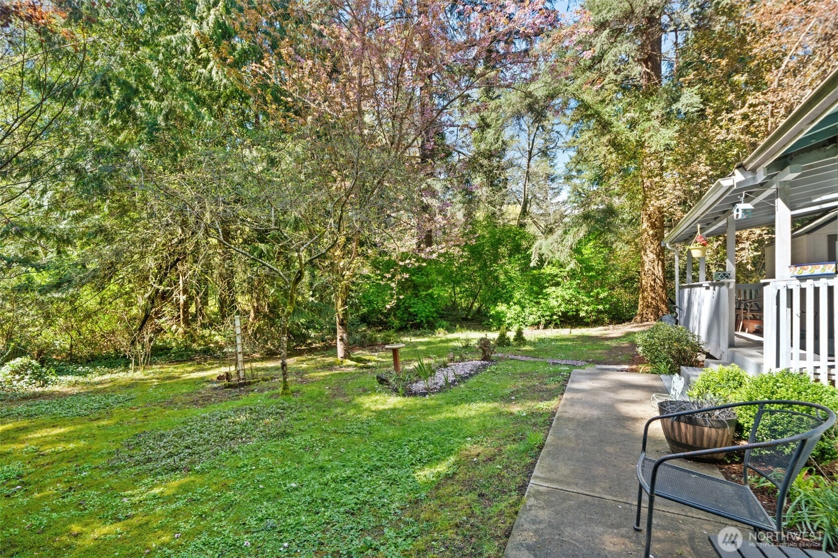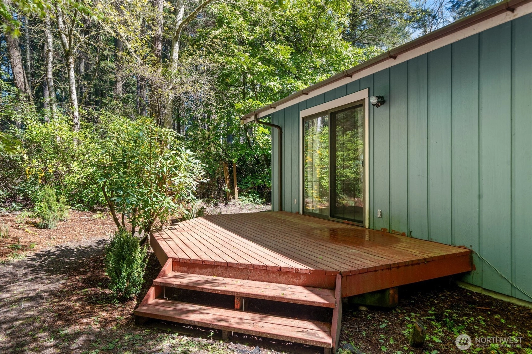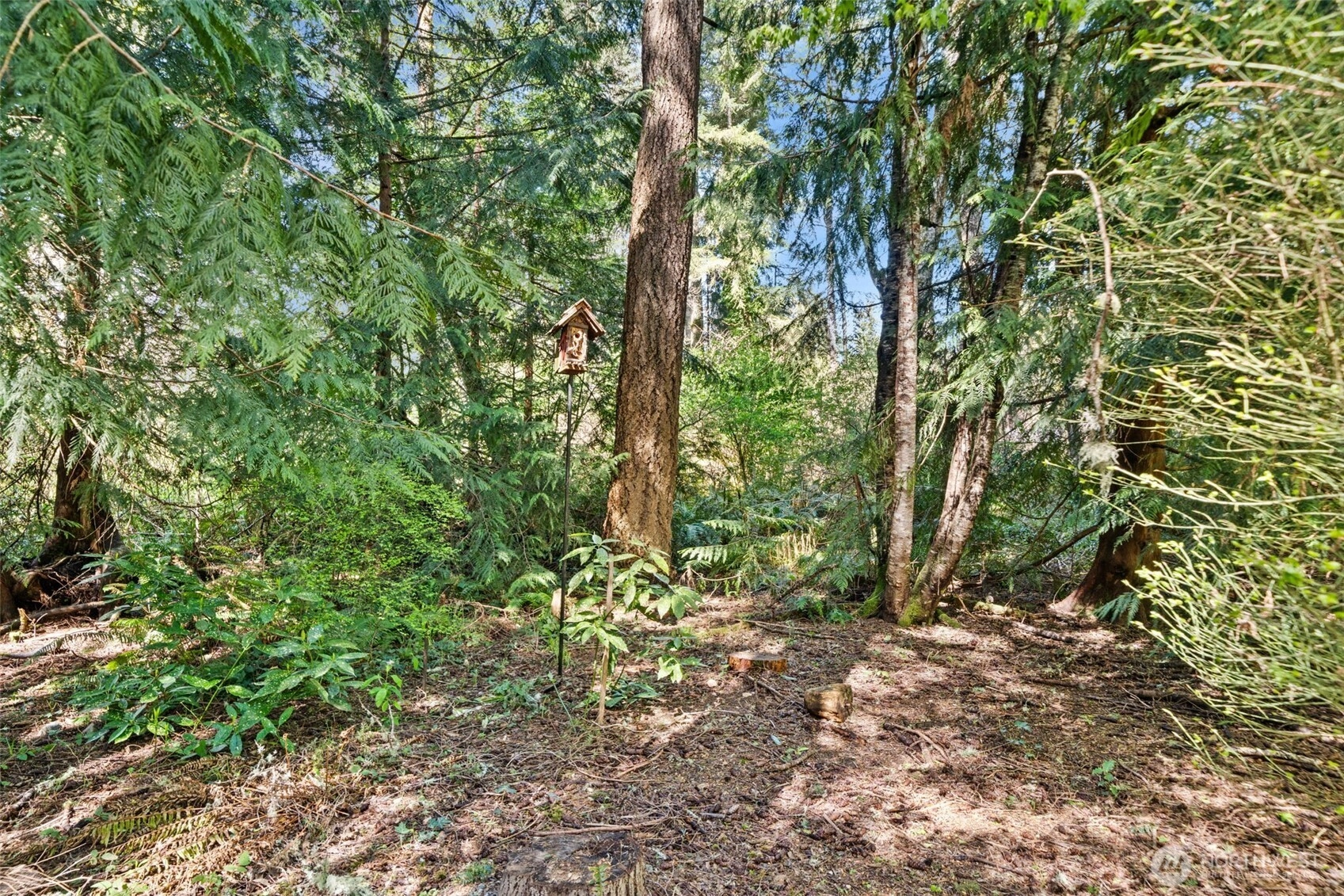 Secluded woodlands setting just minutes to the Agate Pass bridge/Hwy 305 to Bainbridge Is Ferry. Well maintained one story designed home on 2.29 acres. Primary bedroom with ensuite & 2 bedrooms, full bath in the hallway. You will love the oversized living room with cozy propane fireplace and large mantle above, gaze through the wall of windows to the woodland gardens and forest, you probably won't want to leave. French doors in the entry lead to a foyer to the circular floor plan. Familyroom, breakfast bar island leads to a delightful kitchen, pass through framed window leads to formal dining room. Utility room just off the family room. Oversized deck off the family room, covered and has storage shed for gardening tools. 2 car garage attached and extra side parking in the front, perfectly accommodates parking for guests.