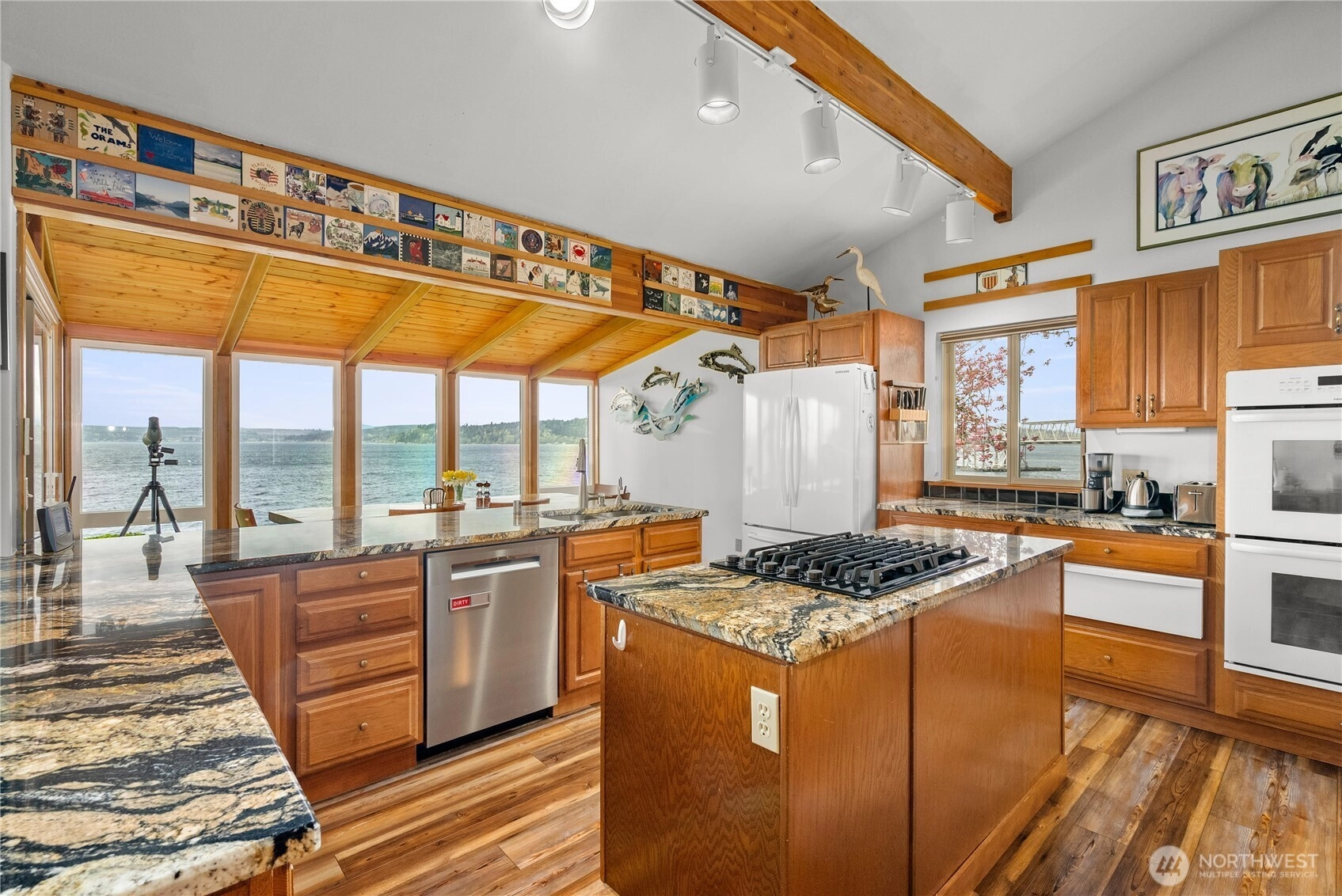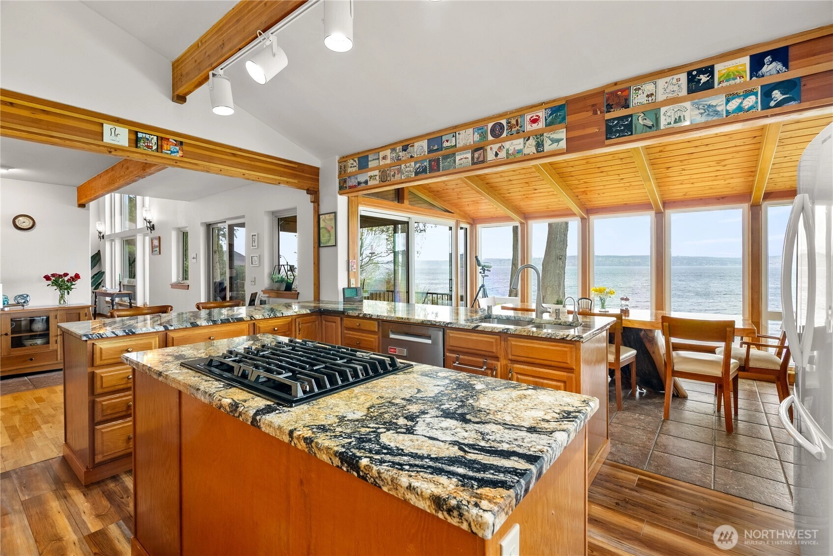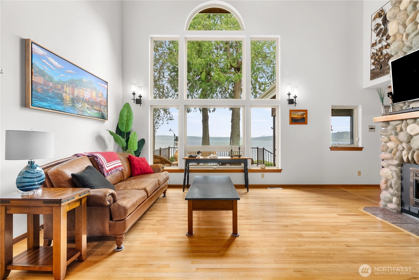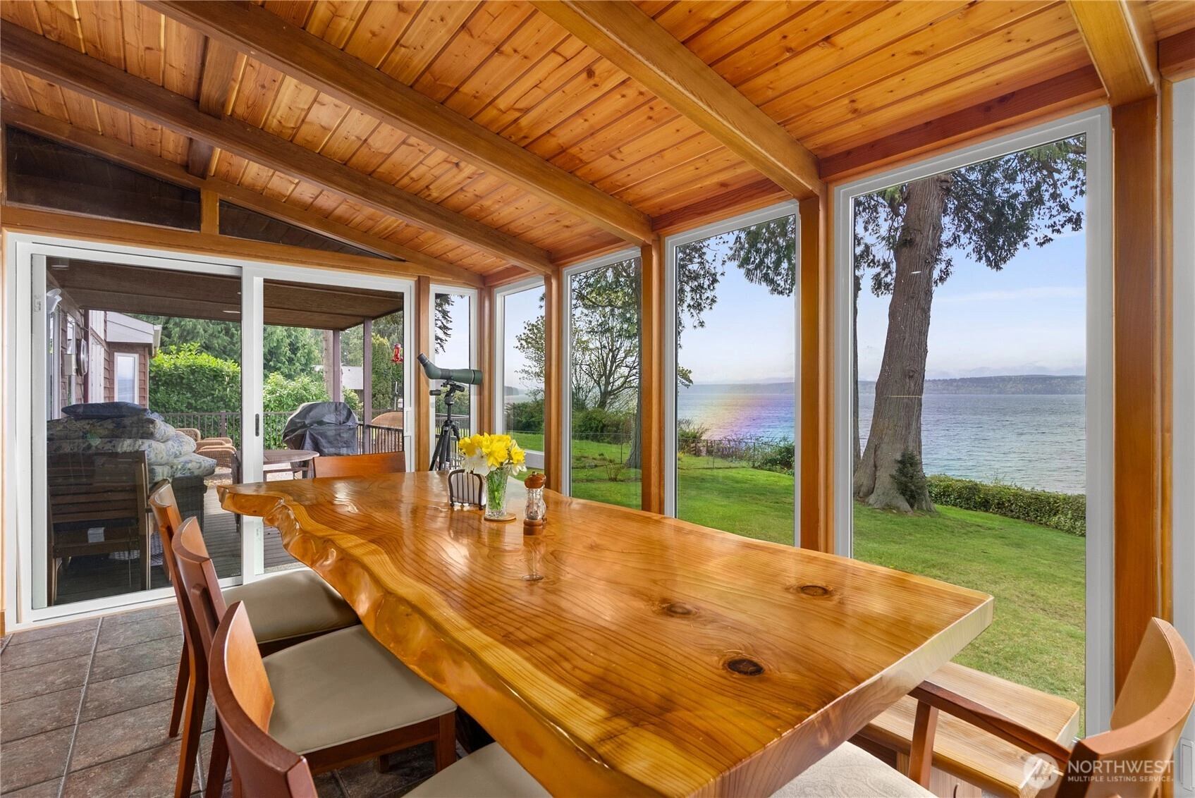 Absolutely beautiful West facing waterfront home on the majestic shores of Hood Canal with panoramic waterfront and Olympic Mountain views. The main floor welcomes you with floor to ceiling West facing windows, gleaming hardwoods, open floor plan that flows to the living room, stone surround fireplace, spacious kitchen, bright sunroom and primary suite with remodeled bath, all with fantastic views. Features include new hardwood floors, granite countertops, remodeled primary bath, large Trex deck, EV charging station and whole house generator. Two additional bedrooms upstairs with a 3/4 bath, beautiful view deck and ample storage space complete this wonderful home. Outside you will find an expansive yard with exceptional views which leads you to the waters edge via stairs to the beach for miles of exploring the tidelands, watching for whales, otters, eagles, seals and/or watching the sunset over the majestic Olympic Mountain Range.