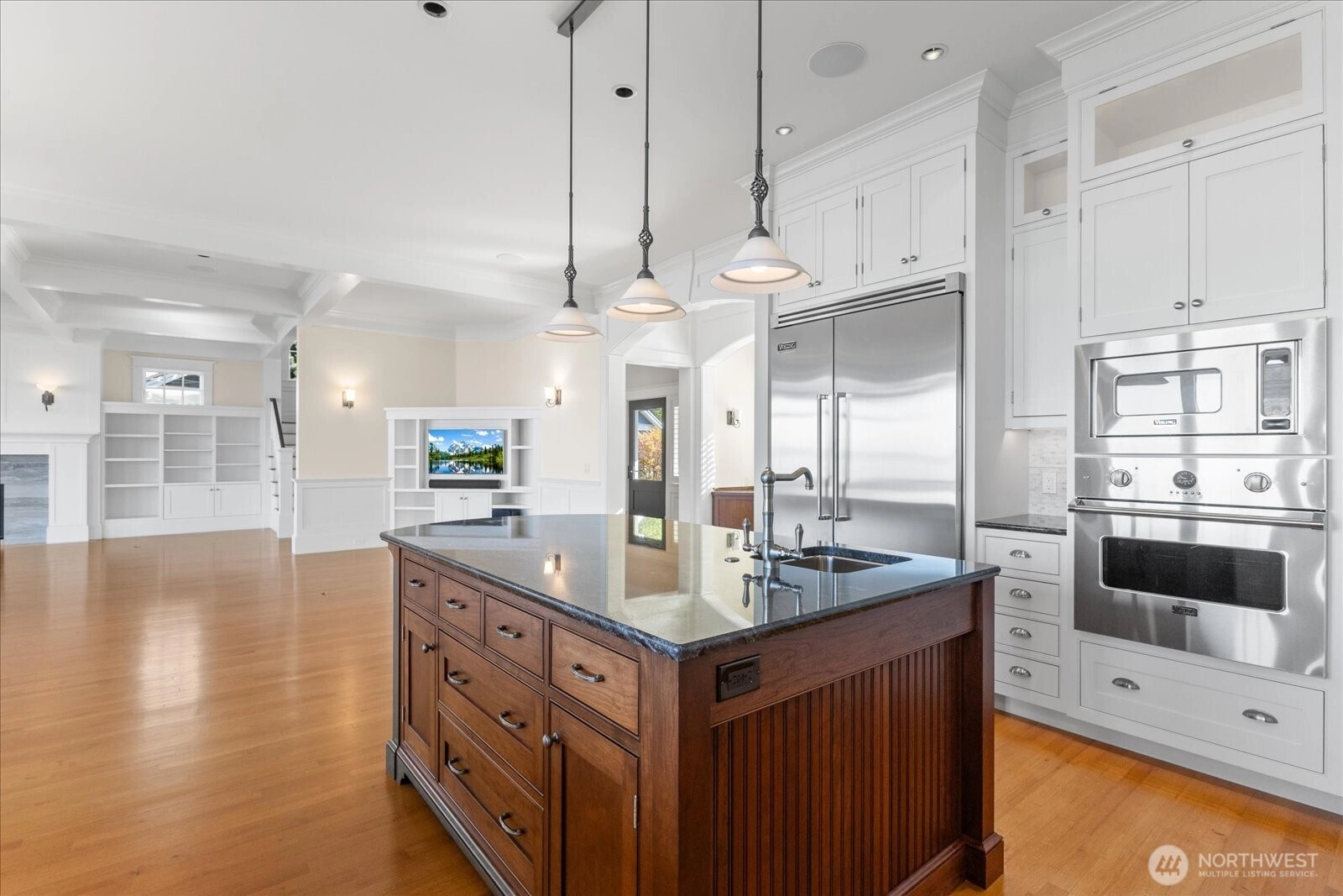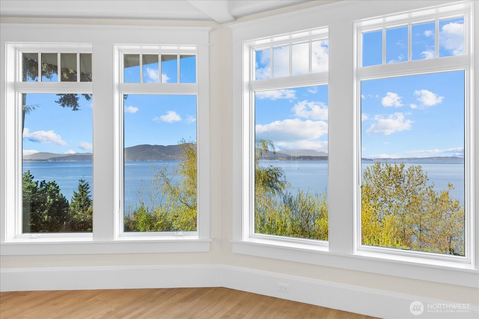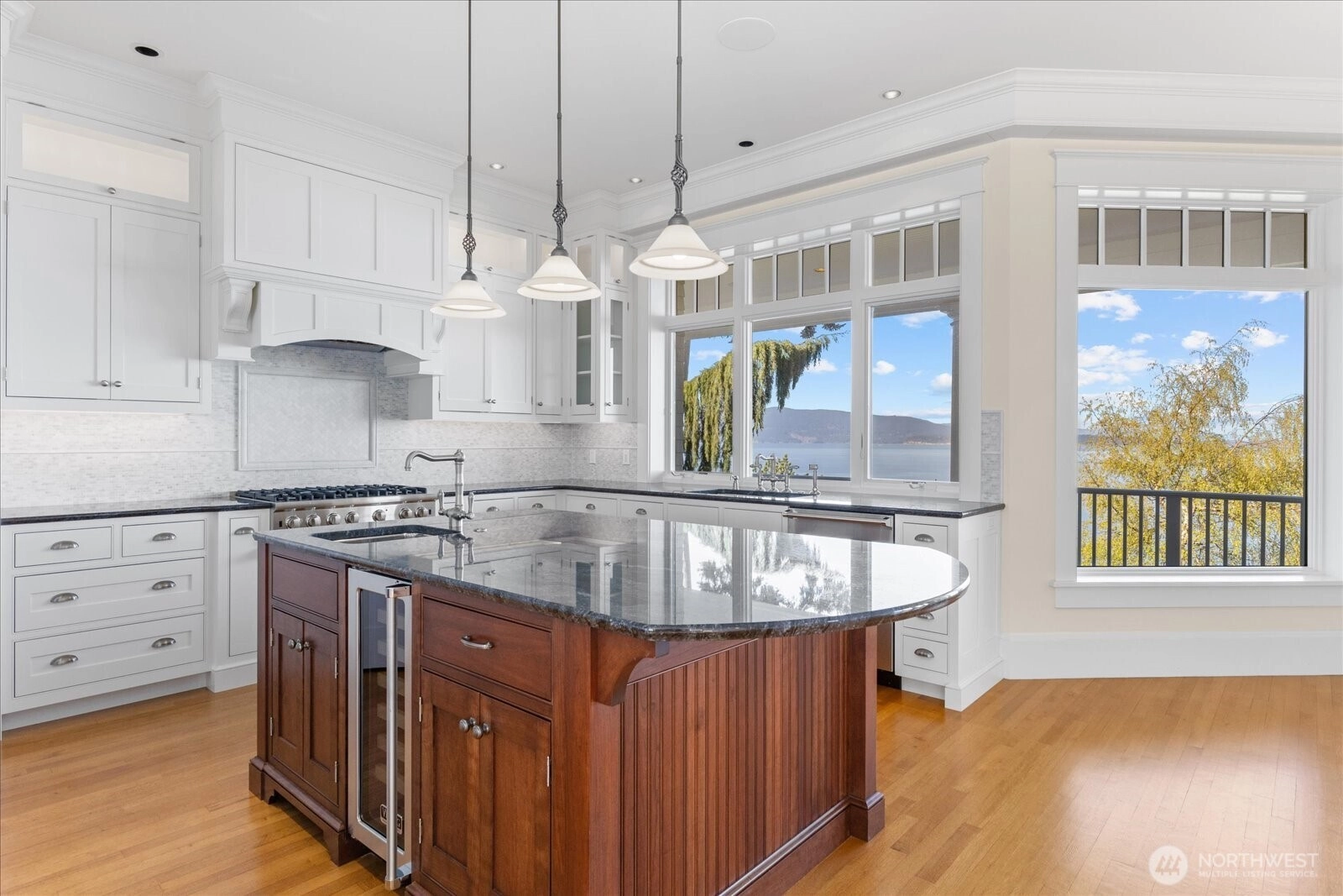 Experience the best of Pacific Northwest living in this stunning home in Bellingham. Perfectly positioned to capture breathtaking, ever-changing views of Bellingham Bay, the San Juan Islands, and both Olympic and Canadian mountain ranges, this home offers a rare blend of tranquility and convenience. Soak in the spectacular, sweeping water views while enjoying coffee on your private deck as eagles soar and boats pass by. Designed for both comfort and entertaining, this home features ample light-filled living spaces, expansive windows, and seamless indoor-outdoor flow. The open concept layout highlights views from nearly every room, thoughtful finishes create a warm, inviting atmosphere. Features include a custom wine cellar, gourmet chef's kitchen with slab granite counters generous island with built in wine cooler, and Viking appliances. Beautiful built-ins and ample storage lend both functional and aesthetic luxury. Thoughtful layout of four bedrooms and 4.5 baths, closet and storage space abound. Unparalleled finishes and design by a custom builder. Step outside to your own slice of paradise! Whether you are hosting guests or enjoying a quiet evening, this property offers a lifestyle that defines opulence with serenity. Located just minutes from downtown Bellingham, you'll enjoy easy access to charming shops, restaurants, and outdoor recreation, all while savoring the privacy of waterfront living. A rare opportunity to own a truly special piece of the Pacific Northwest.