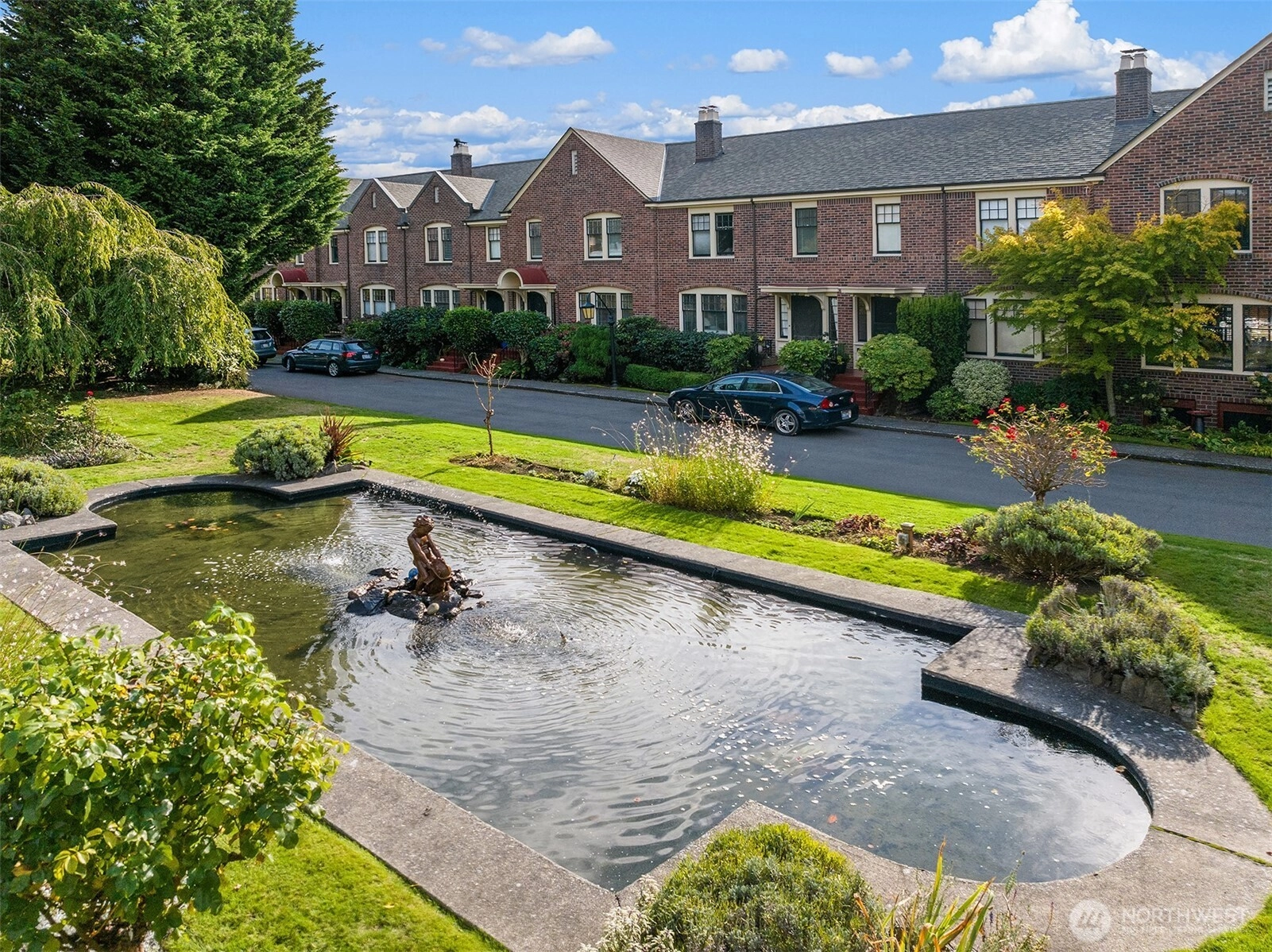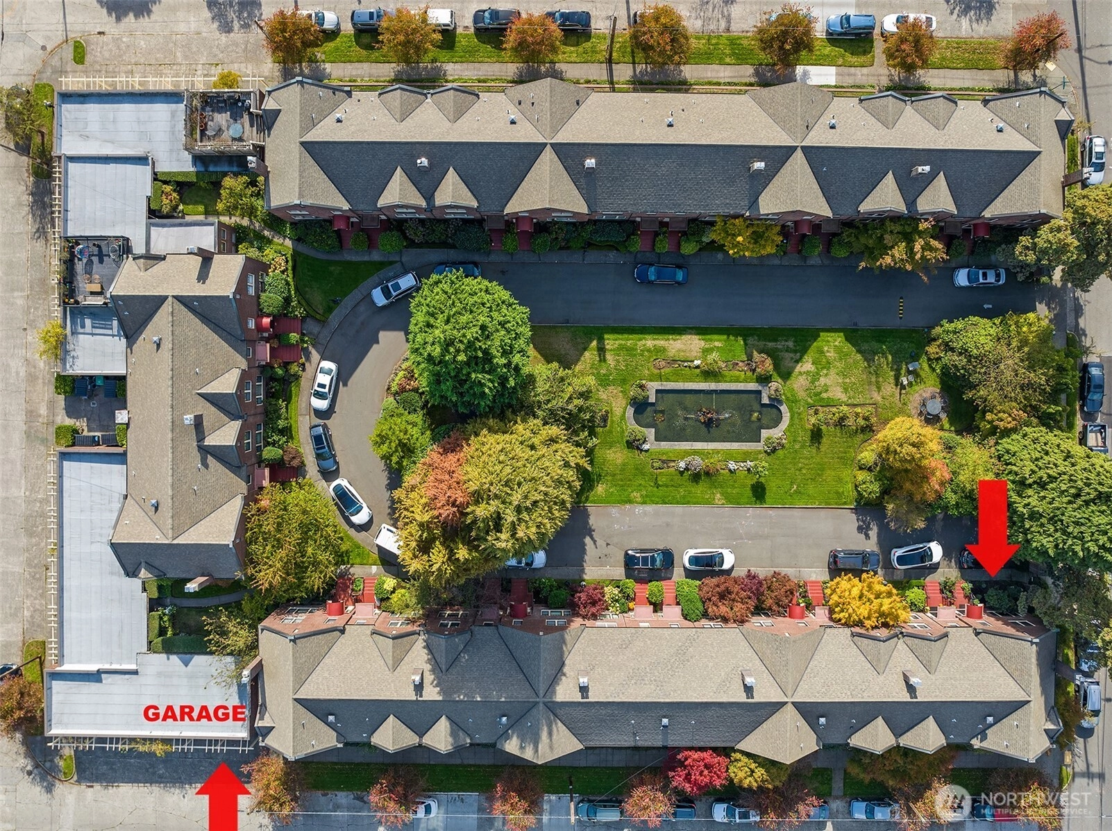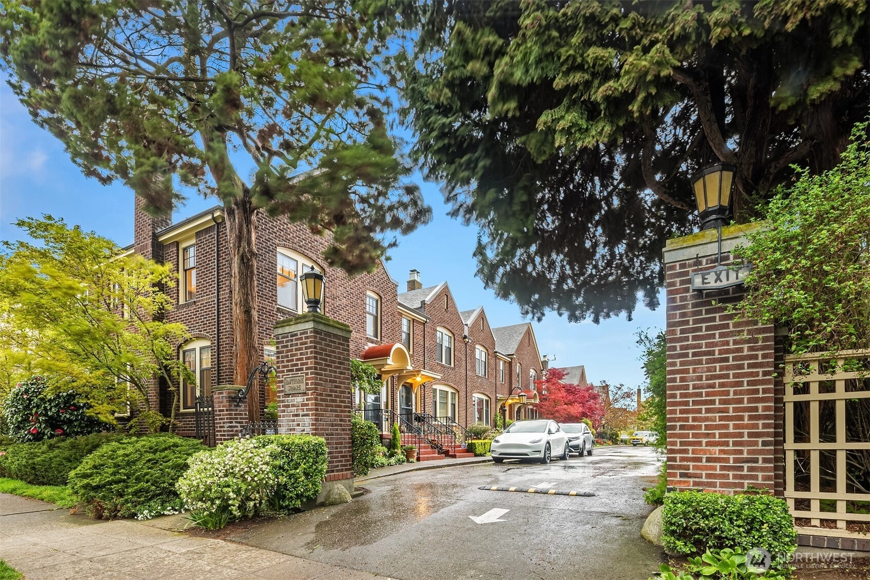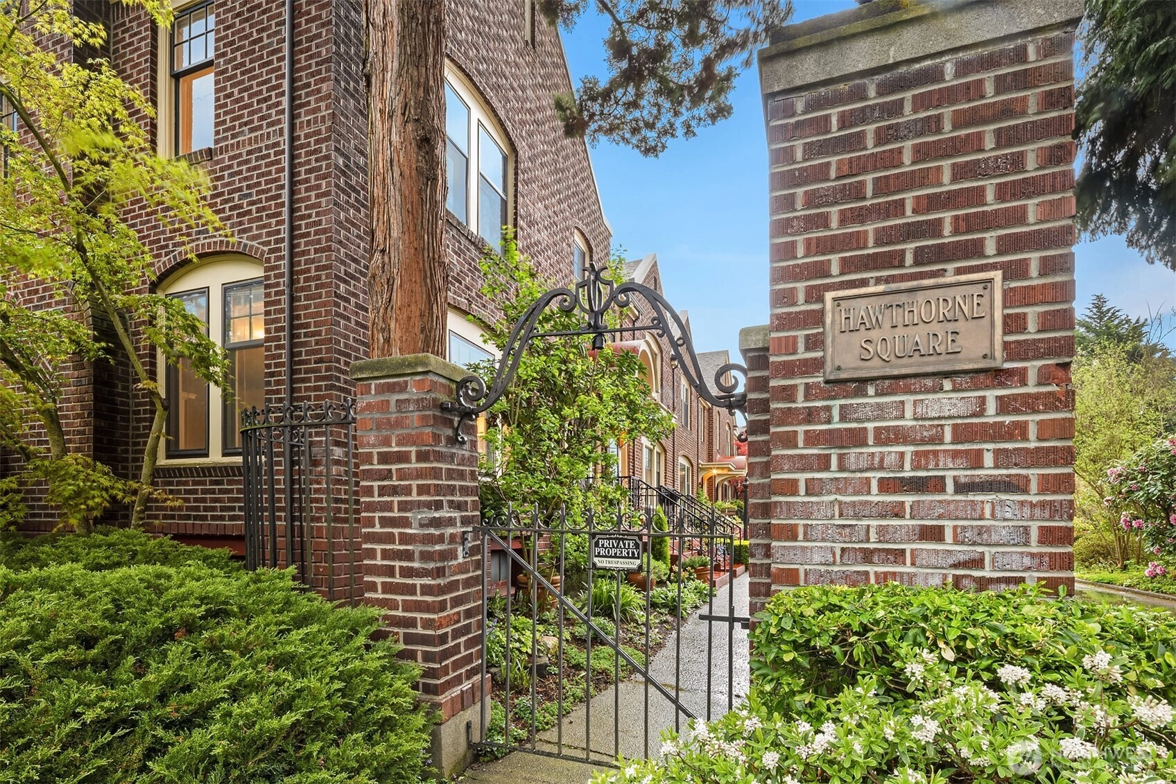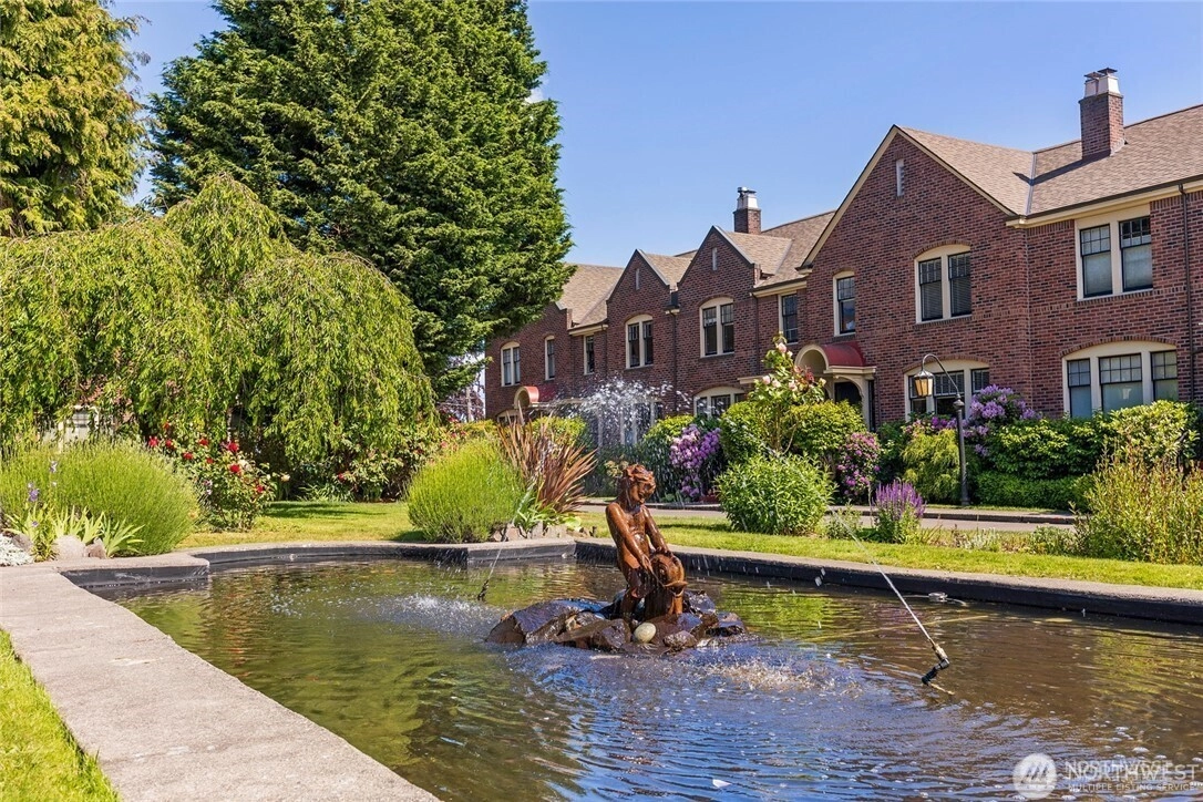 Located in the highly sought-after Hawthorne Square community. Built in the 1920’s, this Lawton & Moldenhour style design is home to 25 residences, designed on a full City block, around the beautiful interior, garden courtyard and drive. This end-unit, townhome style condominium features period details of hardwood & tile floors, divided light windows, crown molding and built-in cabinetry. This well-maintained home features a remodeled kitchen and baths, in-unit laundry, updated plumbing and good natural light. Dedicated garage and off-street parking. Well run, self-managed community. Walk Score of 77 – close to the upper Fremont and Phinney Ridge business districts, Wallingford, Woodland Park Zoo, Lower Woodland and easy transit and highway access.