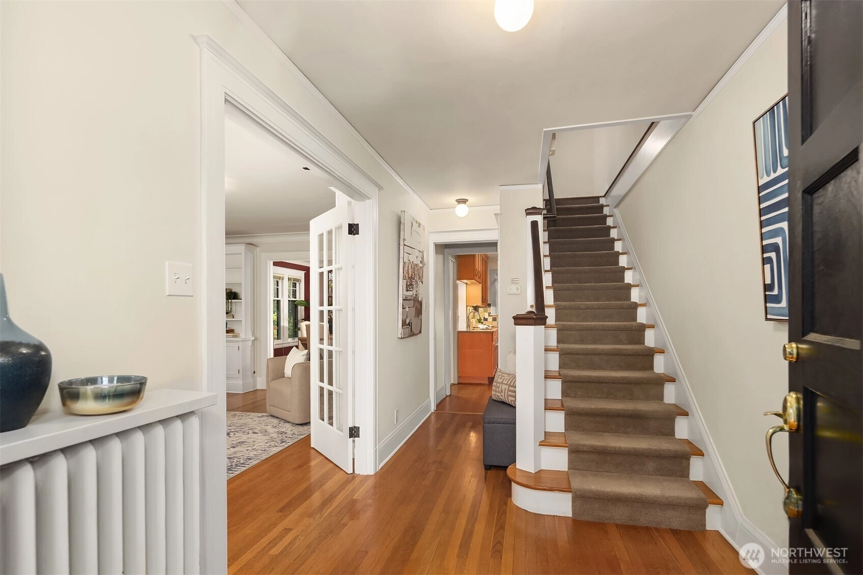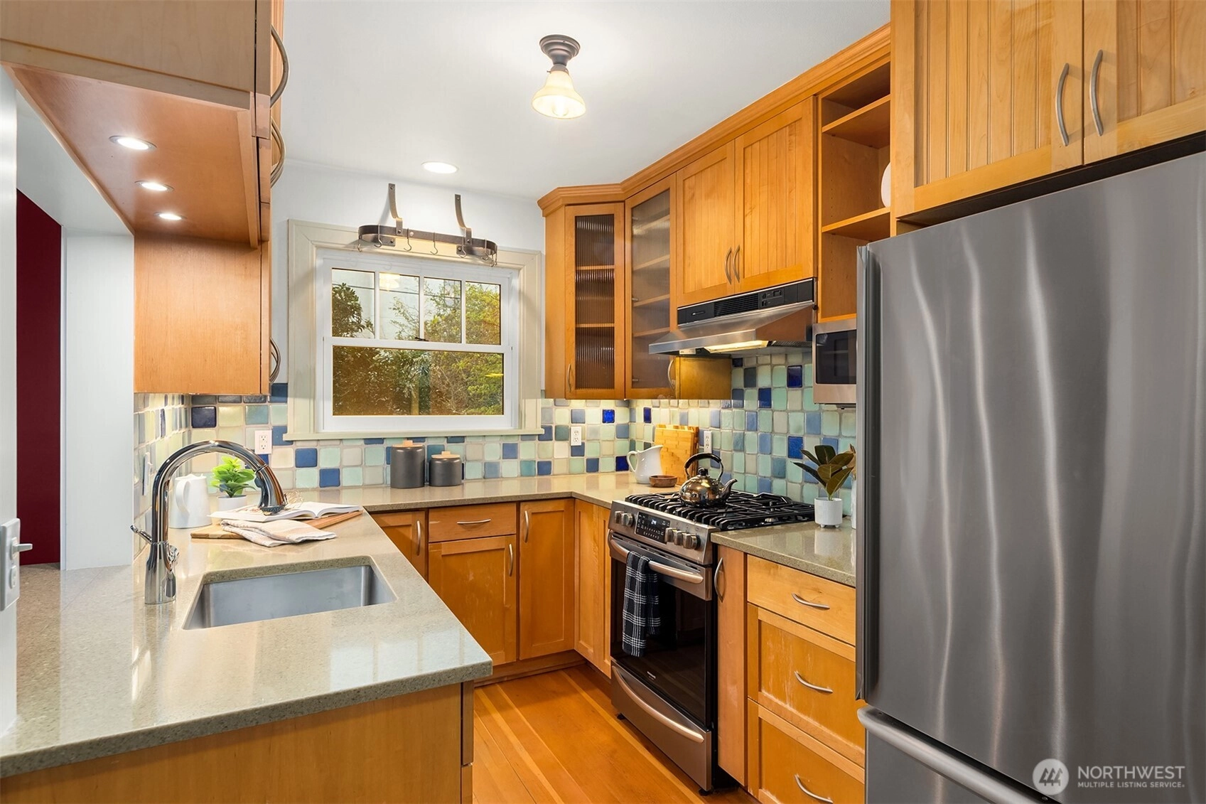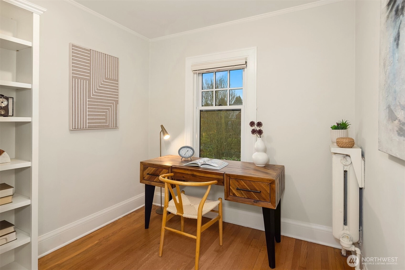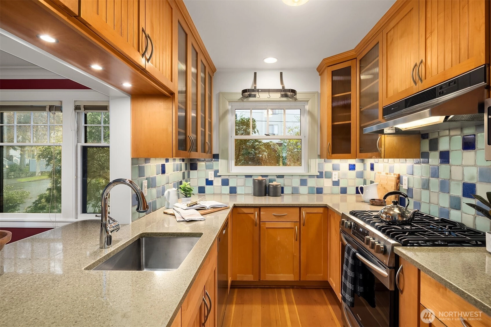 Located in the highly sought-after Hawthorne Square community. Built in the 1920’s, this Lawton & Moldenhour style design is home to 25 residences, designed on a full City block, around the beautiful interior, garden courtyard and drive. This end-unit, townhome style condominium features period details of hardwood & tile floors, divided light windows, crown molding and built-in cabinetry. This well-maintained home features a remodeled kitchen and baths, in-unit laundry, updated plumbing and good natural light. Dedicated garage and off-street parking. Well run, self-managed community. Walk Score of 77 – close to the upper Fremont and Phinney Ridge business districts, Wallingford, Woodland Park Zoo, Lower Woodland and easy transit and highway access.