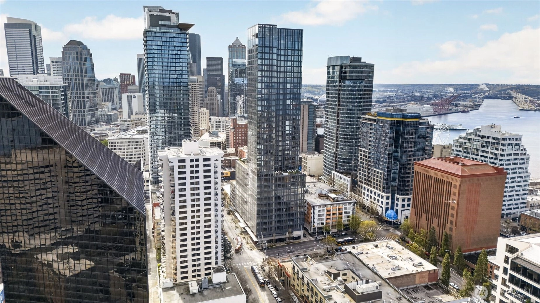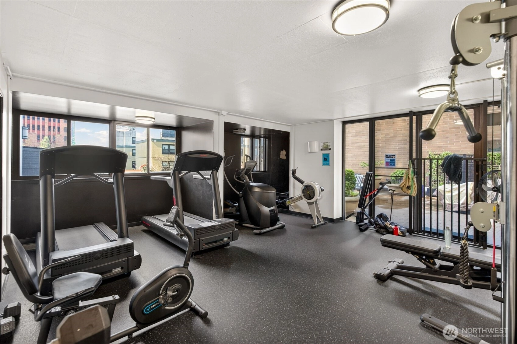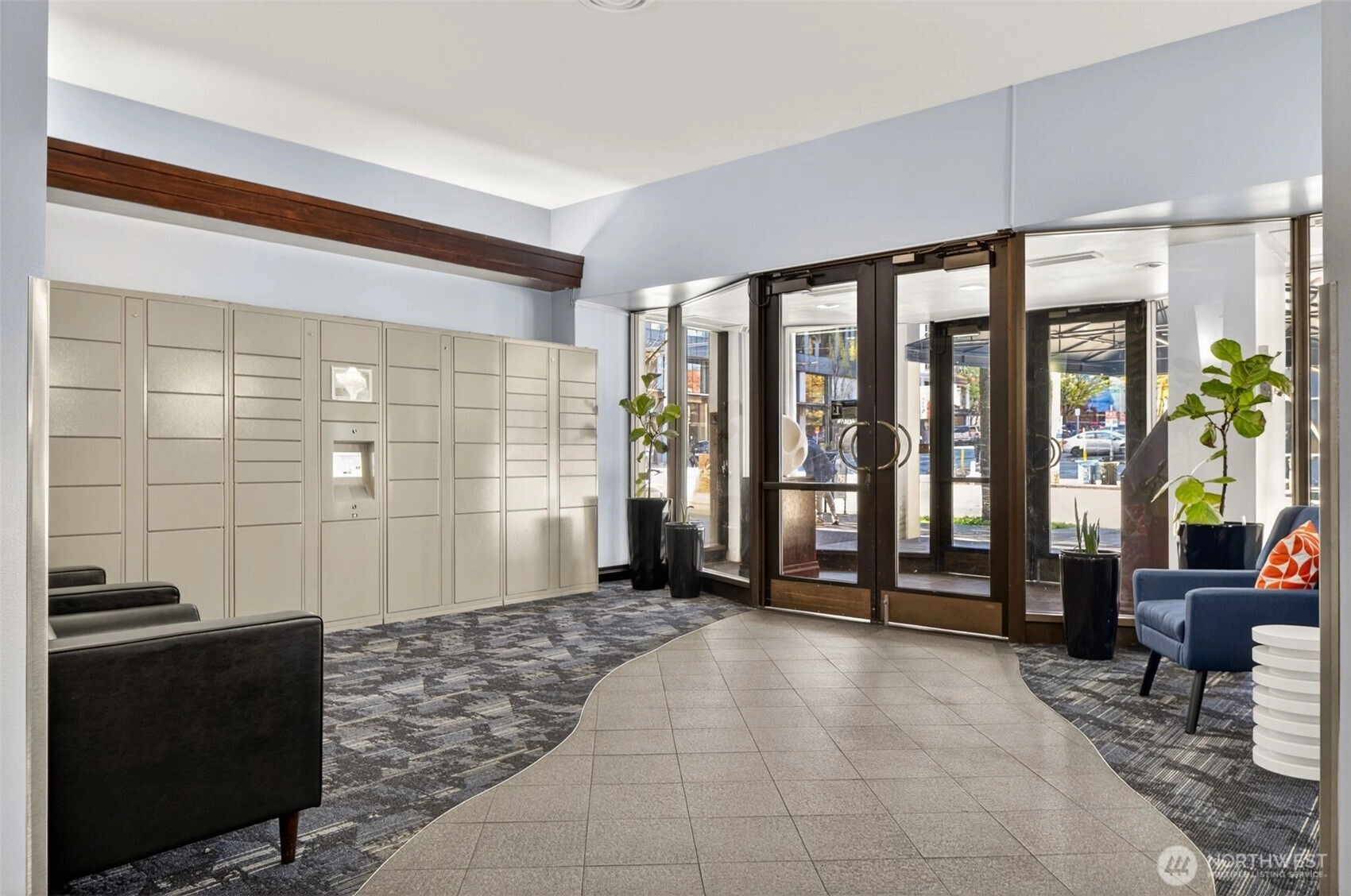 Welcome home to a rare retreat in the heart of Belltown! This thoughtfully updated 2 bed, 2 bath, 1300 sq ft condo at the Royal Crest lives unlike anything else in the building, anchored by a private 20ft x 80 ft patio that opens to a quiet, protected courtyard, a layout that is perfect for summer entertaining. Inside you'll find fresh flooring, updated bathrooms, refreshed appliances, and generous storage with built-in organization systems throughout. In-unit washer and dryer, plus a dedicated 6'x6'x8' assigned storage unit for everything else. Ownership at Royal Crest is genuinely turnkey. HOA dues cover all utilities (electricity, heat, water, sewage, garbage), and the building boast healthy reserves and no pending special assessments. Building amenities include an outdoor pool, sauna, fitness center, community room, BBQ area, and on-site manager. Park with confidence in your deeded garage stall, complete with a free, unmetered 20 amp EV charging outlet. With a walk score of 99, a transit score of 100, you're in the middle of everything: a 5 min walk to the lightrail, bus lines at the corner, and Pike Place Market, the renovated waterfront, Climate Pledge Arena, Amazon HQ, and more, all within easy reach. Quiet courtyard living with downtown at your doorstep. A rare combination in Belltown.