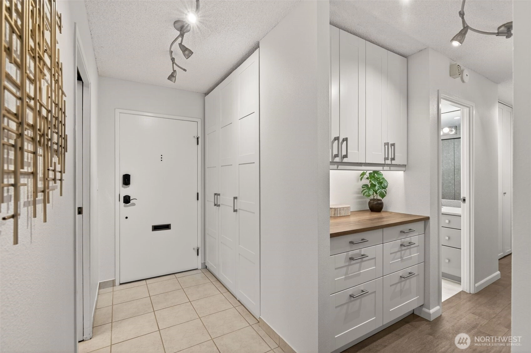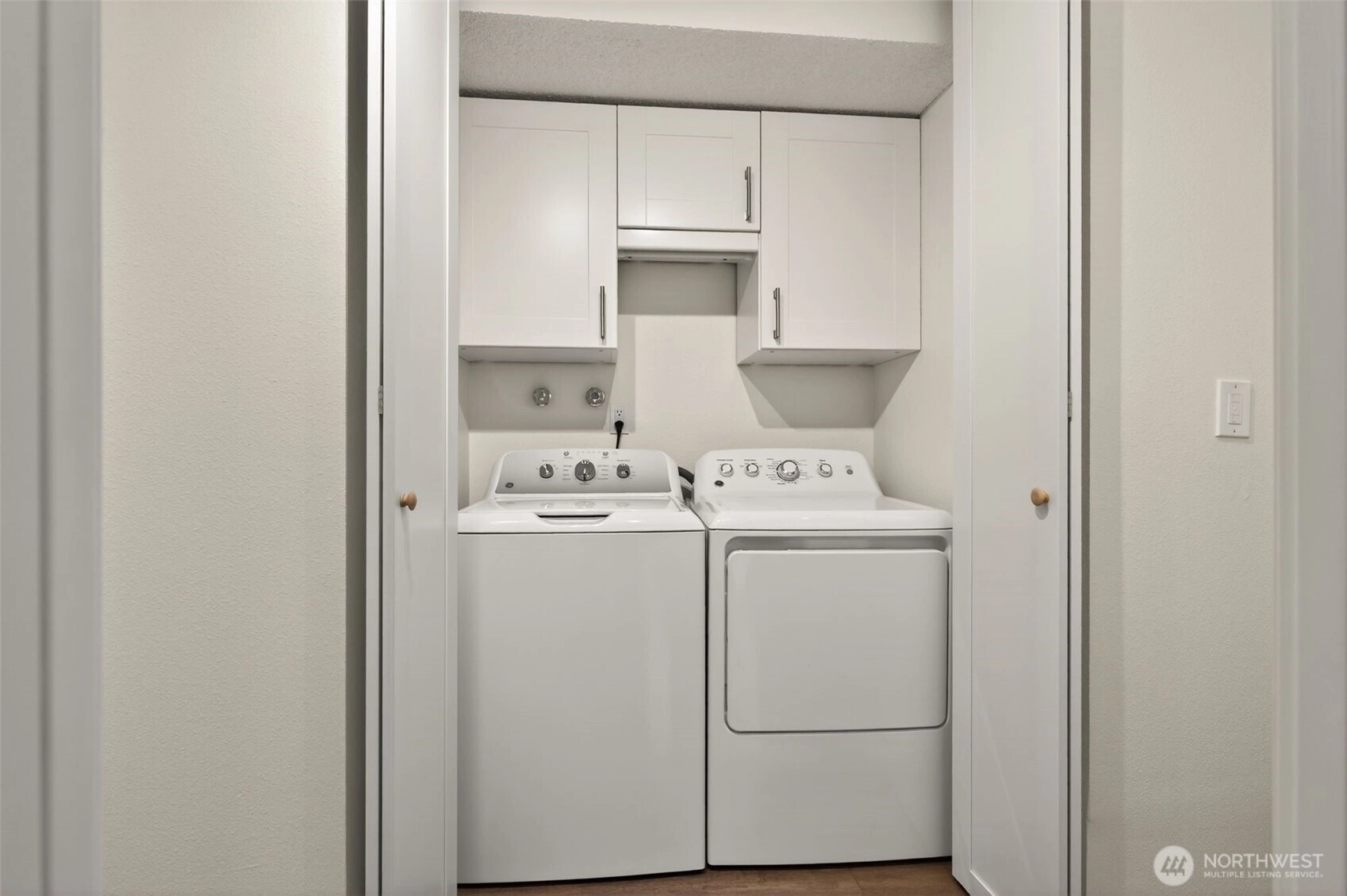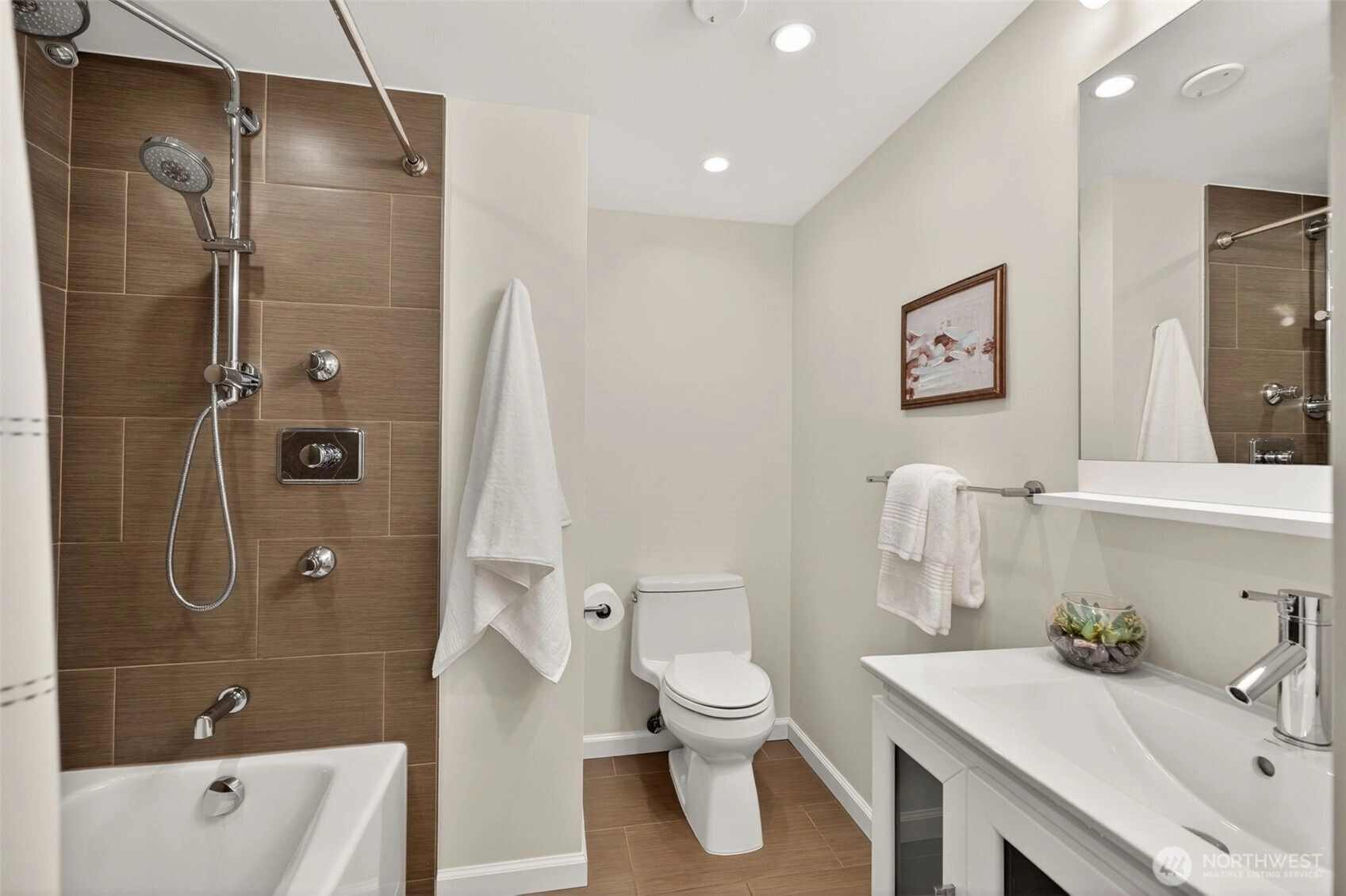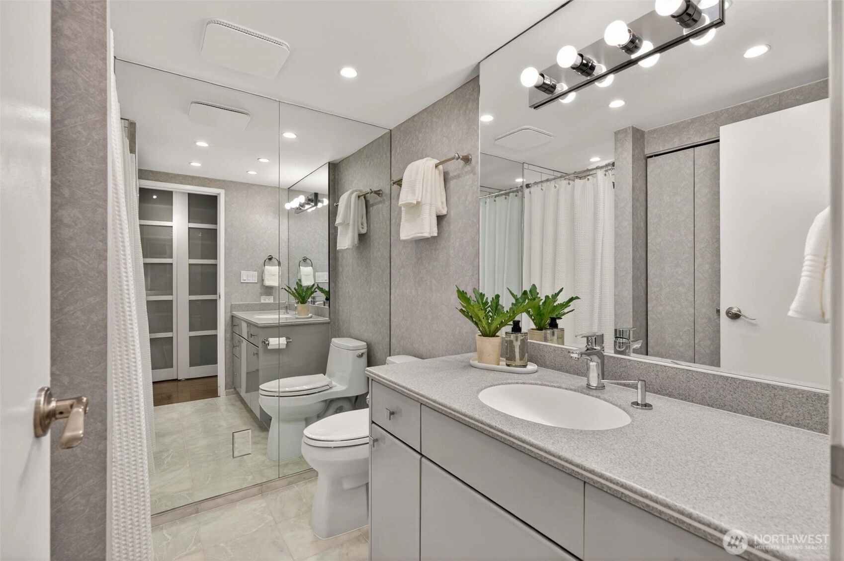 Welcome home to a rare retreat in the heart of Belltown! This thoughtfully updated 2 bed, 2 bath, 1300 sq ft condo at the Royal Crest lives unlike anything else in the building, anchored by a private 20ft x 80 ft patio that opens to a quiet, protected courtyard, a layout that is perfect for summer entertaining. Inside you'll find fresh flooring, updated bathrooms, refreshed appliances, and generous storage with built-in organization systems throughout. In-unit washer and dryer, plus a dedicated 6'x6'x8' assigned storage unit for everything else. Ownership at Royal Crest is genuinely turnkey. HOA dues cover all utilities (electricity, heat, water, sewage, garbage), and the building boast healthy reserves and no pending special assessments. Building amenities include an outdoor pool, sauna, fitness center, community room, BBQ area, and on-site manager. Park with confidence in your deeded garage stall, complete with a free, unmetered 20 amp EV charging outlet. With a walk score of 99, a transit score of 100, you're in the middle of everything: a 5 min walk to the lightrail, bus lines at the corner, and Pike Place Market, the renovated waterfront, Climate Pledge Arena, Amazon HQ, and more, all within easy reach. Quiet courtyard living with downtown at your doorstep. A rare combination in Belltown.