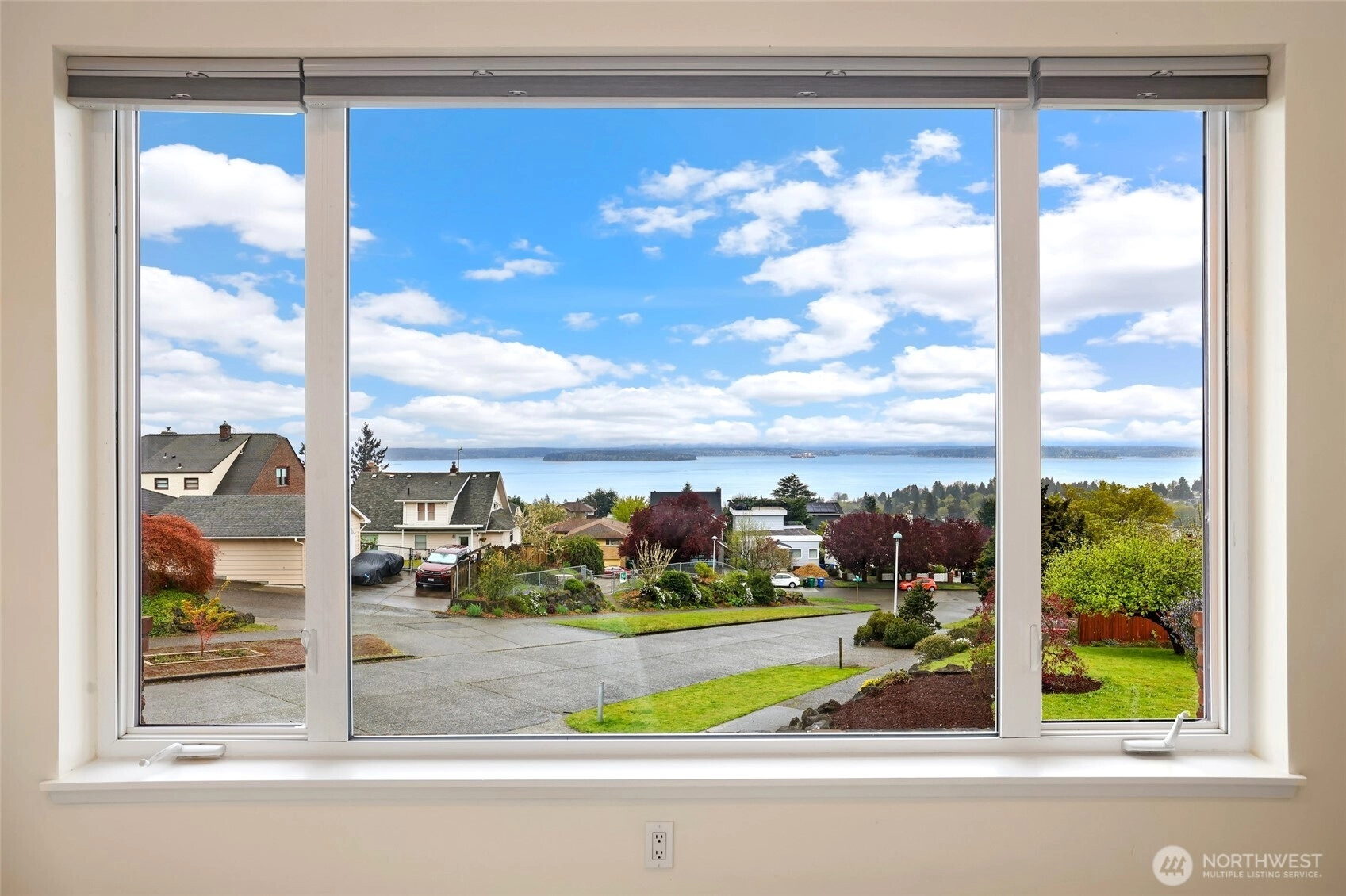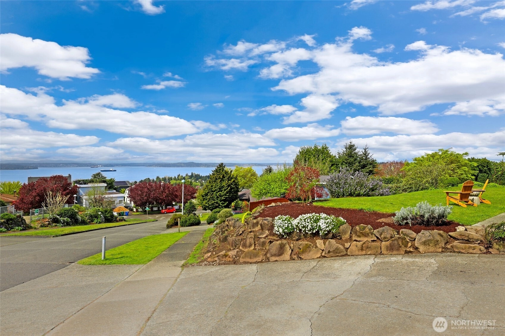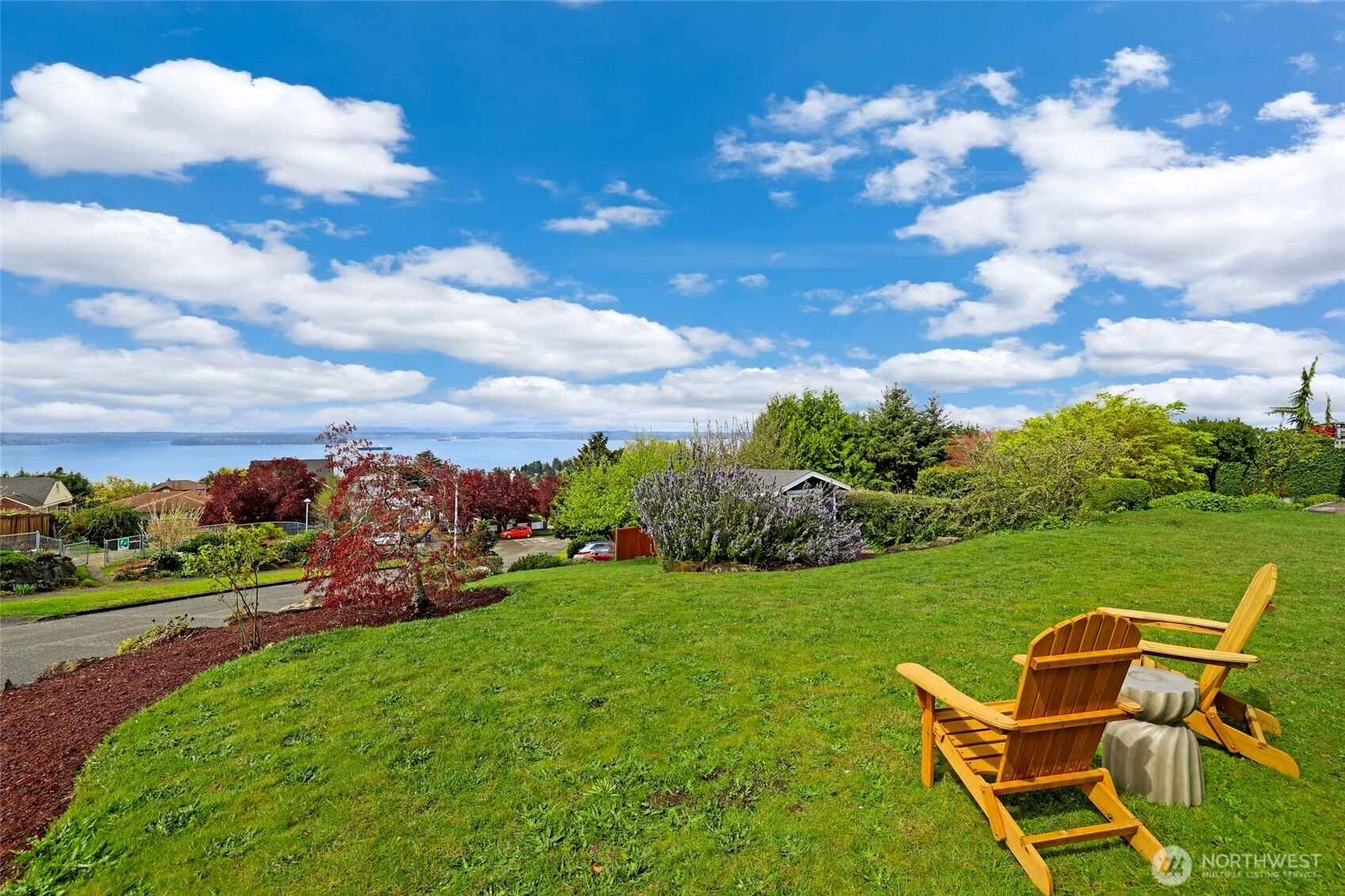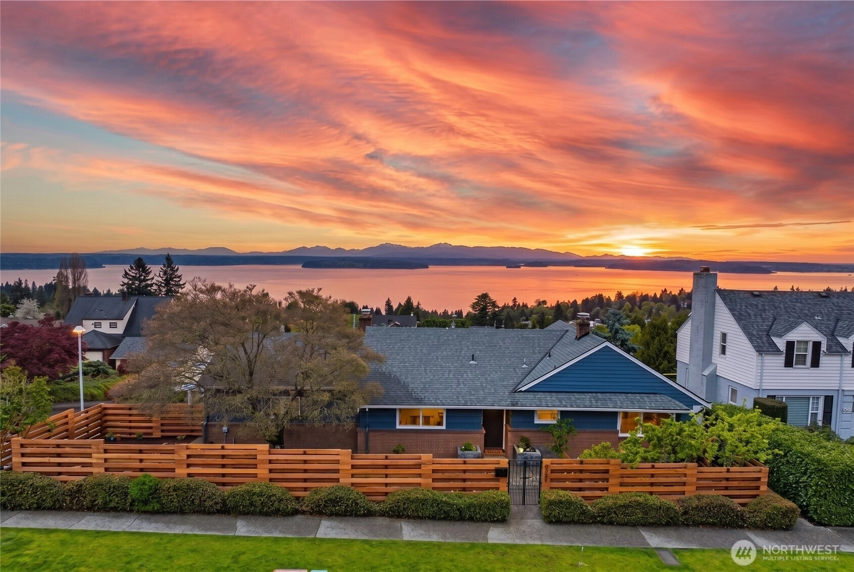 Beautiful at every hour, every season, in every kind of weather, an ever-changing landscape of water, mountains, and sky that offers something new each time you look. Serene. Unobstructed. Endlessly, wirelessly yours. Perched on coveted Gatewood Hill, this corner-lot 1944 classic commands sweeping, wireless panoramas across the Puget Sound that follow you from room to room, through sun-warmed main-level living, gorgeously refinished hardwoods underfoot, past the original tiled bath that speaks quietly of a craftsmanship worth honoring. The primary suite is a sanctuary in every sense: two closets, exquisite tile, and a view so persistent and so generous it stays with you all the way to the soaking tub. The lower level unfolds with the same easy grace: a sprawling rec room, a view-framed office or fourth bedroom, a 3/4 bath, a utility room, fresh carpet, and an attached two-car garage, all of it anchored by that same endless horizon you fell for at the front door. Outside, a beautifully fenced front yard gives way to a private courtyard where a spa awaits its future, pavers already laid, the stage already set, and a path that leads you seamlessly from that outdoor sanctuary directly into the primary bath, as though the home itself anticipated every indulgence. Brand-new fencing and fresh landscaping complete a property that wears its polish naturally, without effort. Gatewood Hill has long been one of West Seattle's most coveted addresses. This is exactly why.