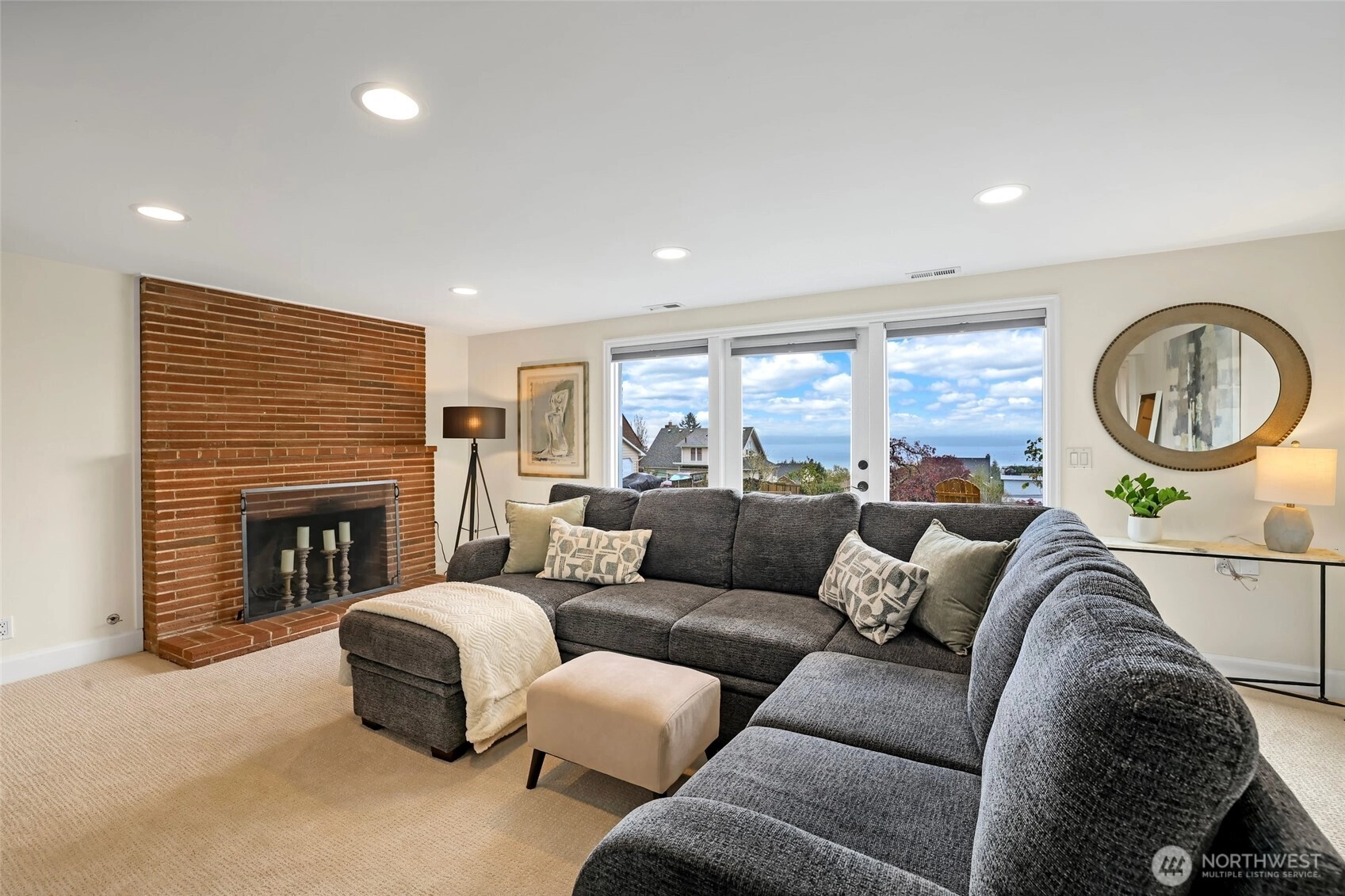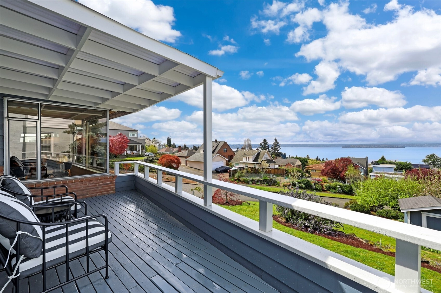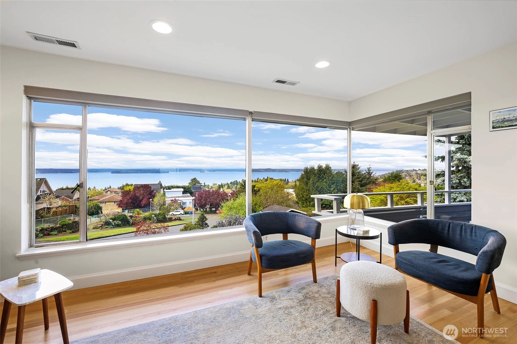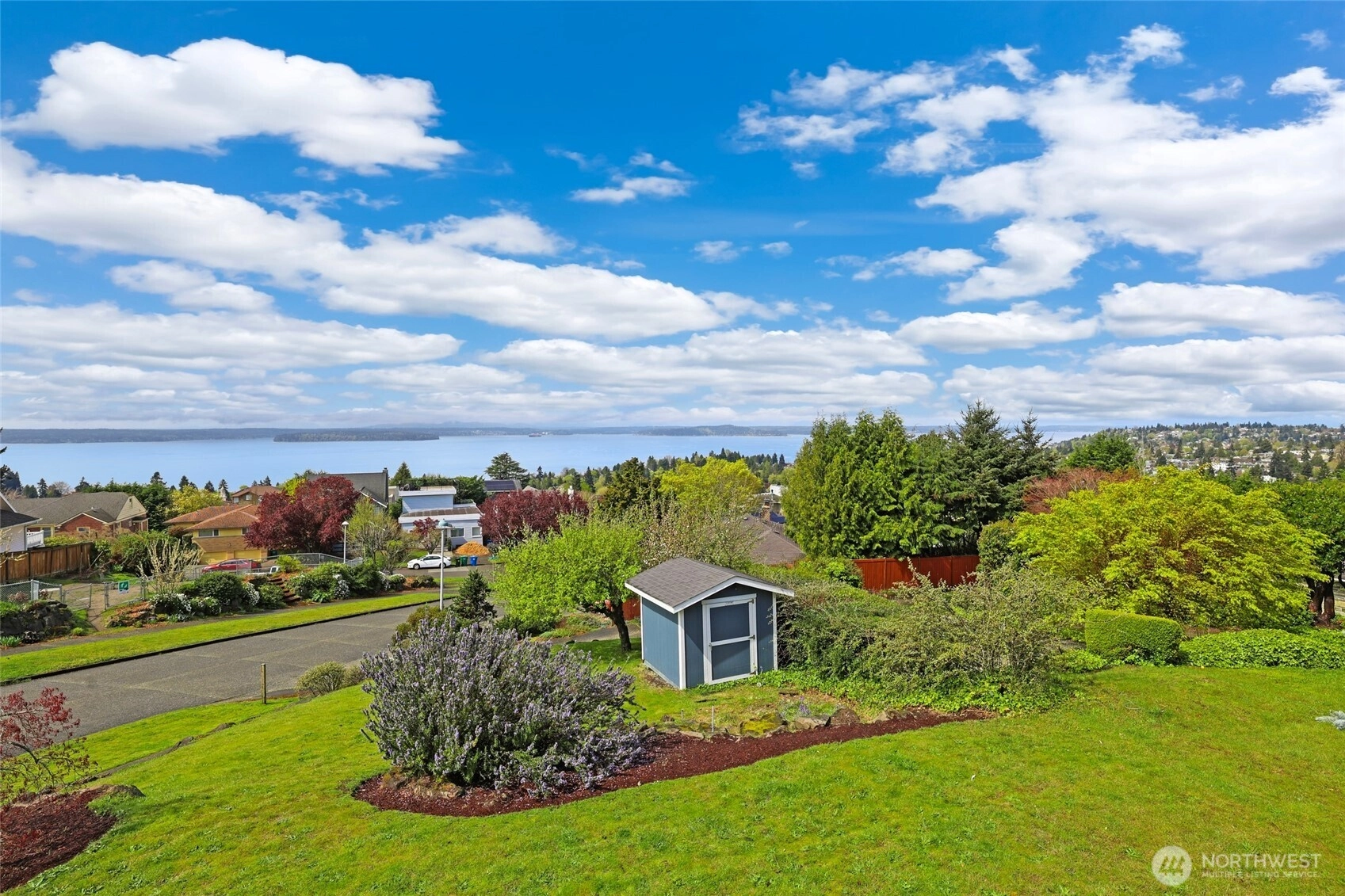 Beautiful at every hour, every season, in every kind of weather, an ever-changing landscape of water, mountains, and sky that offers something new each time you look. Serene. Unobstructed. Endlessly, wirelessly yours. Perched on coveted Gatewood Hill, this corner-lot 1944 classic commands sweeping, wireless panoramas across the Puget Sound that follow you from room to room, through sun-warmed main-level living, gorgeously refinished hardwoods underfoot, past the original tiled bath that speaks quietly of a craftsmanship worth honoring. The primary suite is a sanctuary in every sense: two closets, exquisite tile, and a view so persistent and so generous it stays with you all the way to the soaking tub. The lower level unfolds with the same easy grace: a sprawling rec room, a view-framed office or fourth bedroom, a 3/4 bath, a utility room, fresh carpet, and an attached two-car garage, all of it anchored by that same endless horizon you fell for at the front door. Outside, a beautifully fenced front yard gives way to a private courtyard where a spa awaits its future, pavers already laid, the stage already set, and a path that leads you seamlessly from that outdoor sanctuary directly into the primary bath, as though the home itself anticipated every indulgence. Brand-new fencing and fresh landscaping complete a property that wears its polish naturally, without effort. Gatewood Hill has long been one of West Seattle's most coveted addresses. This is exactly why.