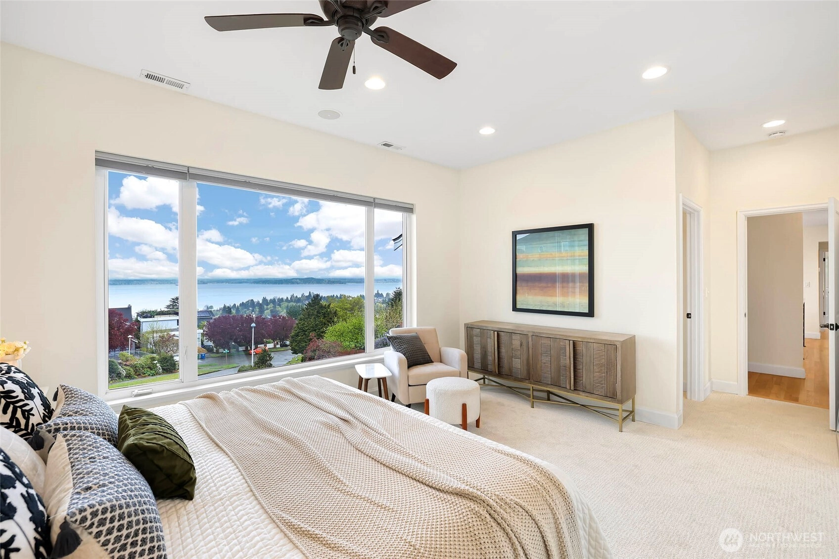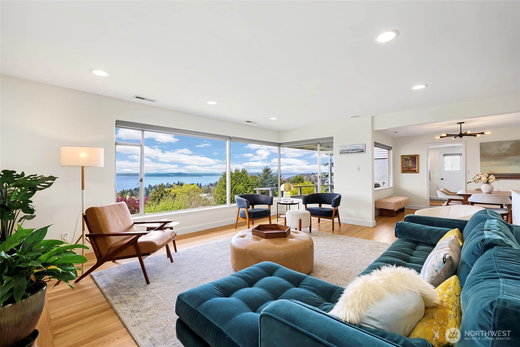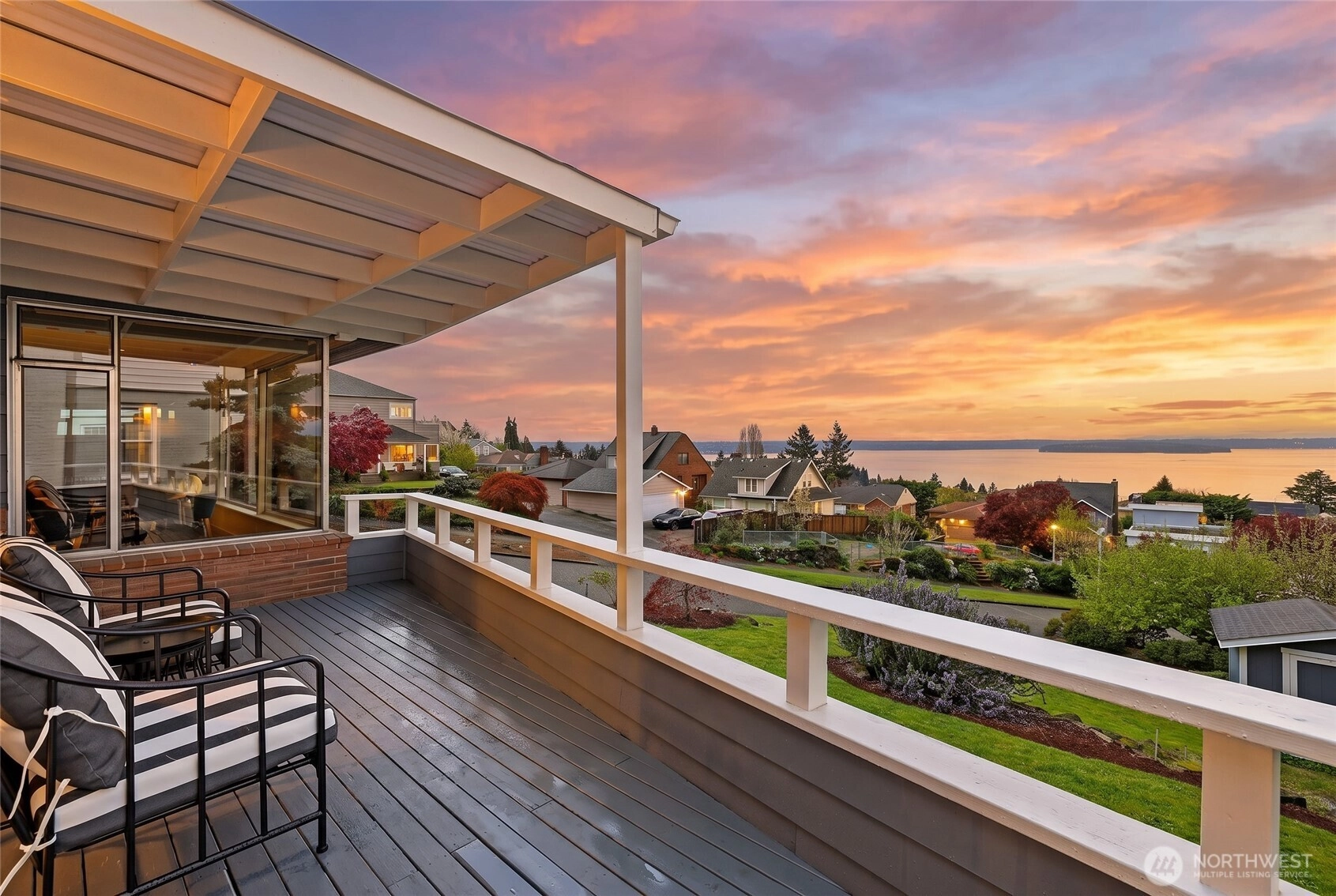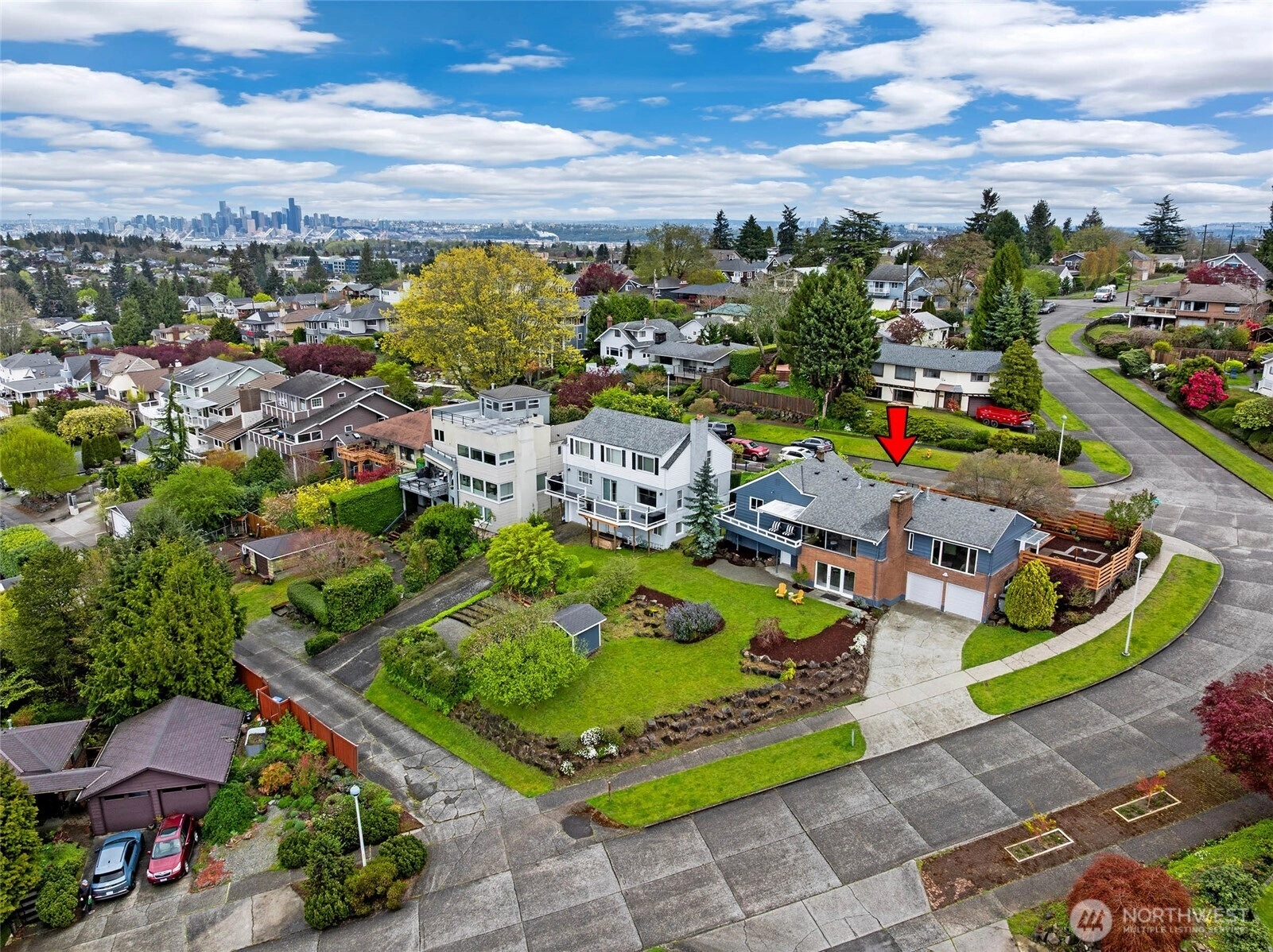 Beautiful at every hour, every season, in every kind of weather, an ever-changing landscape of water, mountains, and sky that offers something new each time you look. Serene. Unobstructed. Endlessly, wirelessly yours. Perched on coveted Gatewood Hill, this corner-lot 1944 classic commands sweeping, wireless panoramas across the Puget Sound that follow you from room to room, through sun-warmed main-level living, gorgeously refinished hardwoods underfoot, past the original tiled bath that speaks quietly of a craftsmanship worth honoring. The primary suite is a sanctuary in every sense: two closets, exquisite tile, and a view so persistent and so generous it stays with you all the way to the soaking tub. The lower level unfolds with the same easy grace: a sprawling rec room, a view-framed office or fourth bedroom, a 3/4 bath, a utility room, fresh carpet, and an attached two-car garage, all of it anchored by that same endless horizon you fell for at the front door. Outside, a beautifully fenced front yard gives way to a private courtyard where a spa awaits its future, pavers already laid, the stage already set, and a path that leads you seamlessly from that outdoor sanctuary directly into the primary bath, as though the home itself anticipated every indulgence. Brand-new fencing and fresh landscaping complete a property that wears its polish naturally, without effort. Gatewood Hill has long been one of West Seattle's most coveted addresses. This is exactly why.
