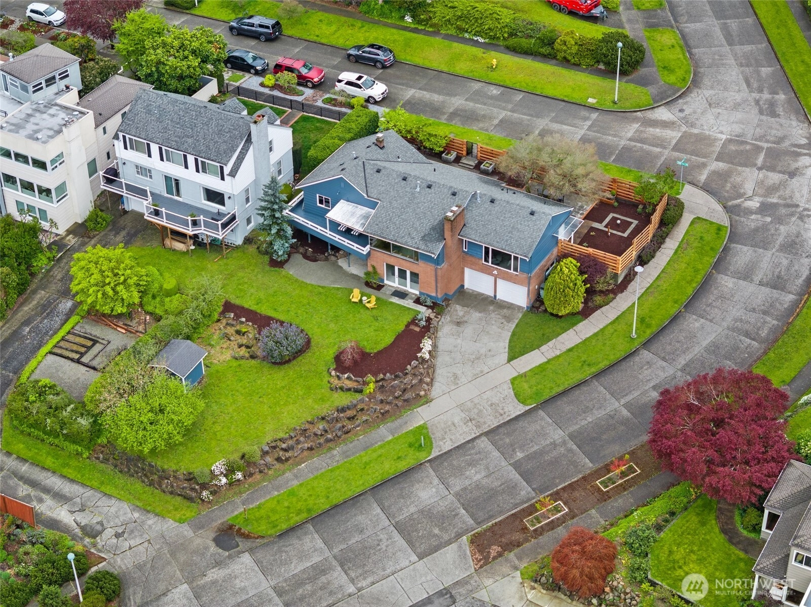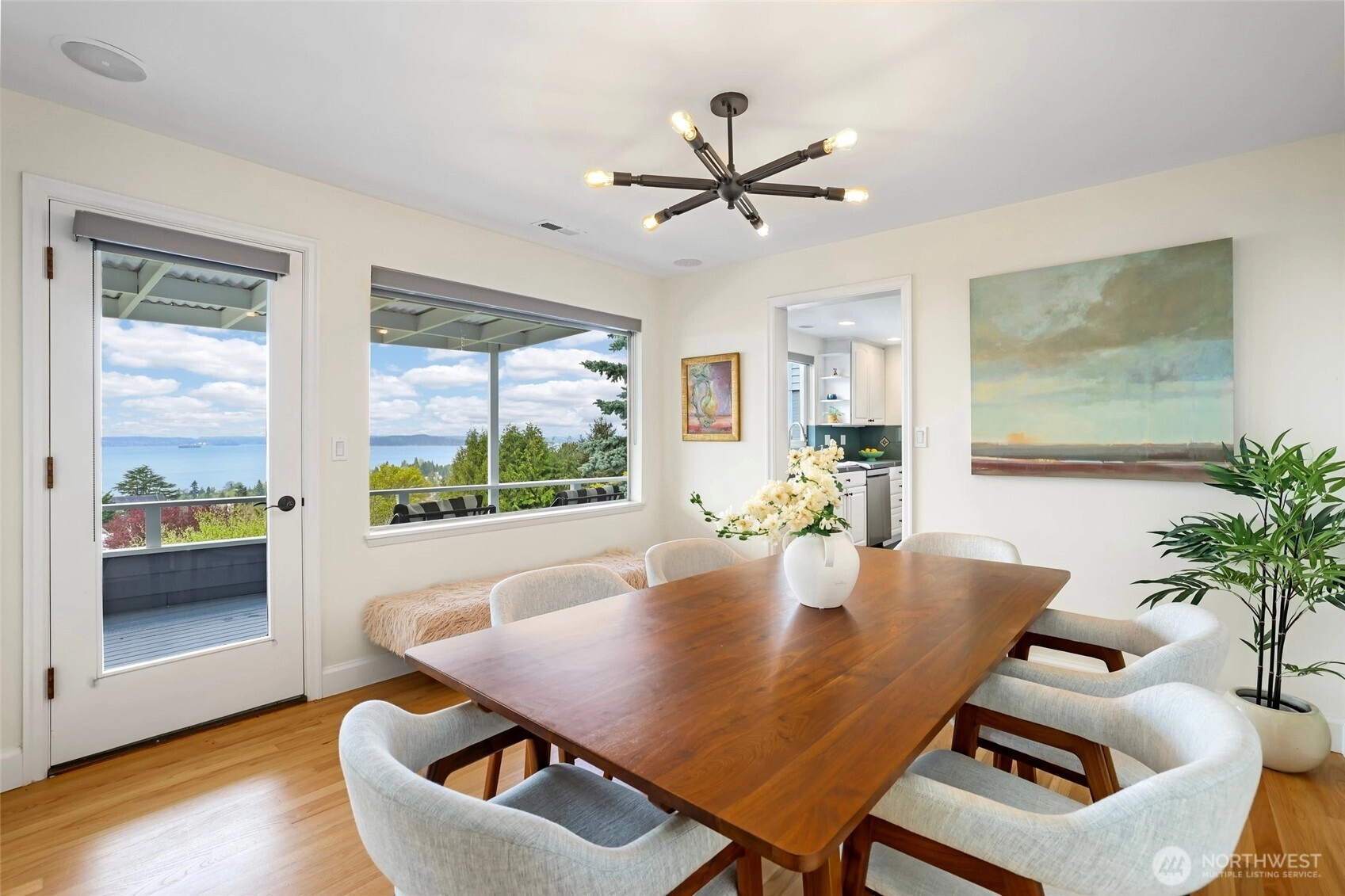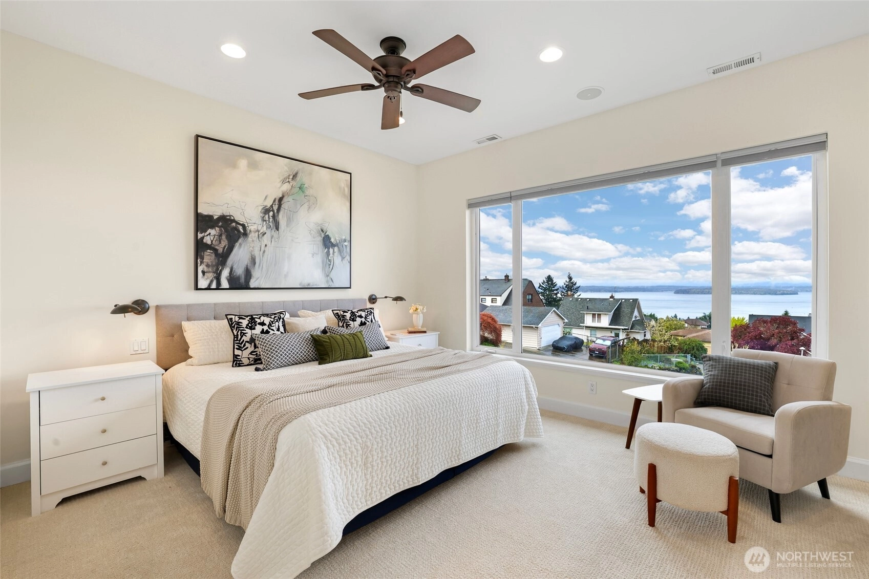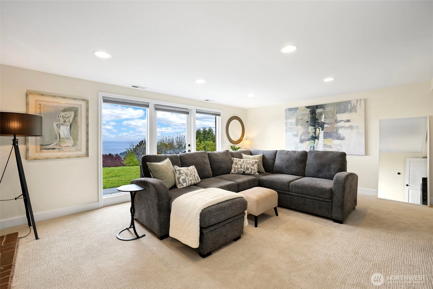 Beautiful at every hour, every season, in every kind of weather, an ever-changing landscape of water, mountains, and sky that offers something new each time you look. Serene. Unobstructed. Endlessly, wirelessly yours. Perched on coveted Gatewood Hill, this corner-lot 1944 classic commands sweeping, wireless panoramas across the Puget Sound that follow you from room to room, through sun-warmed main-level living, gorgeously refinished hardwoods underfoot, past the original tiled bath that speaks quietly of a craftsmanship worth honoring. The primary suite is a sanctuary in every sense: two closets, exquisite tile, and a view so persistent and so generous it stays with you all the way to the soaking tub. The lower level unfolds with the same easy grace: a sprawling rec room, a view-framed office or fourth bedroom, a 3/4 bath, a utility room, fresh carpet, and an attached two-car garage, all of it anchored by that same endless horizon you fell for at the front door. Outside, a beautifully fenced front yard gives way to a private courtyard where a spa awaits its future, pavers already laid, the stage already set, and a path that leads you seamlessly from that outdoor sanctuary directly into the primary bath, as though the home itself anticipated every indulgence. Brand-new fencing and fresh landscaping complete a property that wears its polish naturally, without effort. Gatewood Hill has long been one of West Seattle's most coveted addresses. This is exactly why.