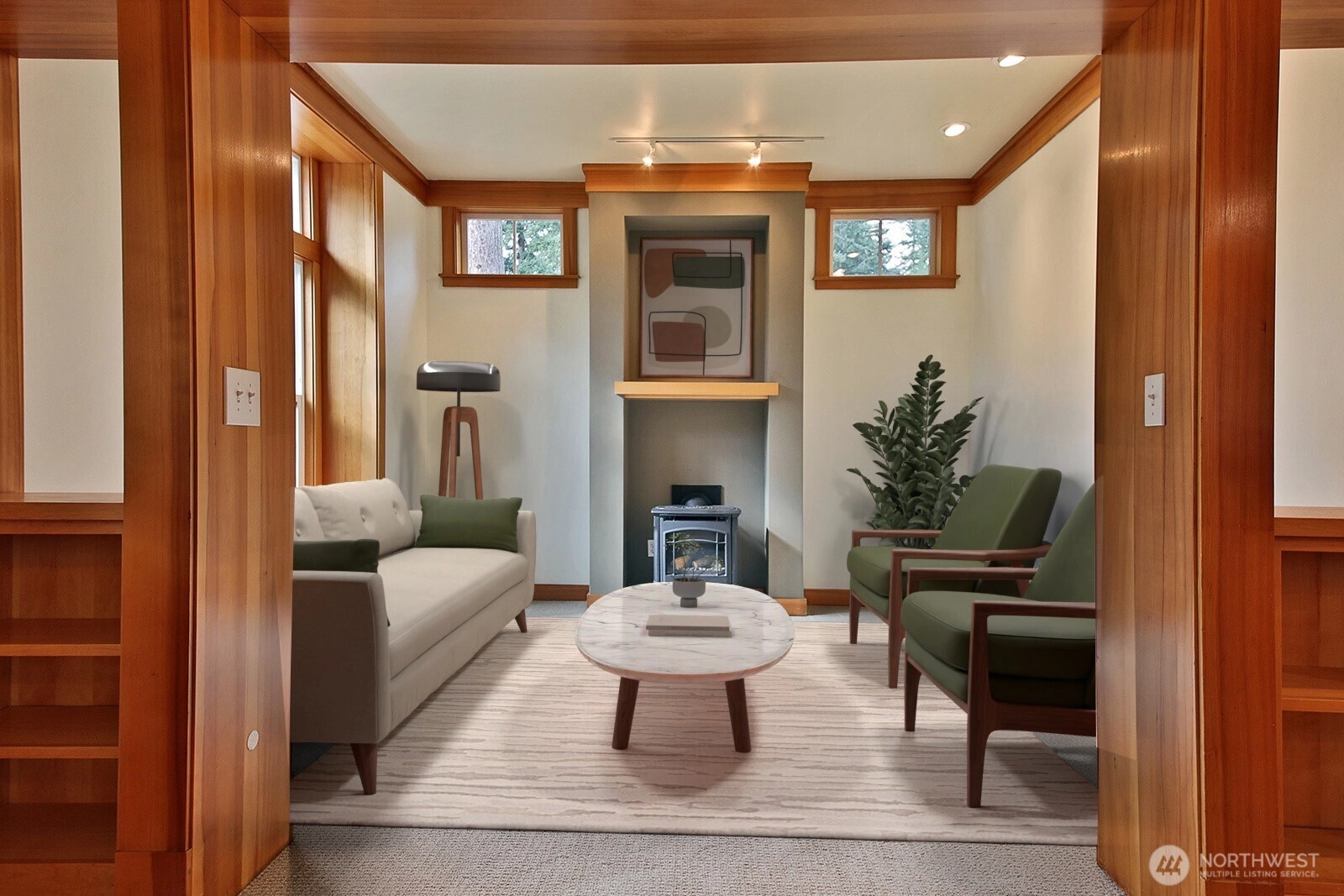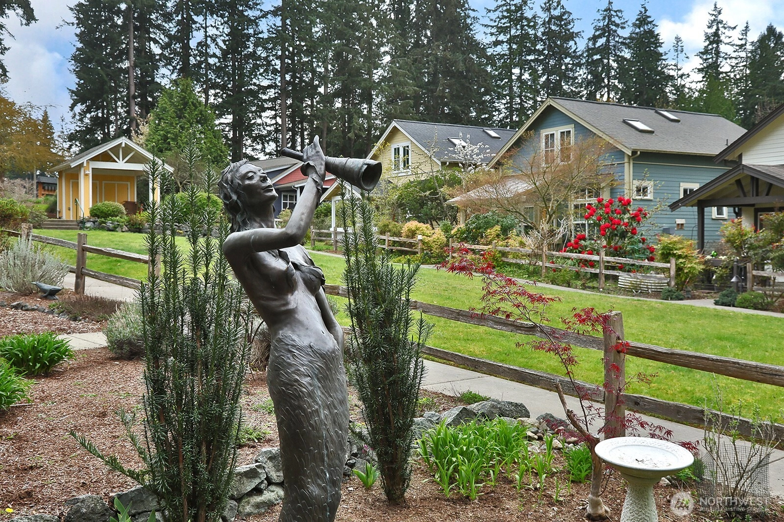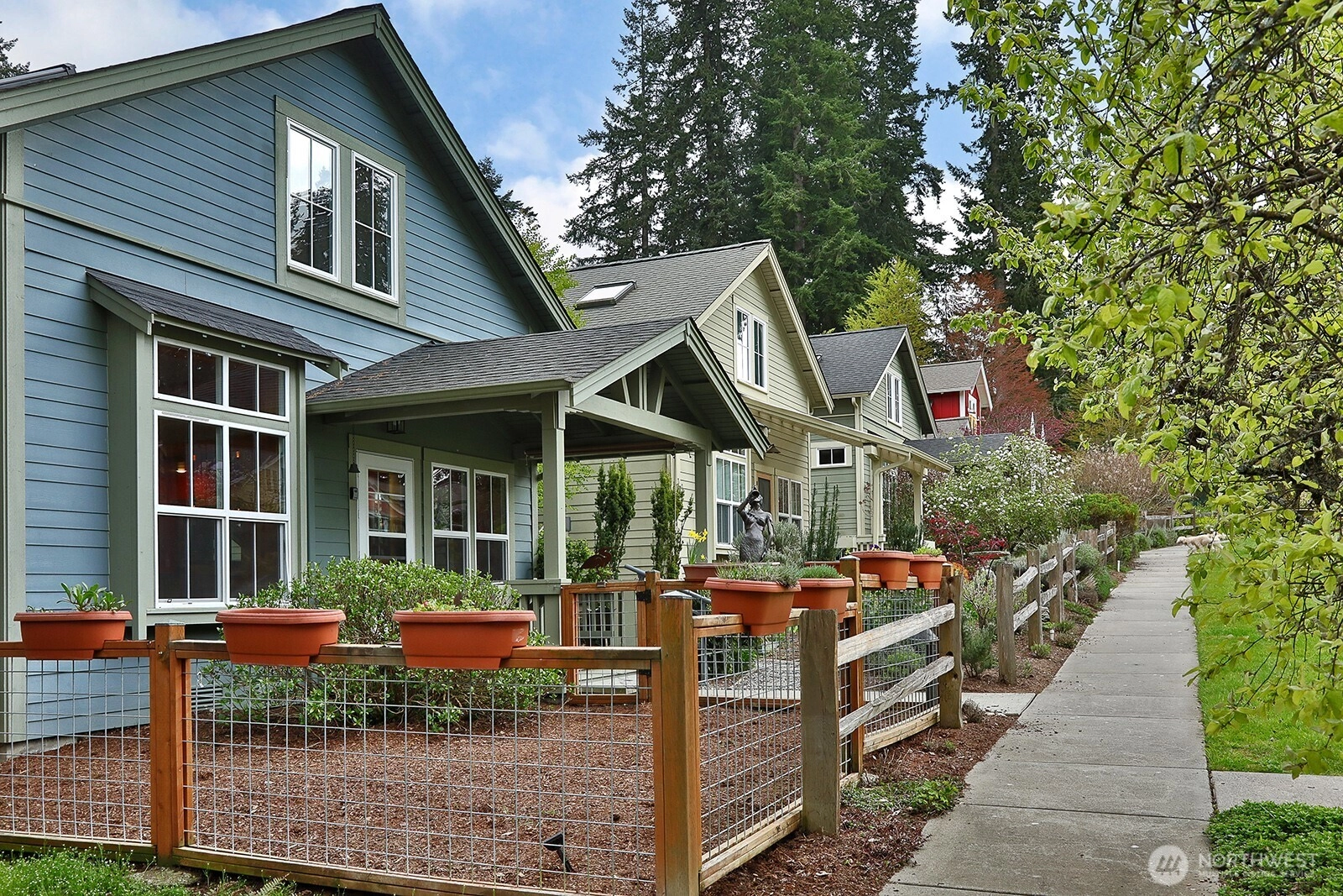 Bright & welcoming, this beloved Erin design by nationally acclaimed architect Ross Chapin beautifully embodies the “Not So Big House” philosophy, offering thoughtful efficiency without sacrificing charm or comfort. Inside, you’ll find 2 bedrooms, 1 full bath plus a ¾ bath, and two inviting living spaces that make everyday living feel easy. Quality details shine throughout: hardwood floors, new carpet, stainless steel appliances, custom lighting, and abundant built-ins and storage designed for effortless organization. This low-impact community was created with sustainability in mind—native landscaping, greenbelts, open space, and trails leading directly to Langley. Residents also enjoy shared amenities, including a welcoming community pavilion perfect for gatherings. And for garden lovers, the Al Anderson Farm pea patch off Fairgrounds Road is just moments away. Relax on the covered back porch overlooking the lawn and garden, or make use of the partially fenced backyard for pets or privacy. A spacious exterior storage closet provides room for tools, seasonal items, or overflow belongings. The home’s original standard package included super insulation, low-E windows, and water-saving fixtures, all contributing to long-term comfort and efficiency. Just minutes from downtown Langley, you’ll enjoy quick access to shops, restaurants, and local conveniences. This Whidbey Island gem offers low-maintenance living!