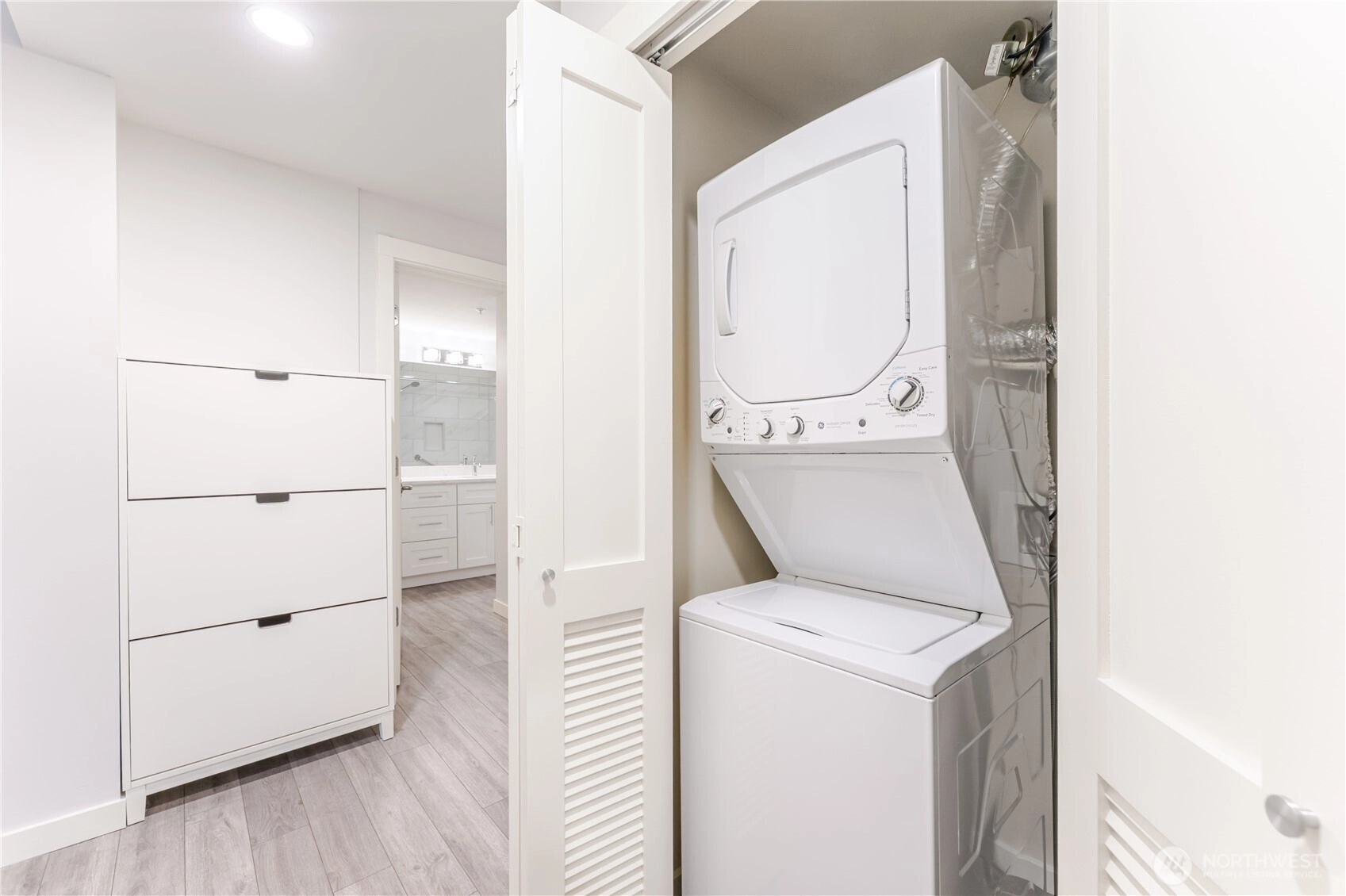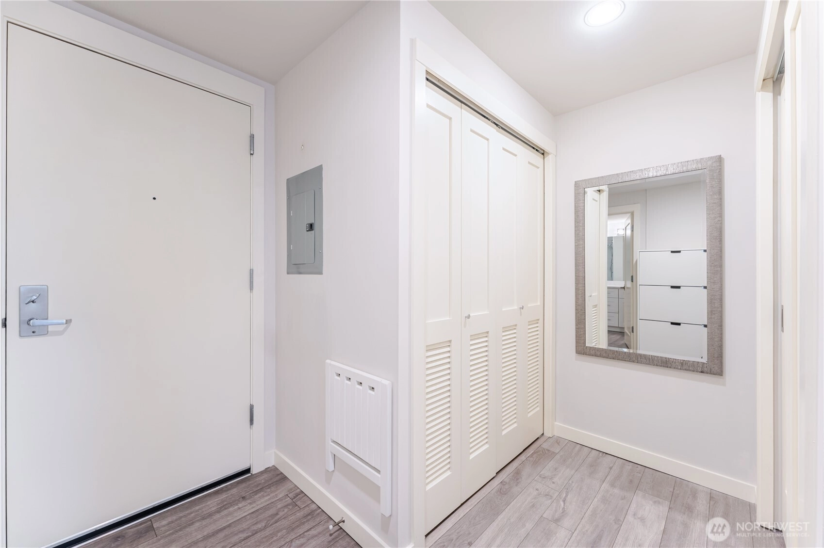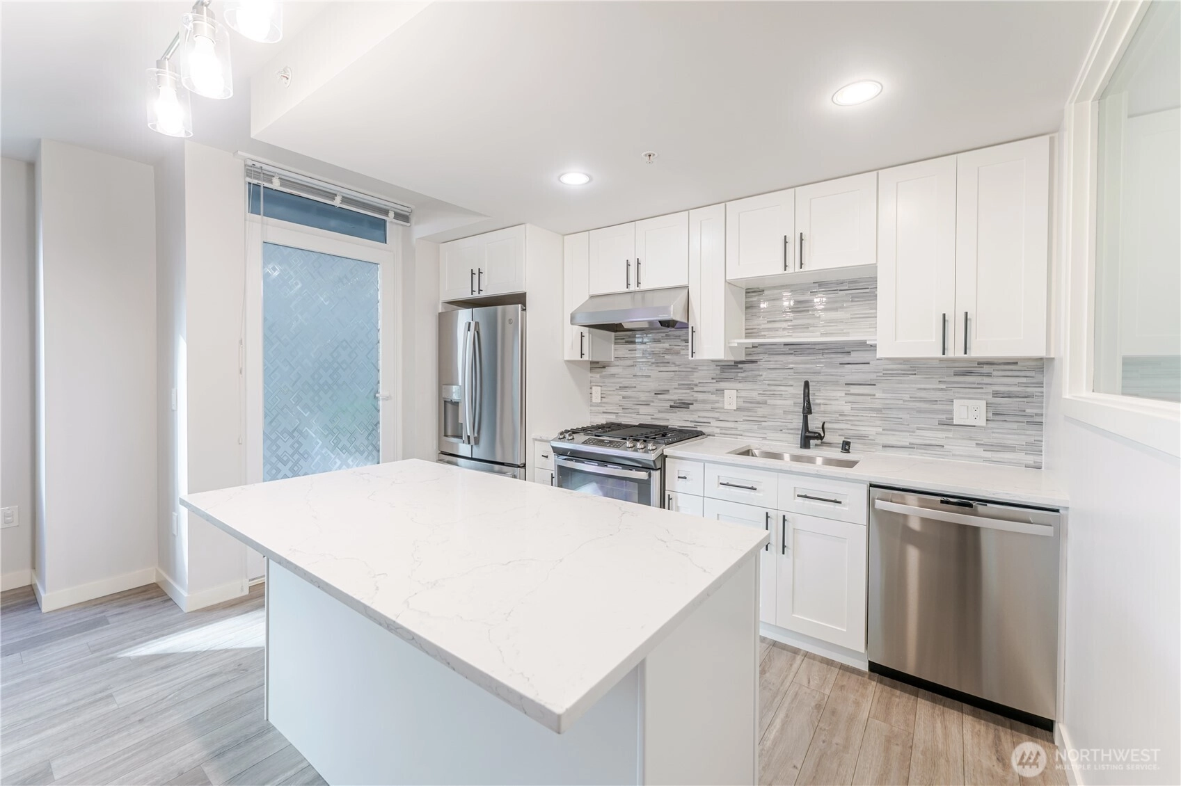 Welcome to this thoughtfully updated, quiet, courtyard-facing 1BR at The Parc. Bright living/dining area with new wide-plank flooring opens to a generous private patio. Recent remodel includes a new kitchen: shaker cabinetry, slab-quartz counters, full-height glass tile, oversized island, stainless appliance suite, and refreshed lighting and fixtures. Matching built-in buffet with upper cabinets adds prep space and pantry storage. Spacious bedroom with custom storage. Updated large bathroom with double vanity, quartz, new tile + lighting. In-unit laundry. Garage parking and storage. Amenities check the right boxes: include a 24-hour concierge, fitness room with direct access from the unit's patio, owners’ lounge, guest suites, and a roof deck with 360° city/Sound/mountain views + BBQs. Pet-friendly and close to Pike Place, Sculpture Park, the revitalized waterfront, and transit. Quality unit and remodel in a central Belltown building.