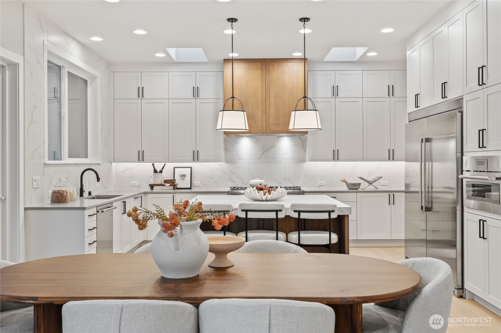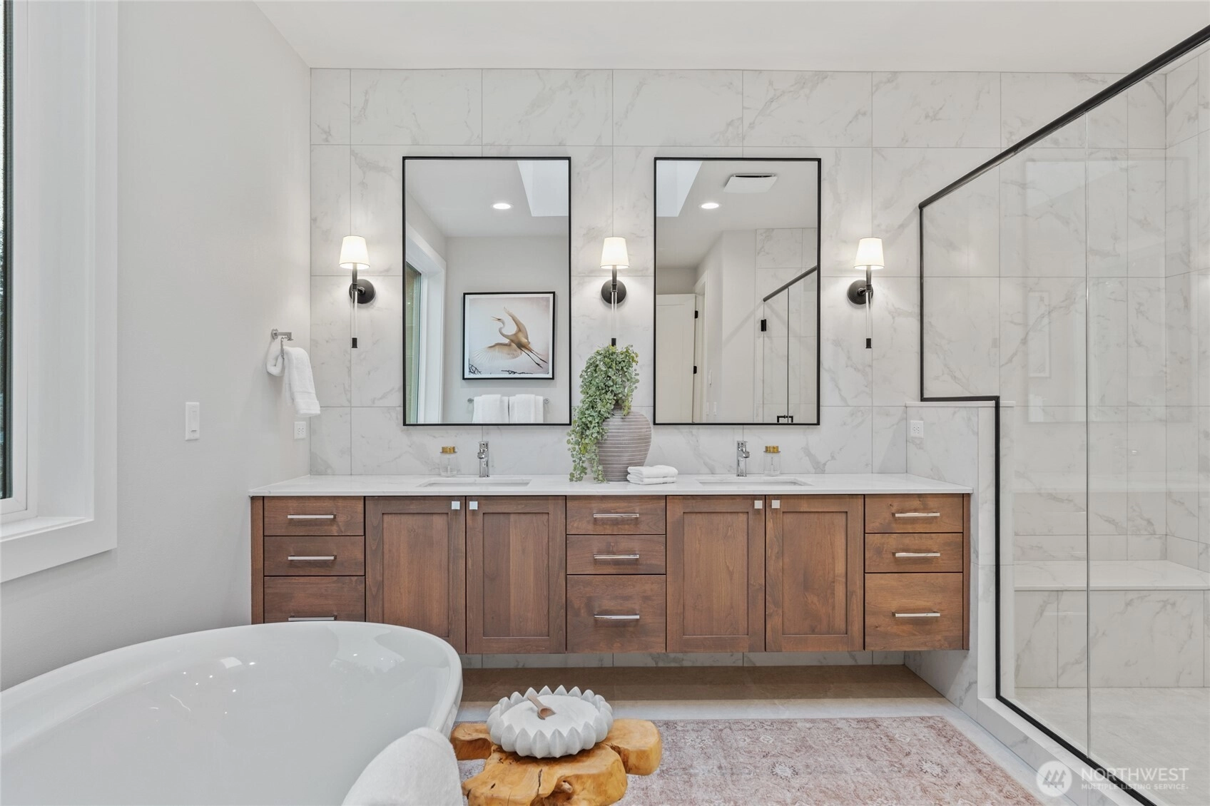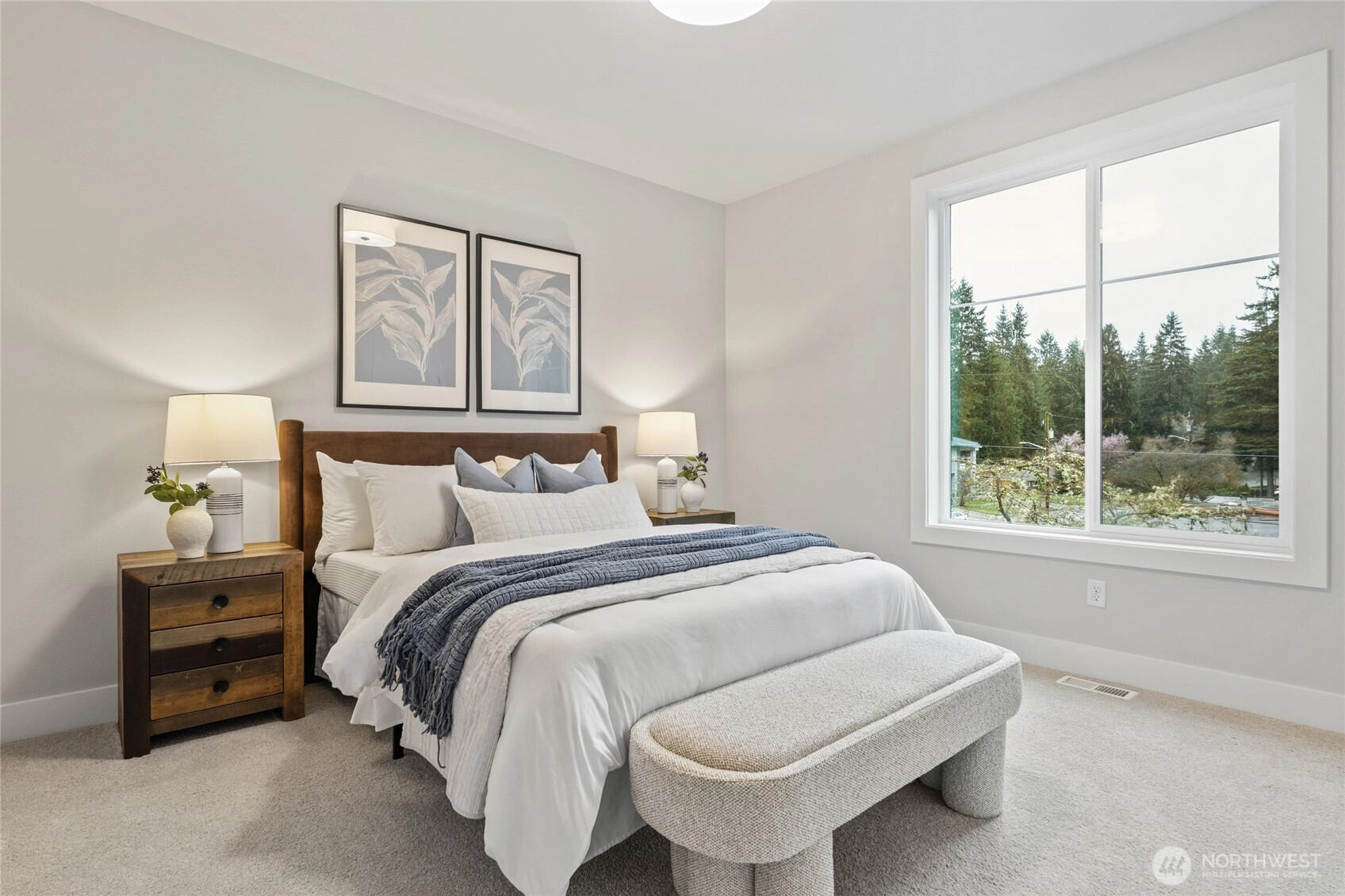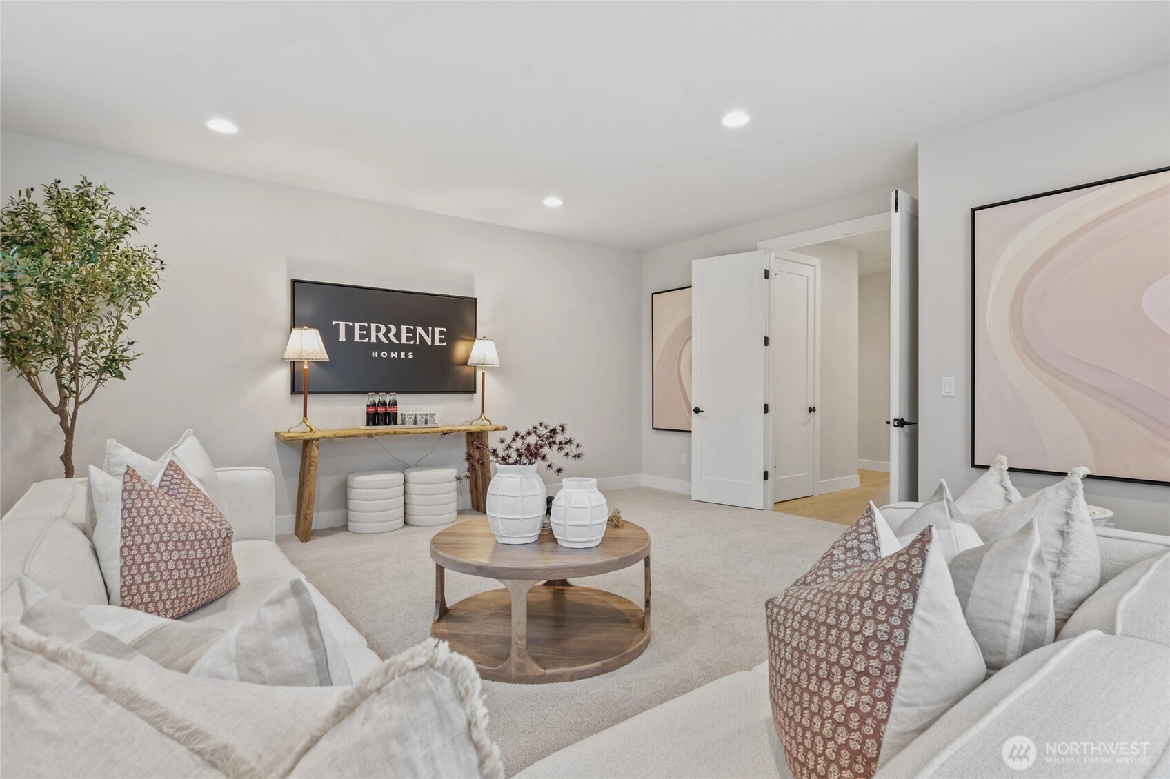 Exquisite newly constructed luxury home in Bellevue’s Robinswood neighborhood, built by Terrene Homes. This thoughtfully designed 5 bedroom, 4.5 bathroom residence features a light-filled two-story great room with soaring ceilings, floor-to-ceiling windows, and a cozy gas fireplace—perfect for everyday living and entertaining. The chef’s kitchen is the heart of the home, showcasing a 6-burner gas range, oversized center island, and premium finishes for effortless gatherings. The spacious primary suite offers a private retreat with a spa-inspired ensuite, soaking tub, glass-enclosed shower, dual vanities, and dual walk-in closets. A dedicated home office & functional mudroom add to this home's appeal. The expansive bonus room offers flexibility for a media room, playroom, or lounge. A main-level multigenerational suite with ensuite bath and private patio adds versatility. Enjoy seamless indoor-outdoor living with a covered patio, outdoor gas fireplace, fully fenced yard and surround sound. EV-ready 3 car garage. Convenient access to I-90, Microsoft campus, DT Bellevue, and Award winning Bellevue Schools.