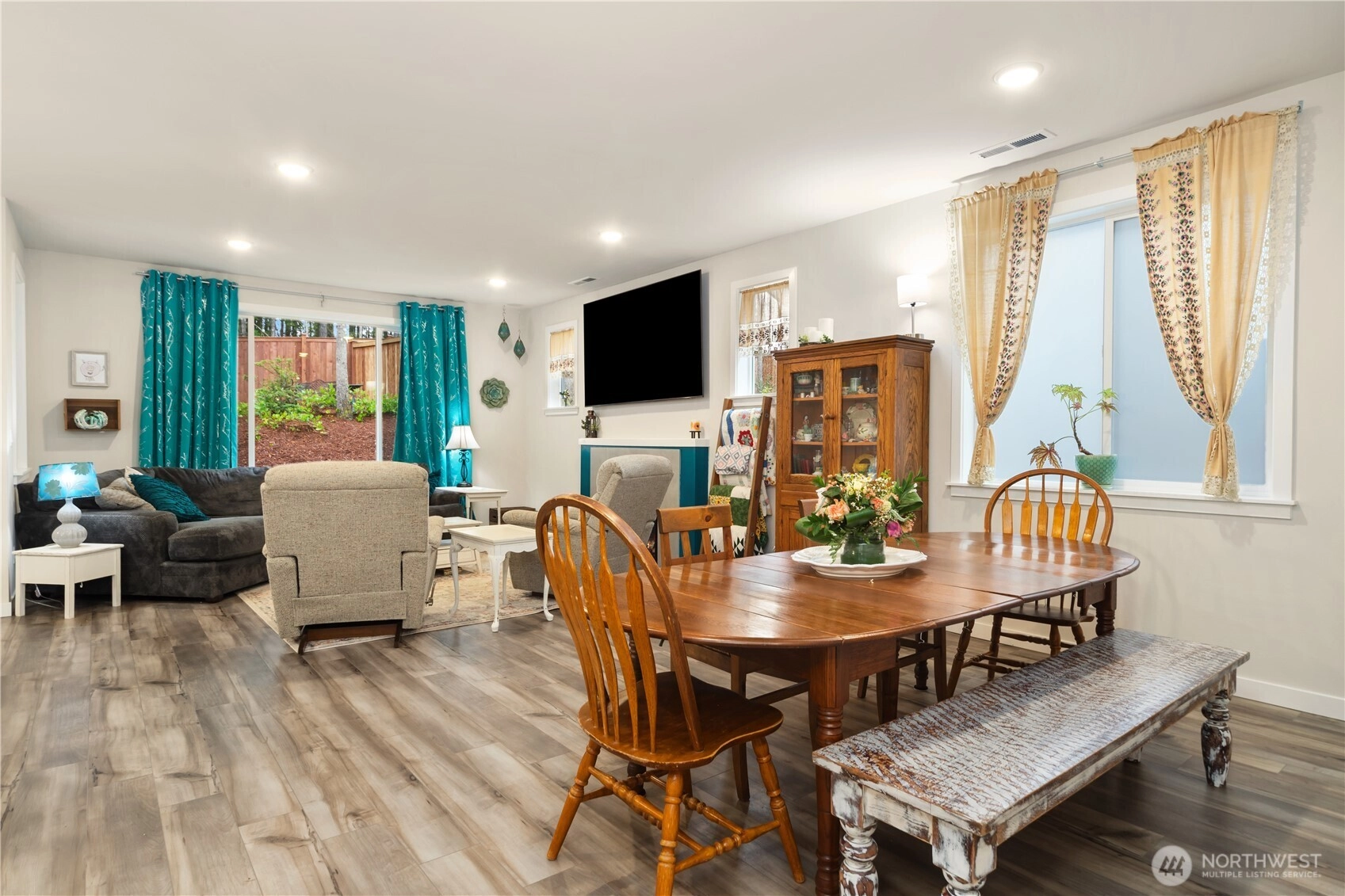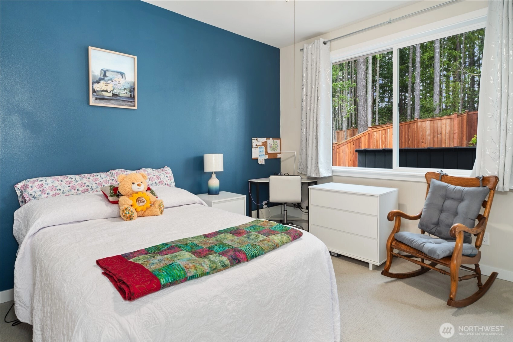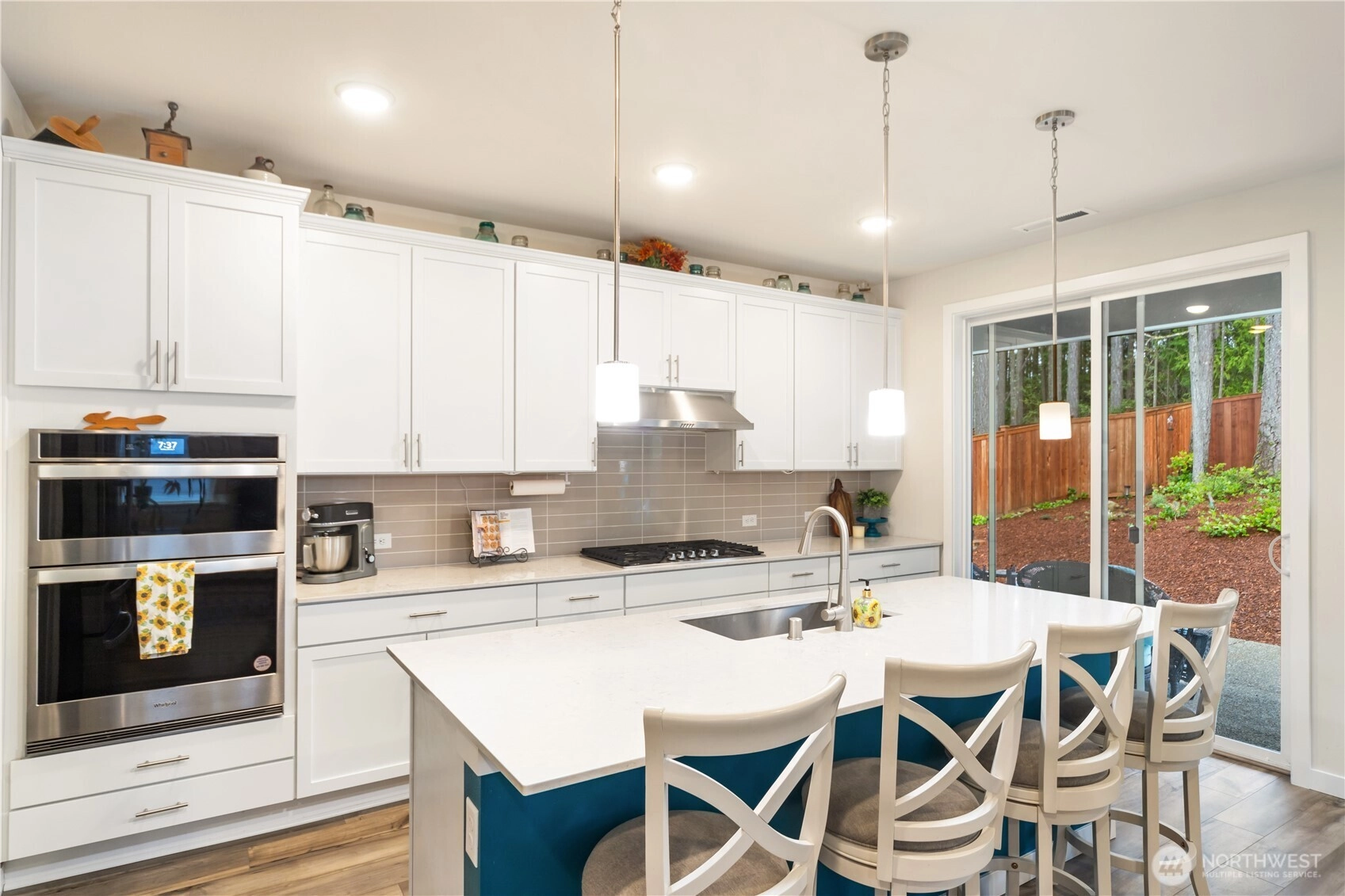Multi-generational home in Poulsbo! The ADU features its own entrance, living space, kitchenette, laundry, bath with walk-in shower, and bedroom with access to a covered patio. The open-concept great room includes a welcoming gas fireplace and a chef’s kitchen boasting quartz countertops, subway tile backsplash, breakfast island, stainless steel appliances, gas cooktop, and walk-in pantry. On the main floor, you’ll also find a flexible space that can serve as a bedroom or office. Upstairs includes a comfortable loft, three bedrooms, and a convenient laundry room. The spacious primary bedroom features a spa-inspired bathroom with double sinks, a walk-in shower, a soaking tub, and a walk-in closet. This SMART wired home is equipped with a heat pump for air conditioning, a hybrid water heater and fenced yard backing up to a greenbelt. Conveniently located near schools and offers easy access to Bangor, PSNS, and Bainbridge ferries. Built just 3 years ago - this home is a must-see!