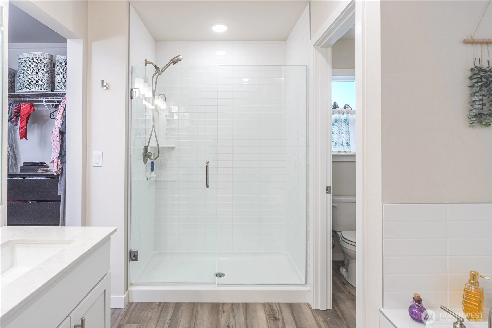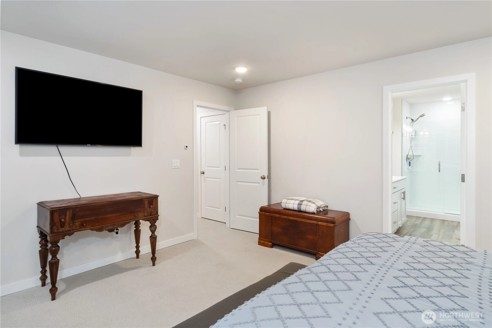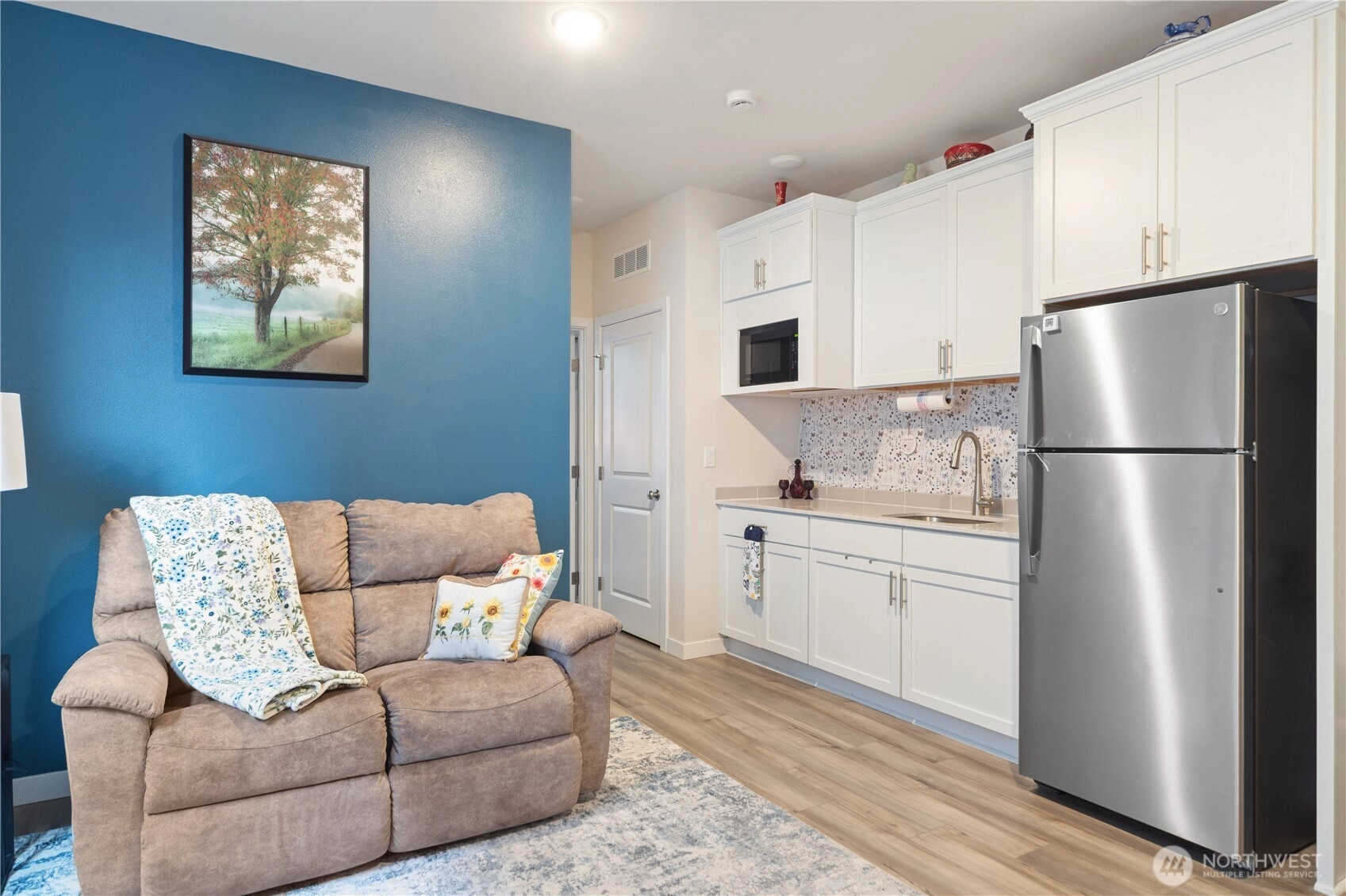 Multi-generational home in Poulsbo! The ADU features its own entrance, living space, kitchenette, laundry, bath with walk-in shower, and bedroom with access to a covered patio. The open-concept great room includes a welcoming gas fireplace and a chef’s kitchen boasting quartz countertops, subway tile backsplash, breakfast island, stainless steel appliances, gas cooktop, and walk-in pantry. On the main floor, you’ll also find a flexible space that can serve as a bedroom or office. Upstairs includes a comfortable loft, three bedrooms, and a convenient laundry room. The spacious primary bedroom features a spa-inspired bathroom with double sinks, a walk-in shower, a soaking tub, and a walk-in closet. This SMART wired home is equipped with a heat pump for air conditioning, a hybrid water heater and fenced yard backing up to a greenbelt. Conveniently located near schools and offers easy access to Bangor, PSNS, and Bainbridge ferries. Built just 3 years ago - this home is a must-see!