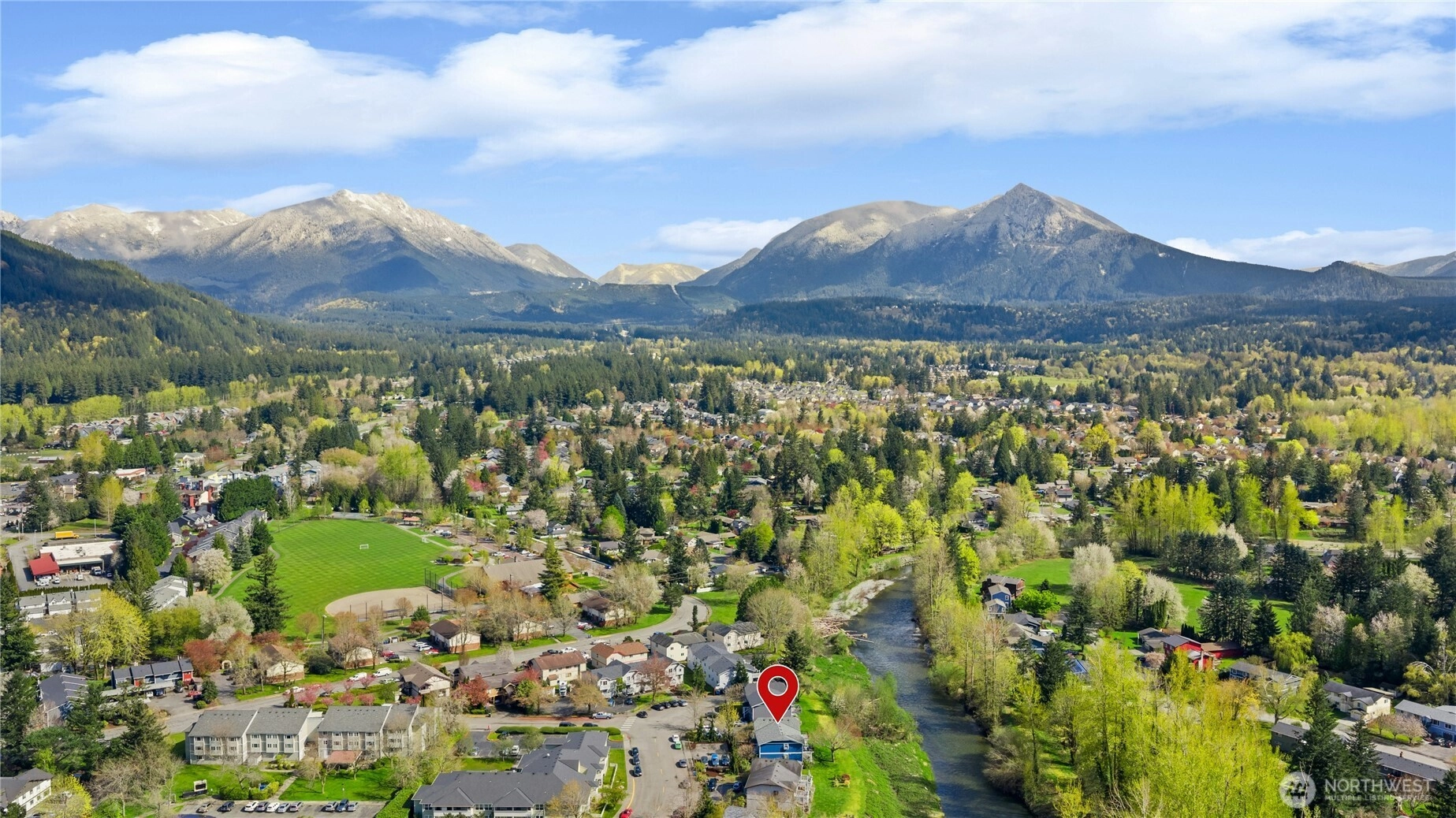 Set along the picturesque banks of the Snoqualmie River with breathtaking views of Mount Si, this beautifully remodeled condo perfectly balances serene natural surroundings with everyday convenience. Rarely available in this sought-after area, the home has been thoughtfully updated with modern finishes throughout. The stylish kitchen features sleek quartz countertops, beautiful cabinetry, and newer appliances, while the refreshed bathroom and durable, easy-care laminate flooring add to the home’s appeal. Designer paint and custom wall treatments bring personality to each bedroom, and the private deck offers a peaceful retreat—ideal for morning coffee while watching trout glide through the river below. Wake up to stunning mountain views and unwind to the calming sounds of the water, all while enjoying a short walk to downtown North Bend for coffee, the Farmers Market, dining, and local shops. Inside, you’ll appreciate the efficient layout, updated finishes, and extra storage for your outdoor gear. Whether you’re seeking a full-time residence or a weekend getaway, this is a rare opportunity to own a piece of the Pacific Northwest lifestyle, with endless trails and outdoor recreation just minutes away. Schedule your private tour today!