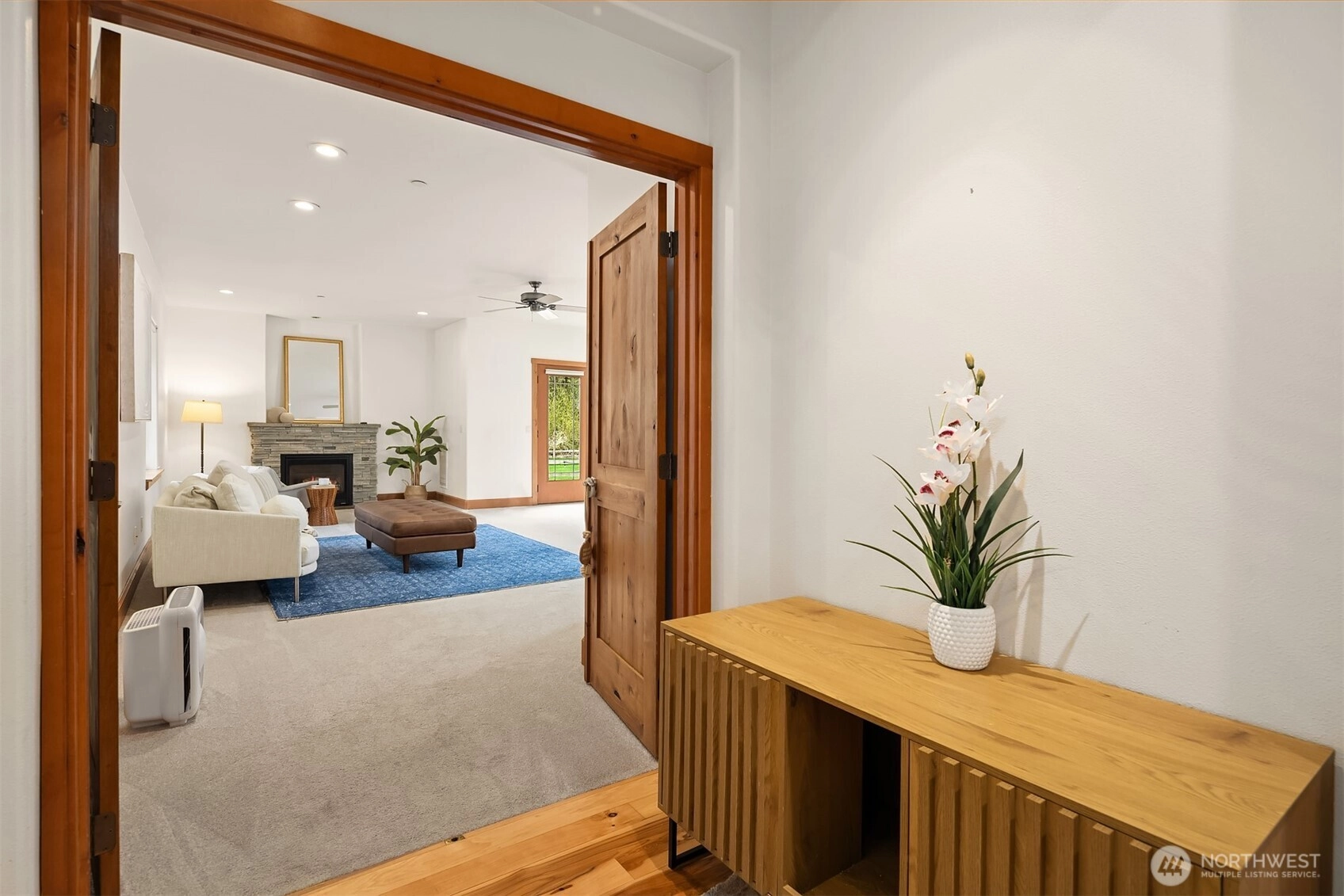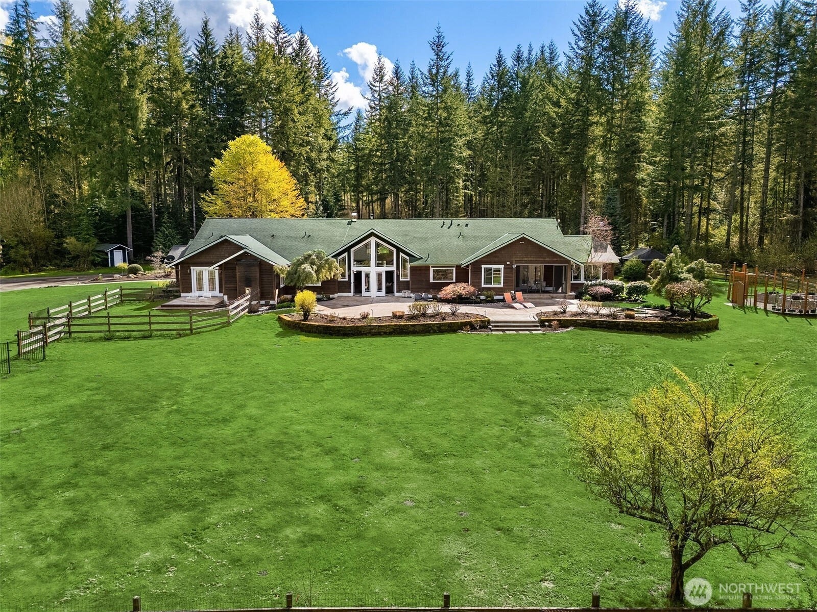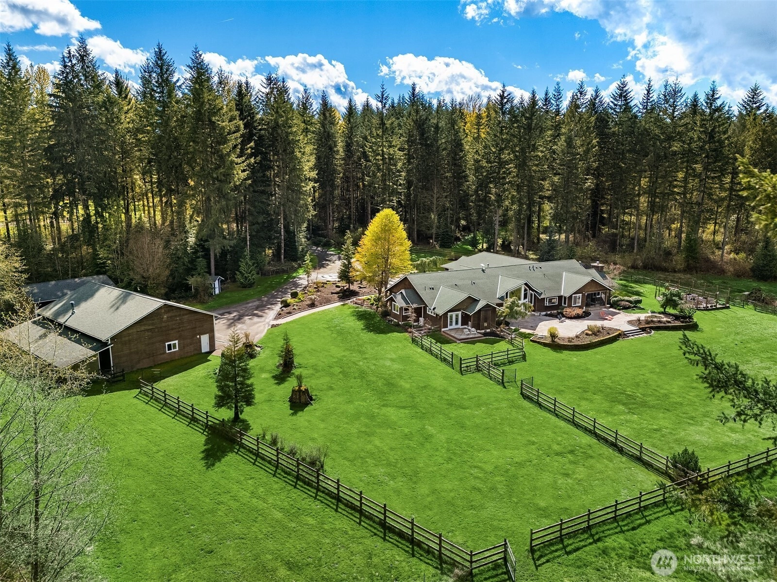 Set on 20 private acres with a gated entry, this custom rambler in the coveted Tolt Highlands offers a rare blend of seclusion and craftsmanship. Approximately 4.33 acres are cleared, level, and fully fenced around the home and shop, creating exceptional usable space for gardens, recreation, or hobby farming. Flat and sun-drenched, the property includes 1.25 miles of trails winding through pasture, fruit trees, and mature woodlands, offering a peaceful connection to the surrounding landscape. Inside, an open floorplan with 9ft+ ceilings anchors the home. The cook’s kitchen pairs slab granite counters and cherry cabinetry with hickory floors and high-end appliances. A vaulted family room flows naturally from the kitchen, centered by a river rock fireplace and bar. The primary suite is its own retreat, complete with a fireplace, walk-in closet, and spa-inspired five-piece bath. Outbuildings match the scale of the land, including a detached 40x60 ft shop with two livestock stalls, heated tack room, and secure covered storage, along with a 24x36 ft high-bay carport suited for RV or equipment. An attached four-car garage, newer roofs on the home, shop, and well house, Starlink high-speed internet, and generator wiring complete a property designed for flexibility and self-reliance. Minutes to Carnation and convenient to Redmond, Duvall, Sammamish, and the greater Eastside, this is a rare Tolt Highlands offering where privacy, functionality, and the NW landscape come together.