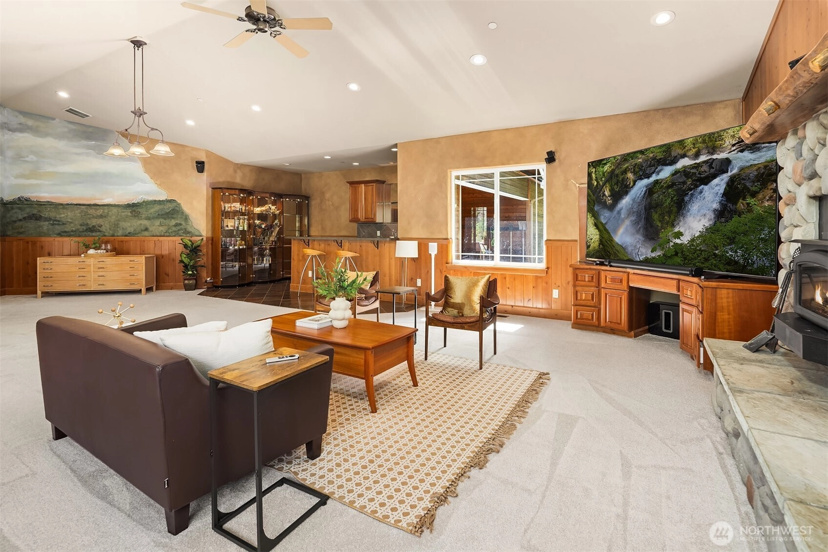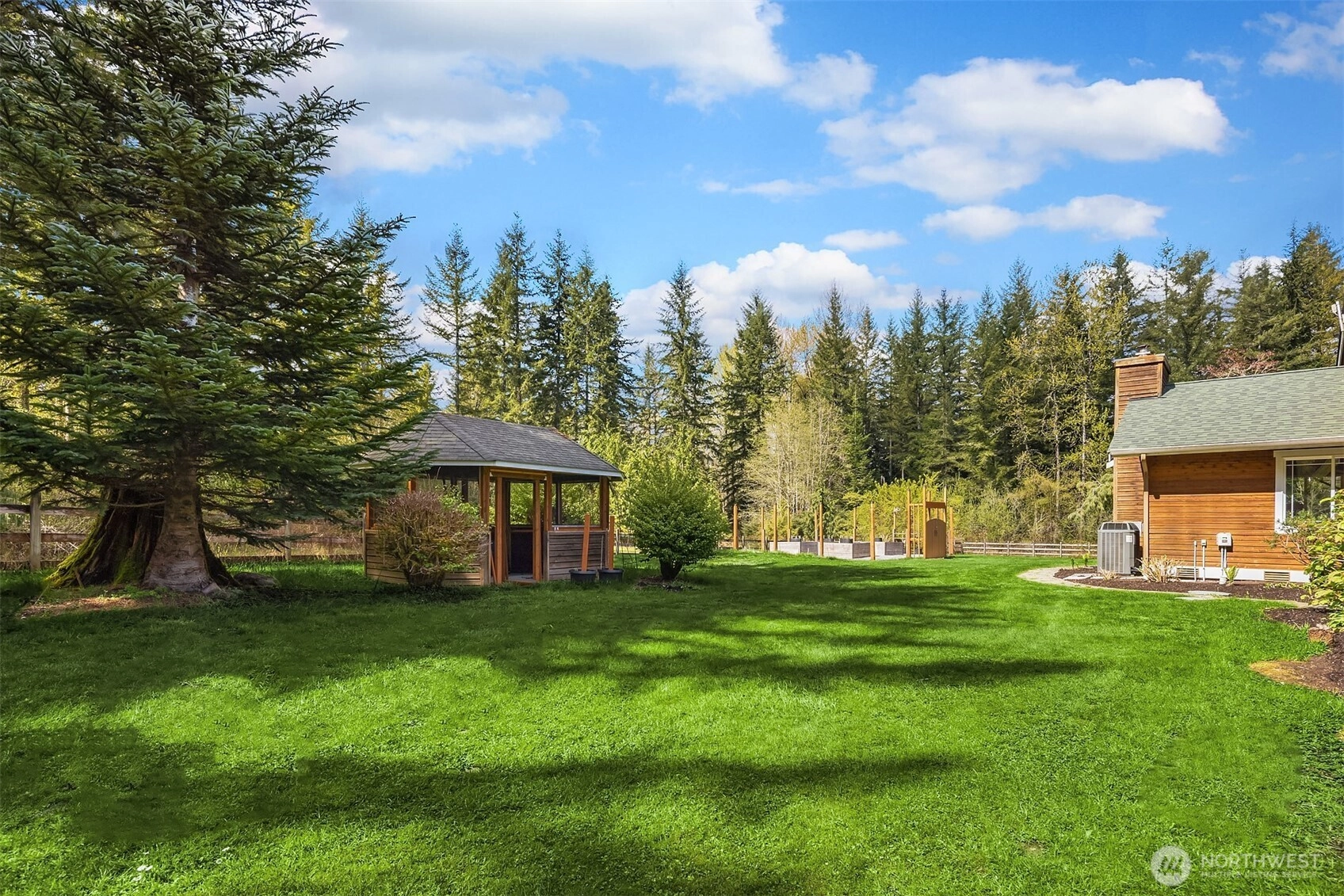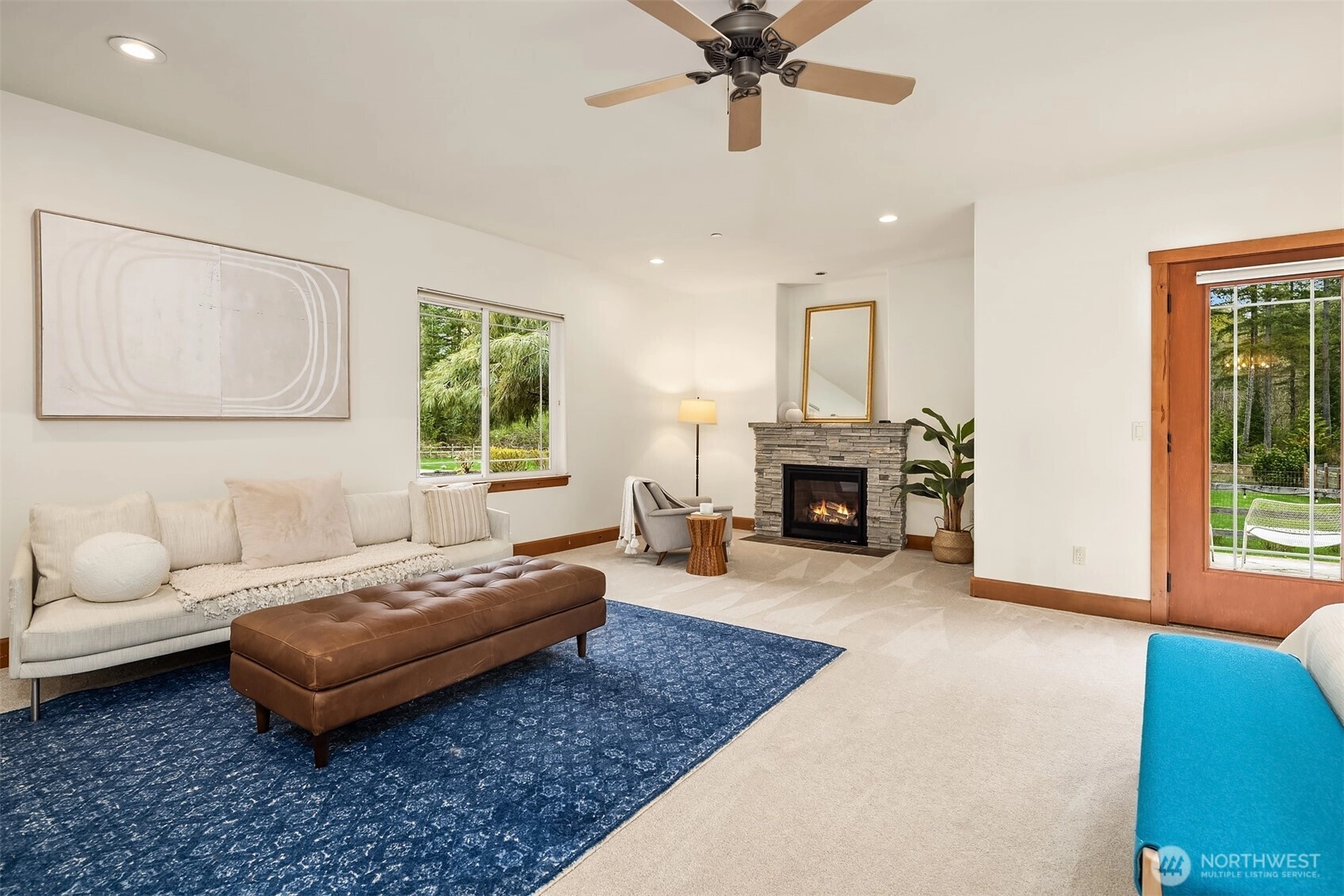 Set on 20 private acres with a gated entry, this custom rambler in the coveted Tolt Highlands offers a rare blend of seclusion and craftsmanship. Approximately 4.33 acres are cleared, level, and fully fenced around the home and shop, creating exceptional usable space for gardens, recreation, or hobby farming. Flat and sun-drenched, the property includes 1.25 miles of trails winding through pasture, fruit trees, and mature woodlands, offering a peaceful connection to the surrounding landscape. Inside, an open floorplan with 9ft+ ceilings anchors the home. The cook’s kitchen pairs slab granite counters and cherry cabinetry with hickory floors and high-end appliances. A vaulted family room flows naturally from the kitchen, centered by a river rock fireplace and bar. The primary suite is its own retreat, complete with a fireplace, walk-in closet, and spa-inspired five-piece bath. Outbuildings match the scale of the land, including a detached 40x60 ft shop with two livestock stalls, heated tack room, and secure covered storage, along with a 24x36 ft high-bay carport suited for RV or equipment. An attached four-car garage, newer roofs on the home, shop, and well house, Starlink high-speed internet, and generator wiring complete a property designed for flexibility and self-reliance. Minutes to Carnation and convenient to Redmond, Duvall, Sammamish, and the greater Eastside, this is a rare Tolt Highlands offering where privacy, functionality, and the NW landscape come together.