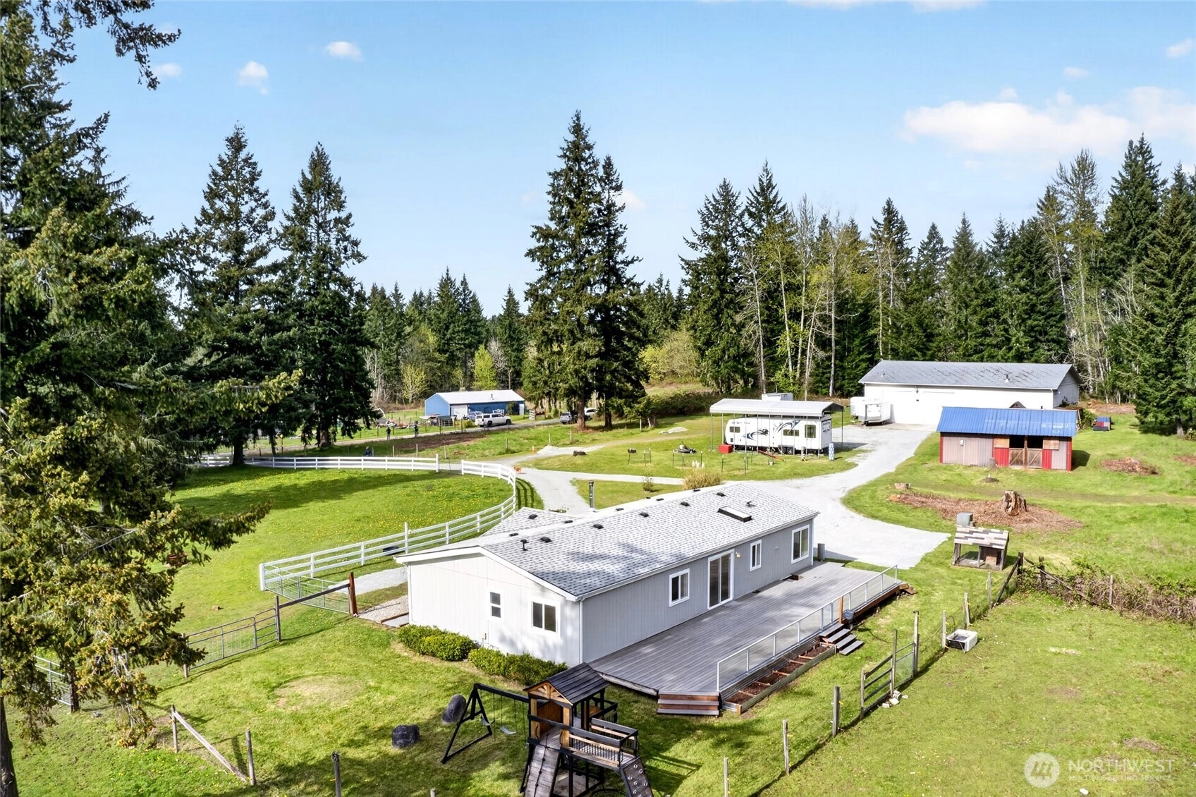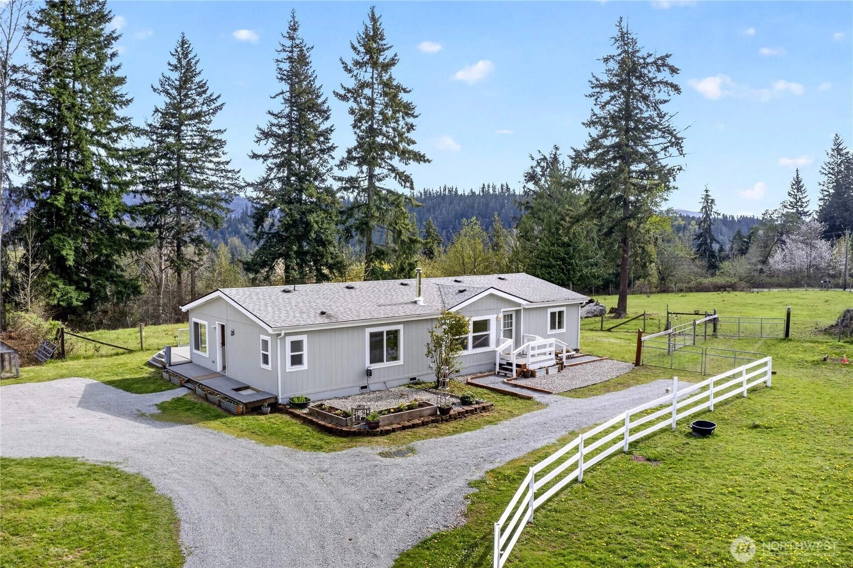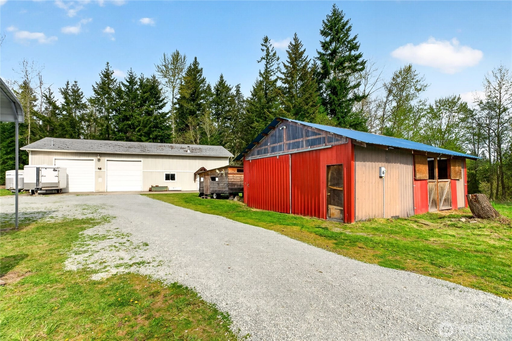Marketing Remarks: BEAUTIFUL HOME, ACREAGE + DREAM SHOP!! This three-bedroom two bath home has new carpet throughout, recently painted inside and out, wood stove, large kitchen, office, large primary suite. Has a heated 40x70 shop (2800 sq. ft) wired for 220 & plumbed for air has 1/2 bath; Has a two-stall barn. Pasture is fenced and cross fenced for horses. Covered RV parking with/RV dump. Large private back deck (Trex) to relax on. Garden space. This is a must see!!