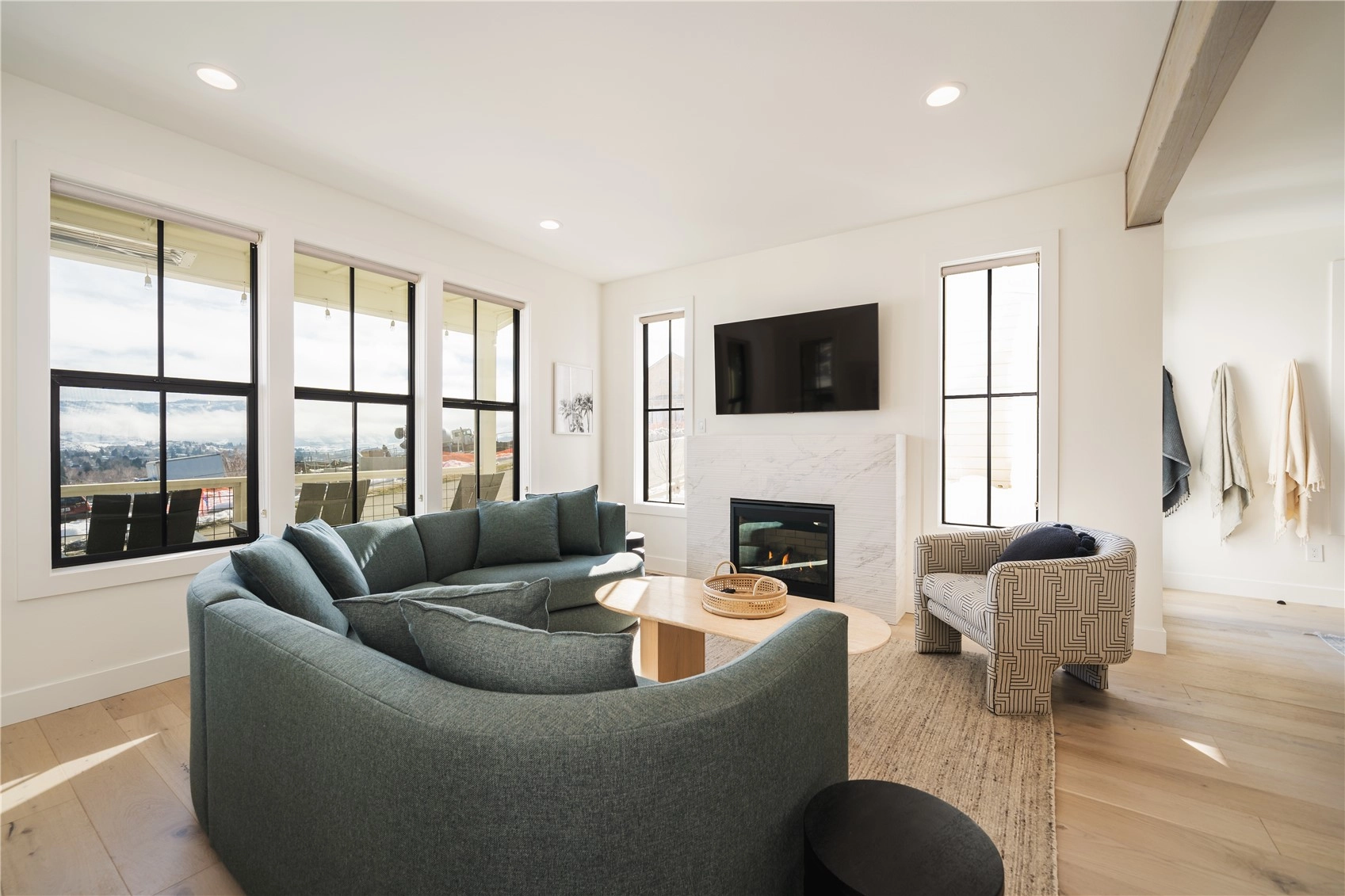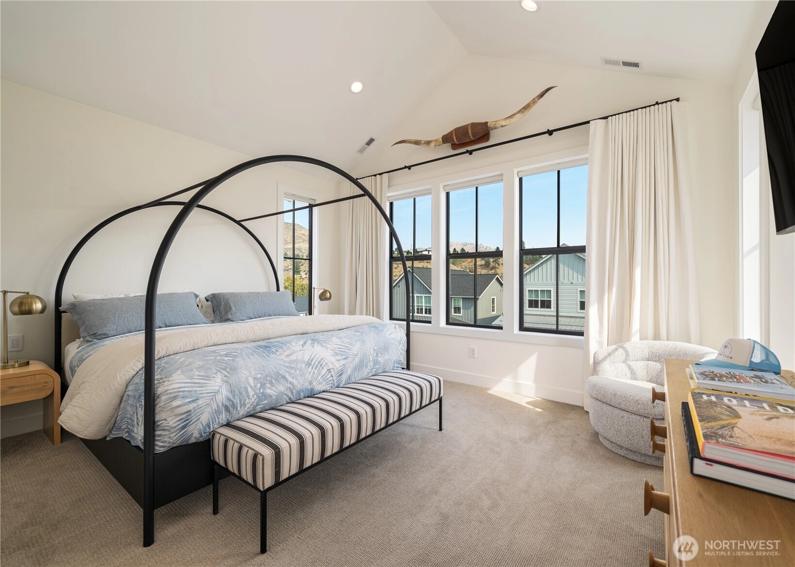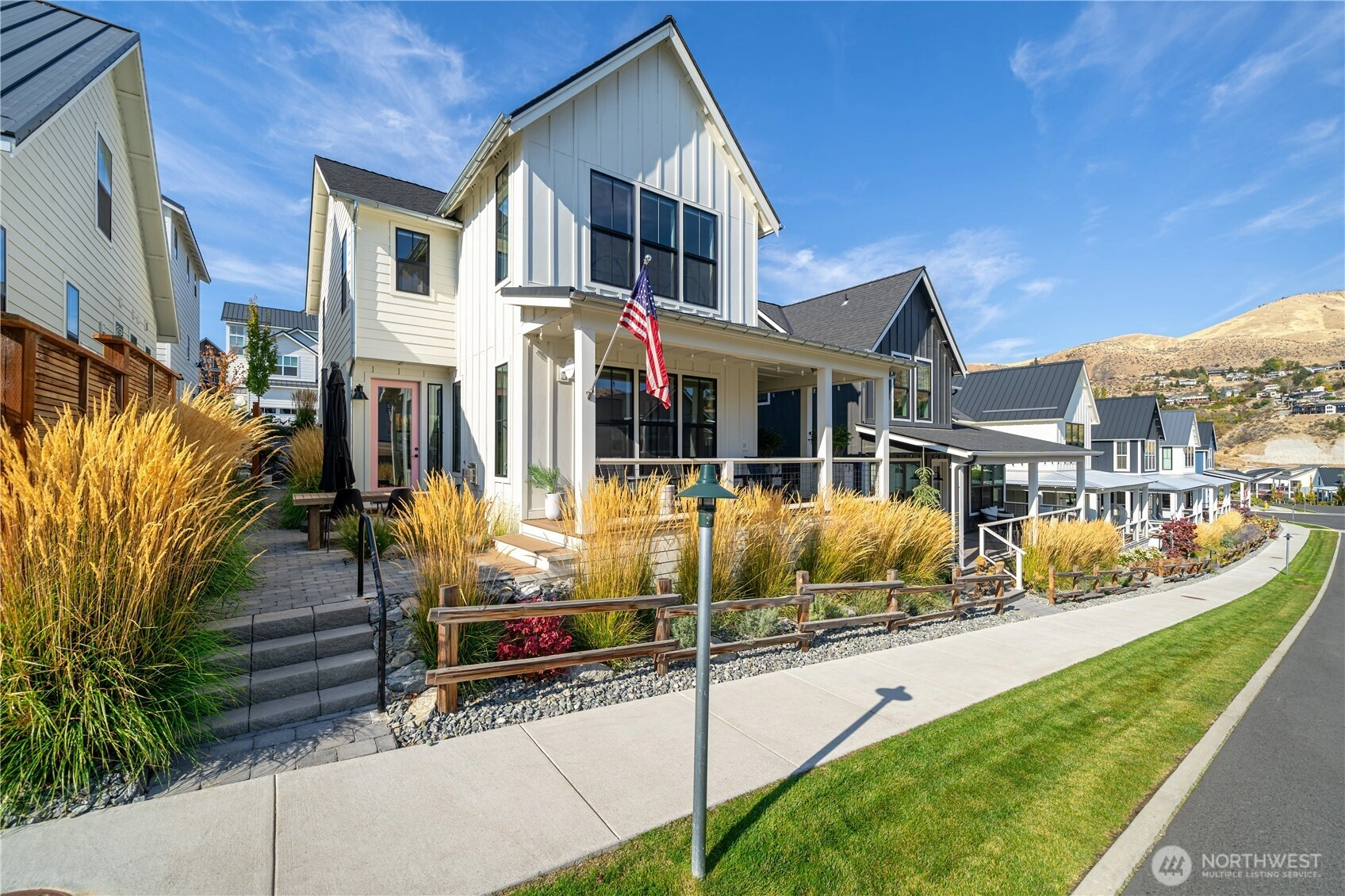 THE PALM CLUB: Step into resort-style living with this stunning modern retreat blending sleek design & sophistication in Chelan’s premier waterfront community, The Lookout. Just steps from Vin Du Lac winery & downtown Chelan. This furnished designer’s own home features stylish interiors/soaring windows/chic finishes + an open flow that’s perfect for hosting. Gather in the stylish living area with a statement fireplace or mix cocktails at the custom bar. Outside; the fire-pit lounge, bar counter top, while mountain views evoke the ultimate Palm Springs vibe. Every detail inside & out is curated for relaxation. Thoughtful landscaping, a welcoming front porch, & a private patio add to the home’s charm. Live beautifully in this turnkey retreat that balances comfort, style, & a true sense of home. Creating meals & mixing your favorite drinks is a breeze with with Cafe’ brand premium, modern appliances + a gas range for precision cooking. Dedicated beverage fridge/ wine cooler to keep every drink perfectly chilled! Outdoors: an 8-person hot tub with LED lights, a fire pit with comfortable seating, outdoor Sonos speakers, a serving pass through bar & more. Outdoor dining area with shade umbrella in the front, a charming bistro set for morning coffee or evening wine, heated front porch for cool evenings with outdoor Sonos speakers, & a stylish hanging porch swing on the back deck. 3 dedicated driveway parking spaces. The Palm Club has many booked rentals, is turn key & ready to go.