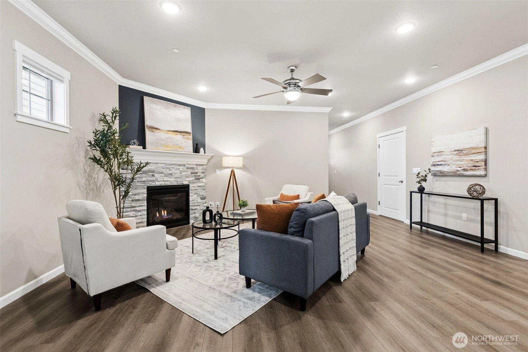 Looking for a low maintenance home & lifestyle? Come find it at Mill Pond, where comfort, convenience, and easy living come together! The popular Cherry model offers a thoughtfully designed 1,752 SF rambler with true ONE-LEVEL living—perfect for a carefree lifestyle. This very energy-efficient, meticulously maintained one-owner home shines with pride of ownership throughout. Step inside to discover an open-concept layout featuring high ceilings and lots of natural light. The spacious kitchen features stainless steel appliances, an oversized island ideal for gathering, and flows seamlessly into the inviting great room, complete with custom crown molding and a cozy gas fireplace! The primary suite is very spacious & offers a walk-in closet and private ensuite bath. Two additional generously sized bedrooms, a second full bath, and a large laundry room provide flexibility and function for everyday living. Additional highlights include forced-air natural gas heating & central A/C, a fully finished two-car garage, and a fenced, private backyard with a covered patio . . . for year-round enjoyment. Enjoy the benefits of a master-planned community with sidewalks, parks, and green spaces, plus direct access to the Chehalis Western Trail for miles of walking and biking. Conveniently located near I-5, Providence Hospital, and local amenities, this home offers low-maintenance living and an active lifestyle. If you’ve been searching for a clean, modern rambler in Olympia—this is it!