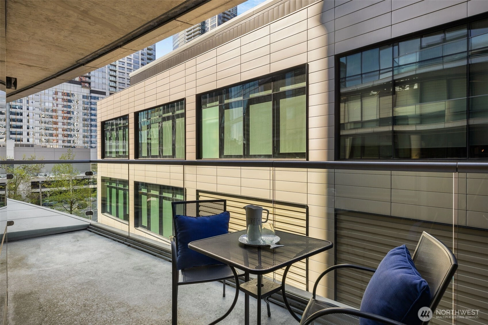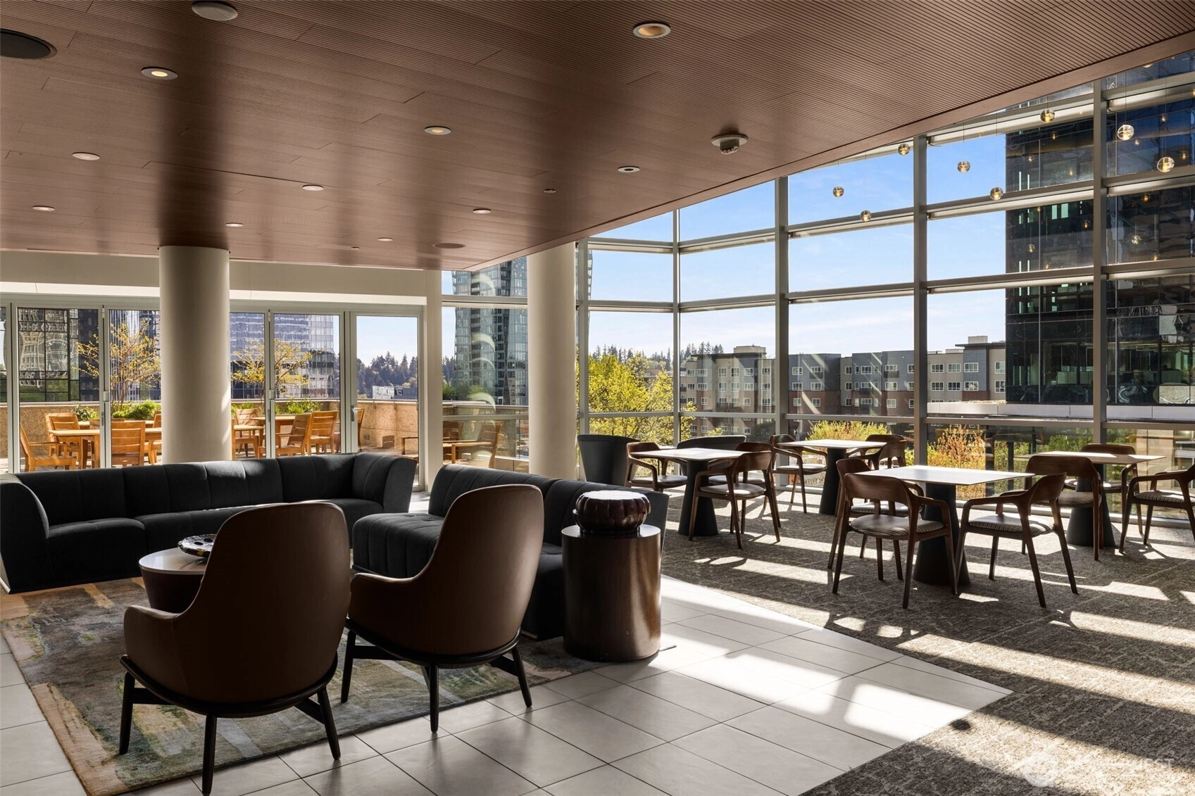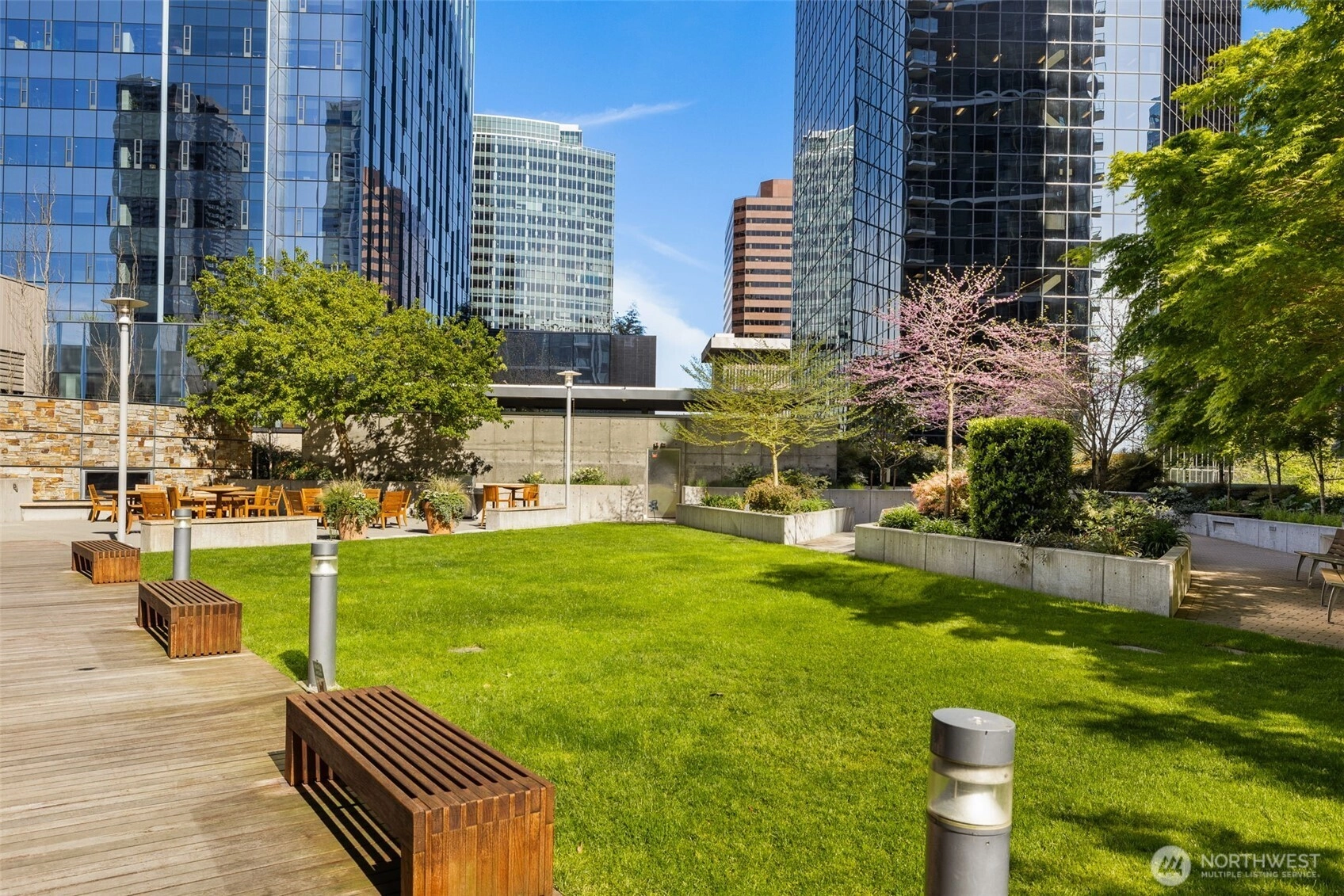 Experience refined city living in this 2-bedroom 1500+ sf residence at Bellevue Towers. Featuring double suites and a spacious great room with 9 foot floor to ceiling windows throughout. Hardwoods in the living area lead you to the king-sized primary bedroom with a double vanity, spacious shower and large walk-in closet plus 2nd closet. The open den offers flexible space for a home office or reading nook. The chef’s kitchen boasts Subzero and Viking appliances, quartz countertops, and seamless flow into the main living area flowing to private balcony complete with gas for grilling. Includes one parking space. Enjoy top-tier, newly upgraded amenities including a fitness center, spa with sauna and steam room, theater, dining room with kitchen for private parties, game lounge, and a half-acre urban garden with pet retreat—all in the heart of downtown Bellevue steps from world class dining, designer shopping and downtown park. Central heating/AC, secure package delivery, guest suites for out-of-town visitors, and 24-hour concierge complete the comfort.